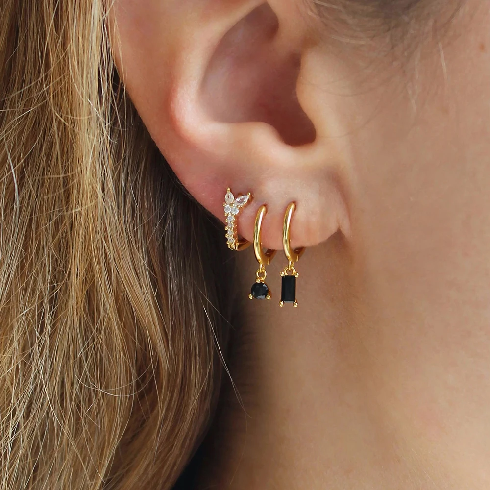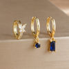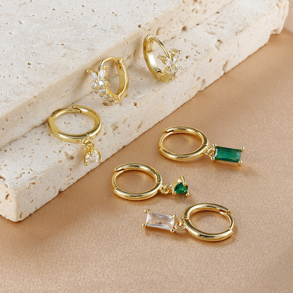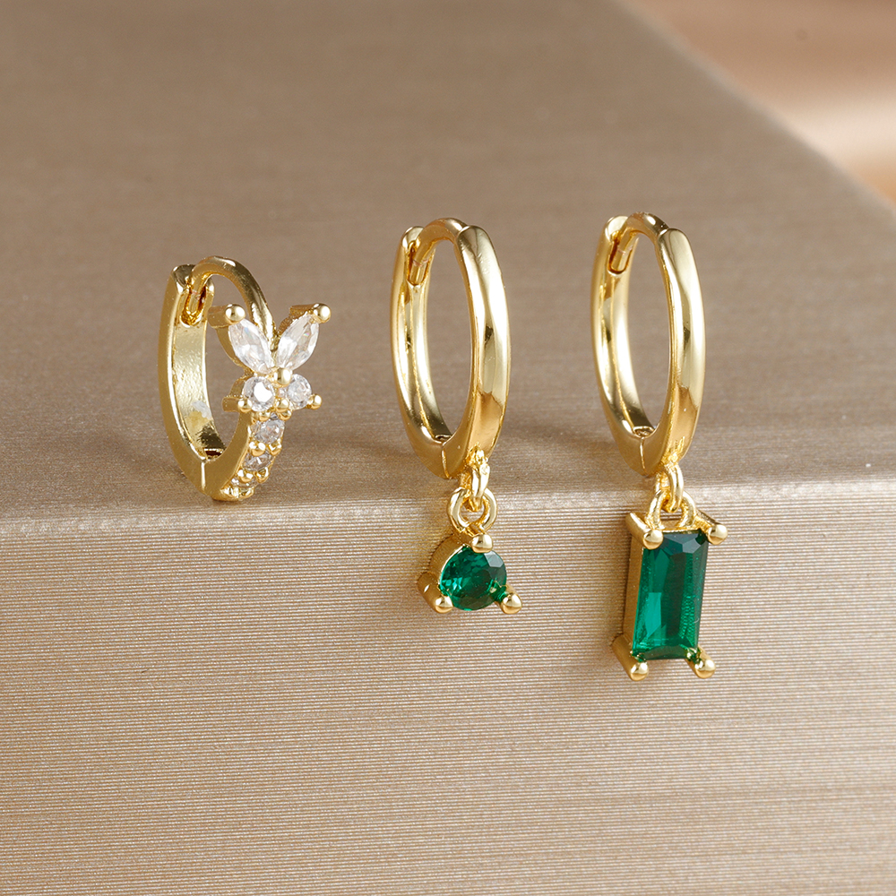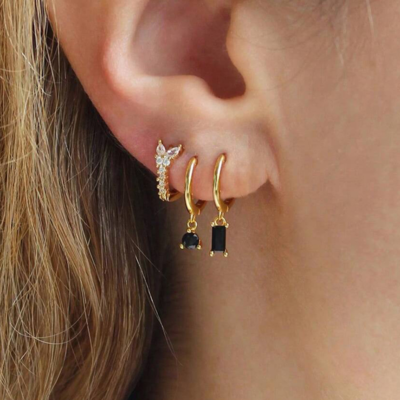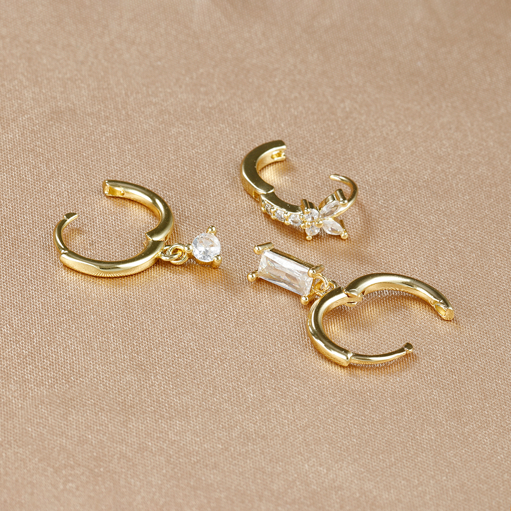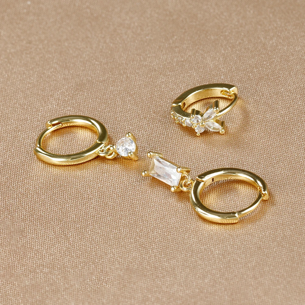 3PCS Luxury Design Zircon Butterfly Hoop Earrings Set for Women Tiny 18K Gold Plated Square Pendant Earring Piercing Jewelry