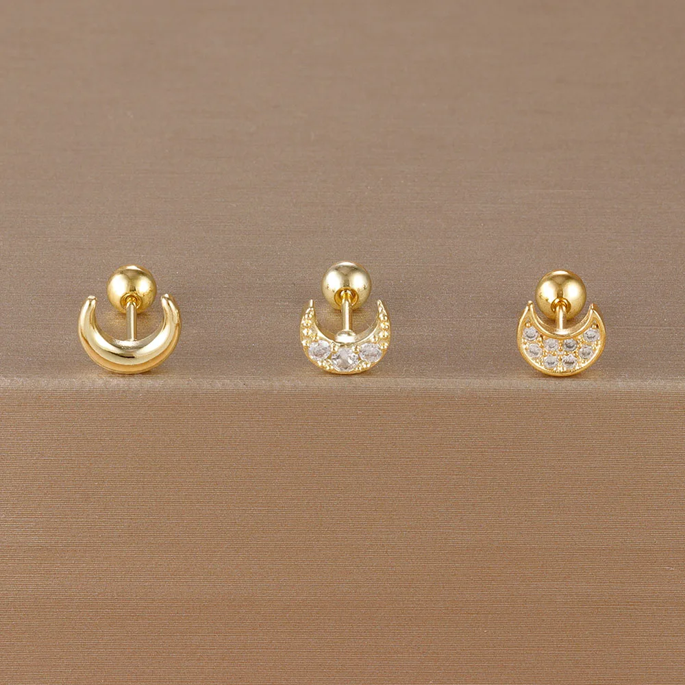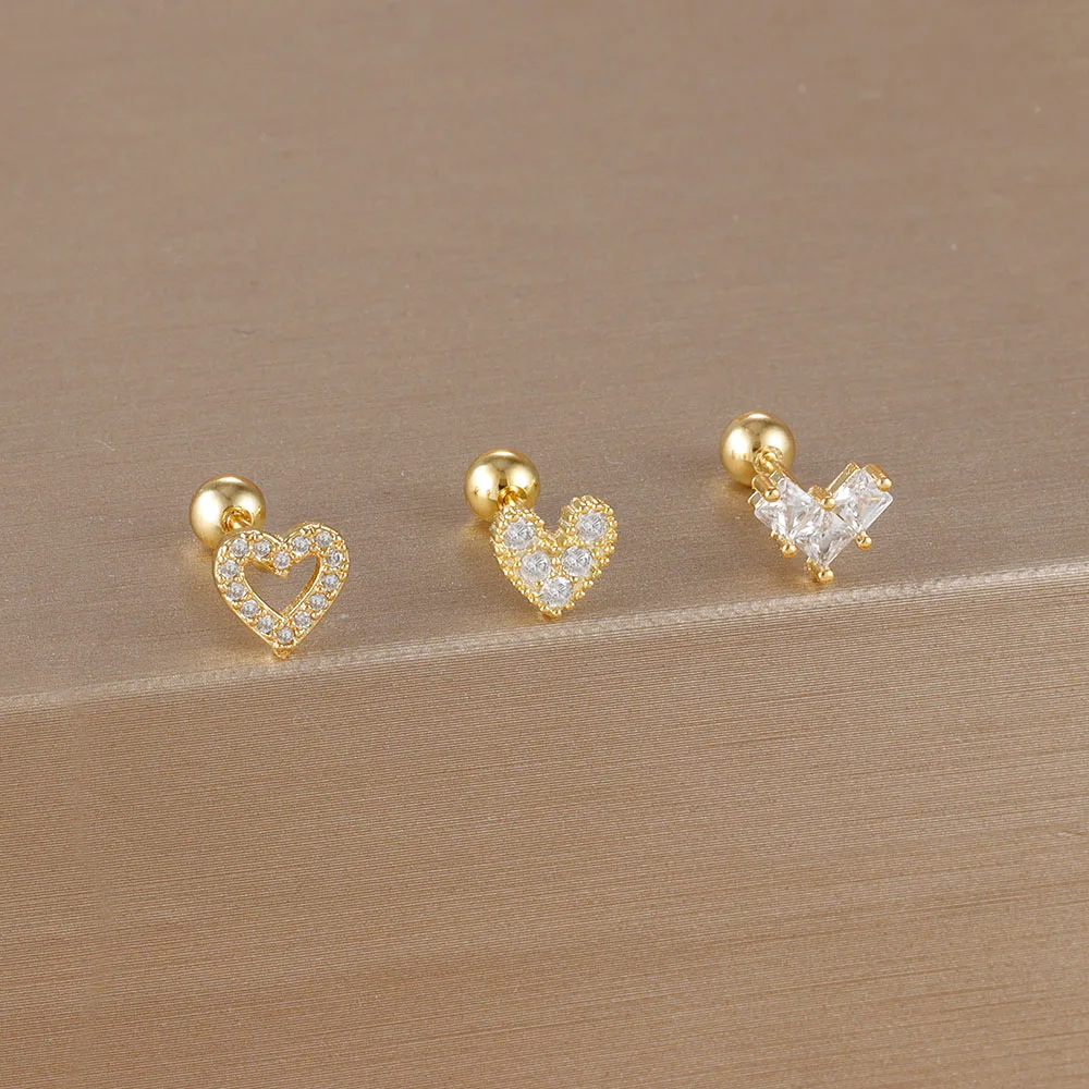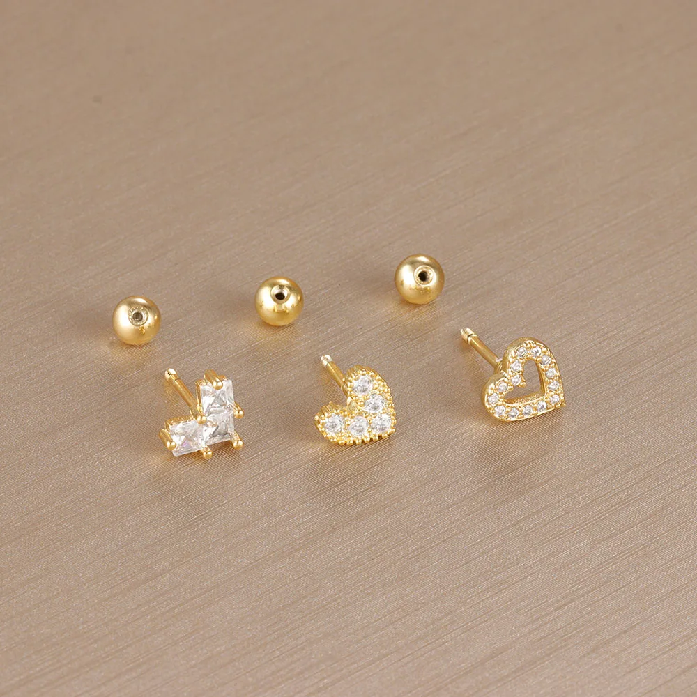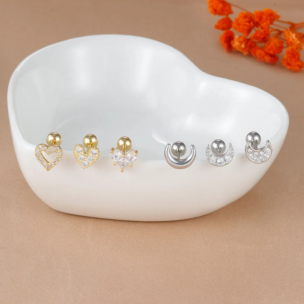3PCS Mini Star Moon Crown Stainless Steel Stud Earrings Set for Women Tiny Zircons Heart Earring Cartilage Piercing Jewelry