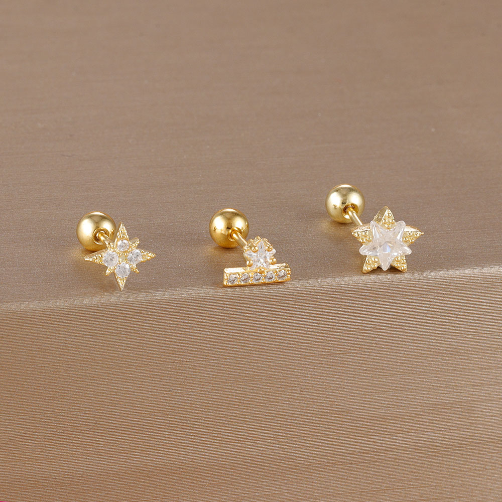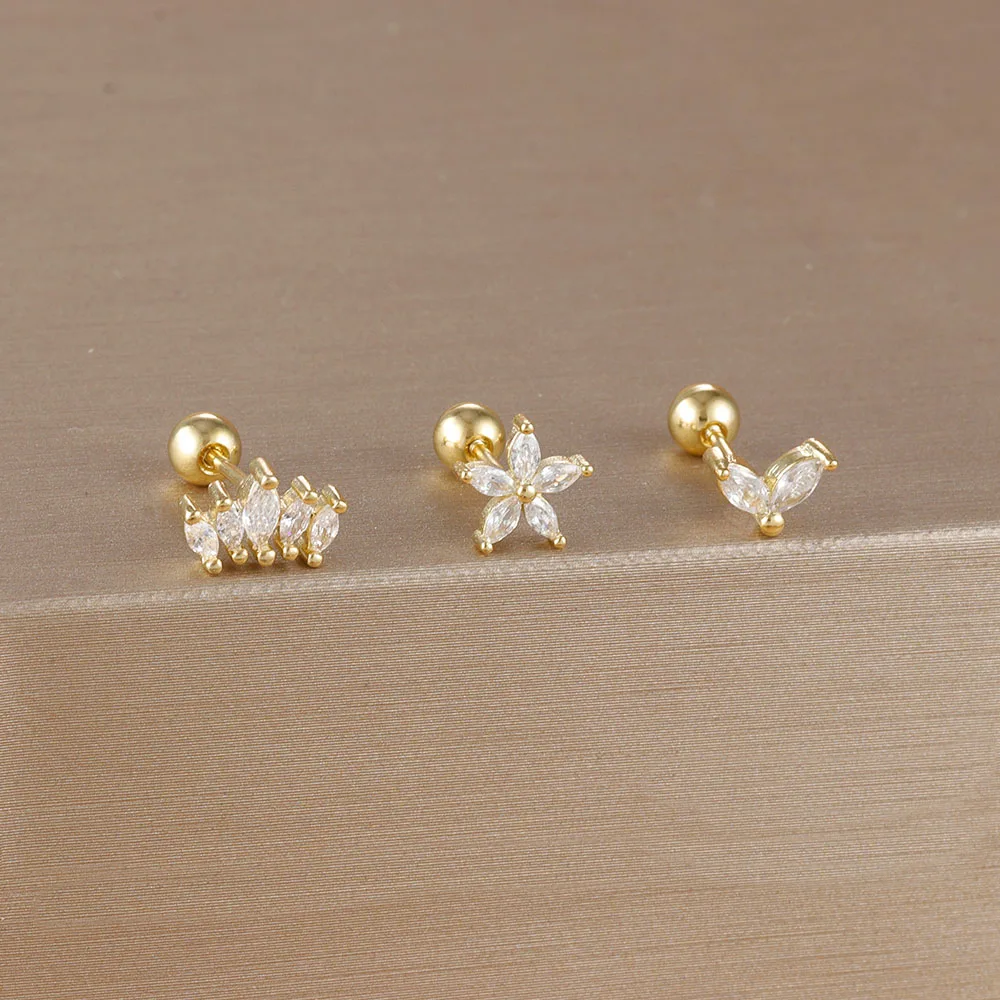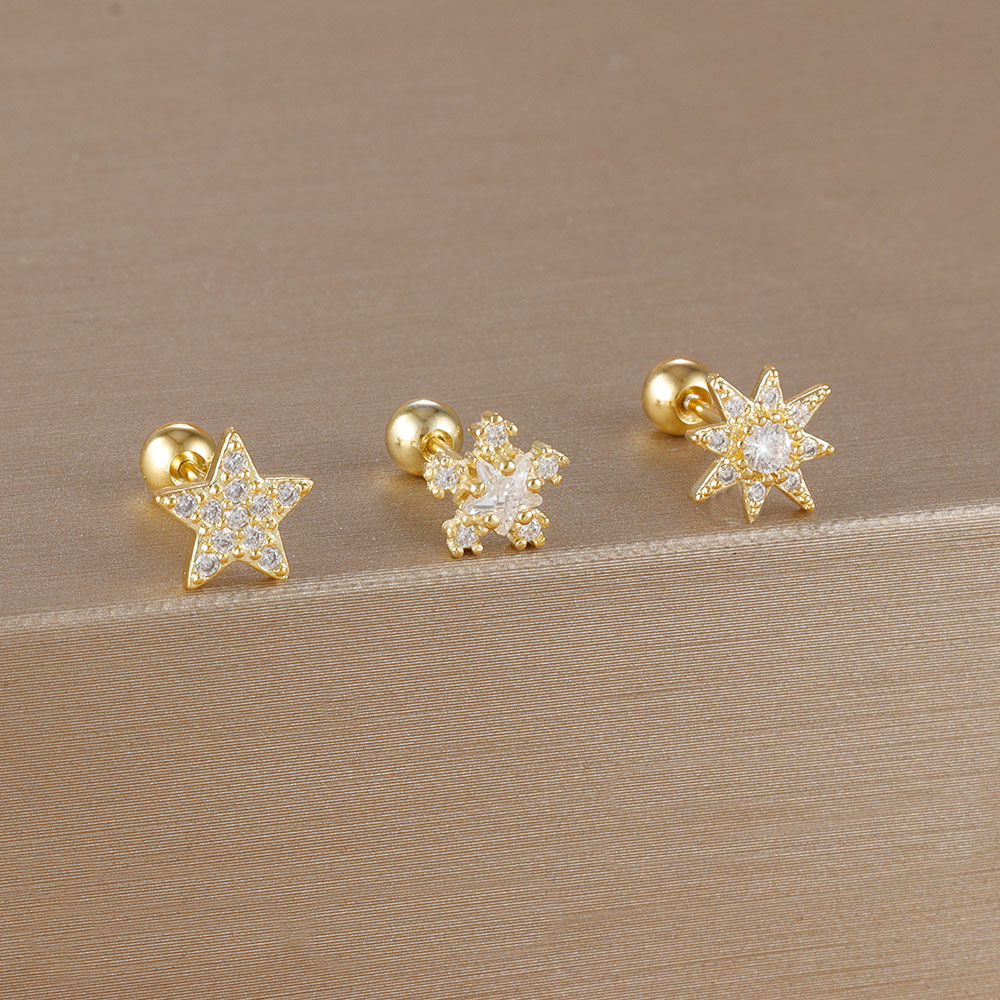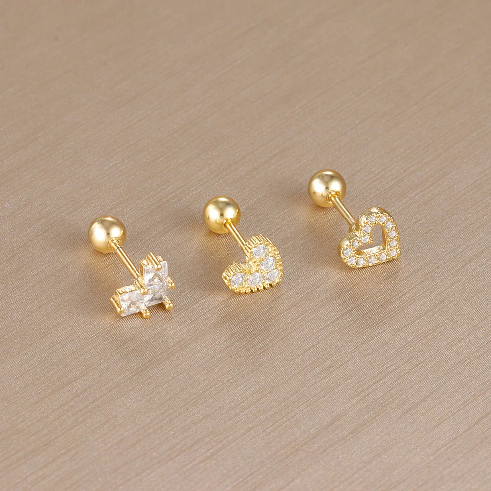 3PCS Mini Star Moon Crown Stainless Steel Stud Earrings Set for Women Tiny Zircons Heart Earring Cartilage Piercing Jewelry