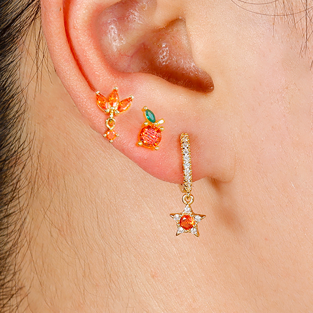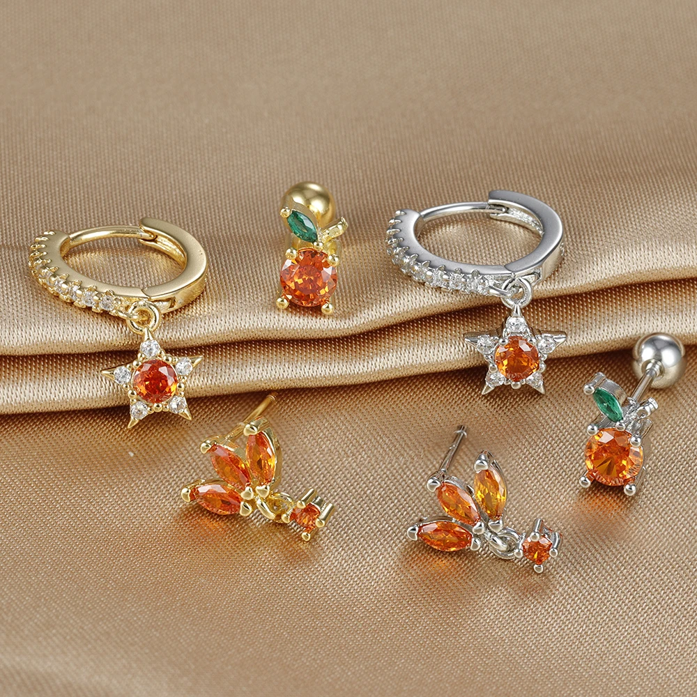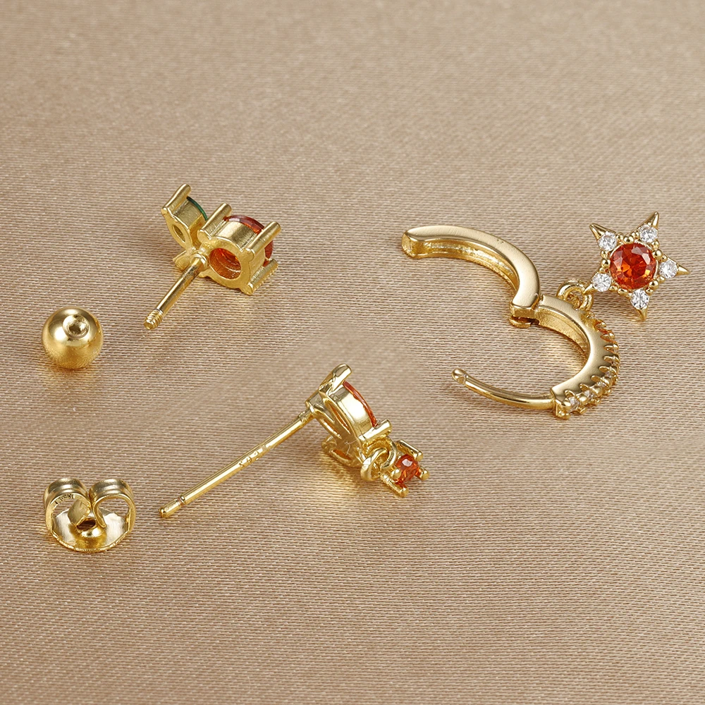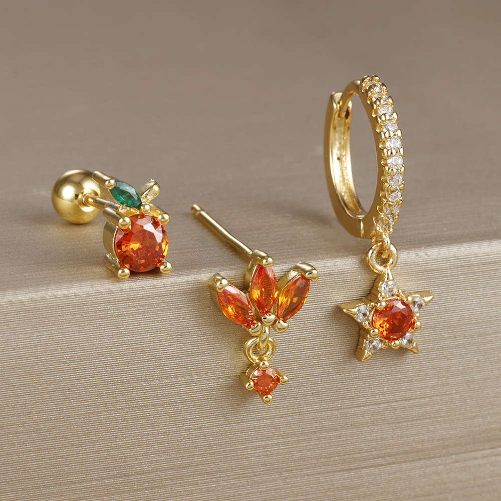 3pcs New Arrival Stainless Steel Star Zircon Earrings Set For Women Orange Ear Studs Helix Cartilage Piercing Fashion Jewelry