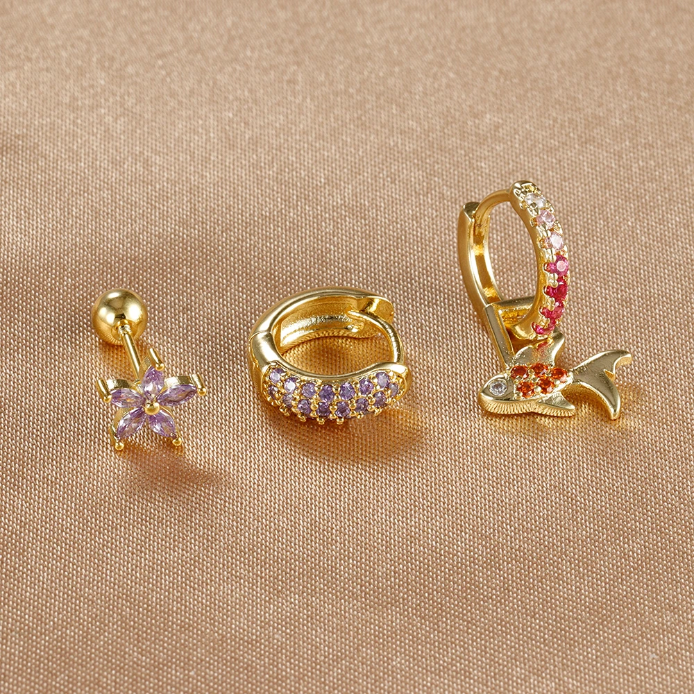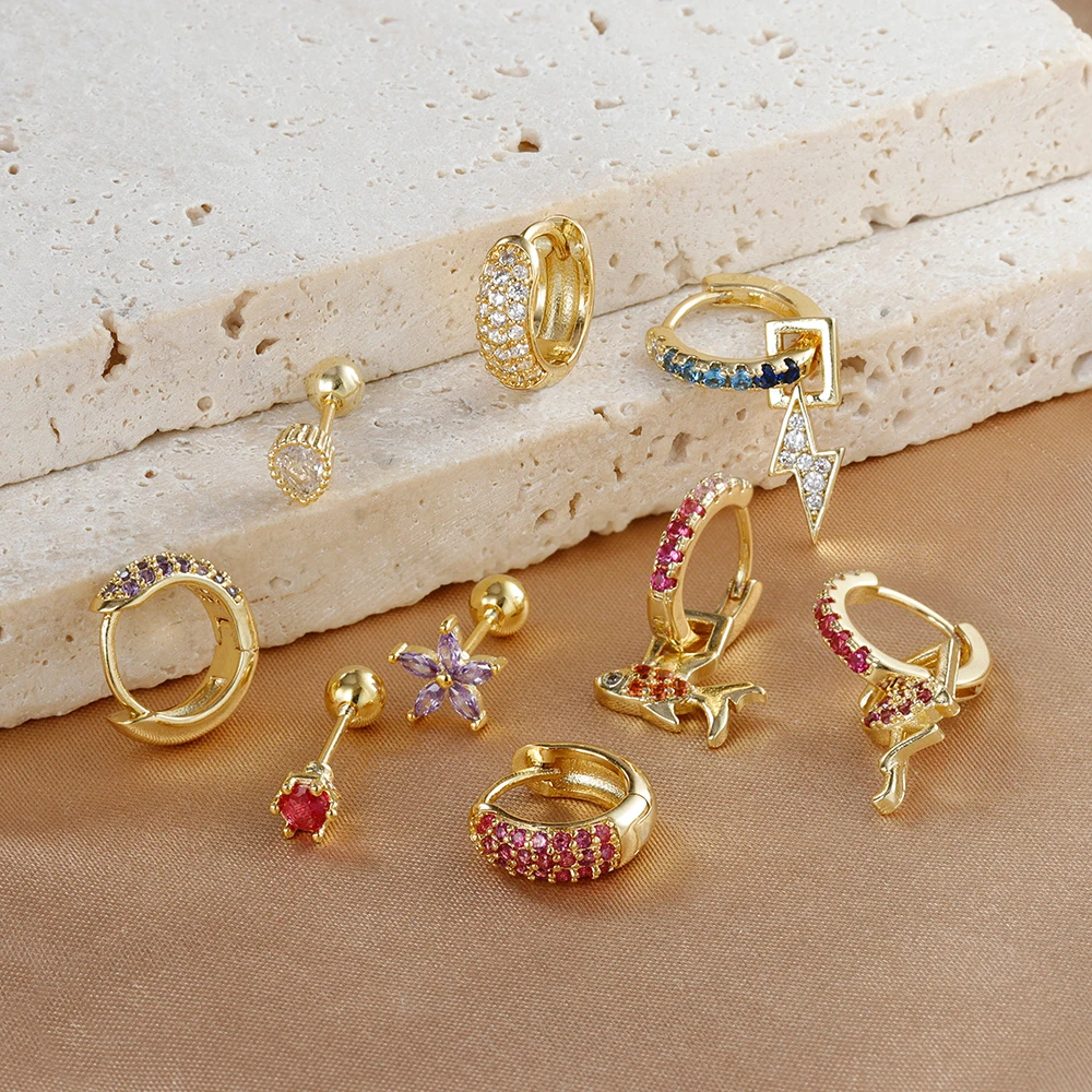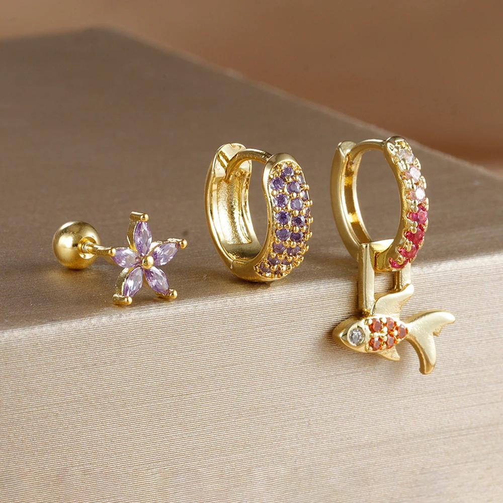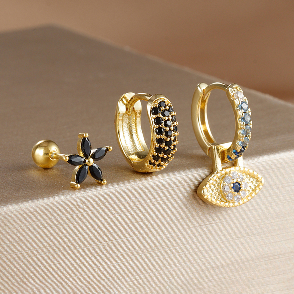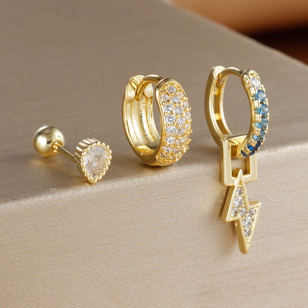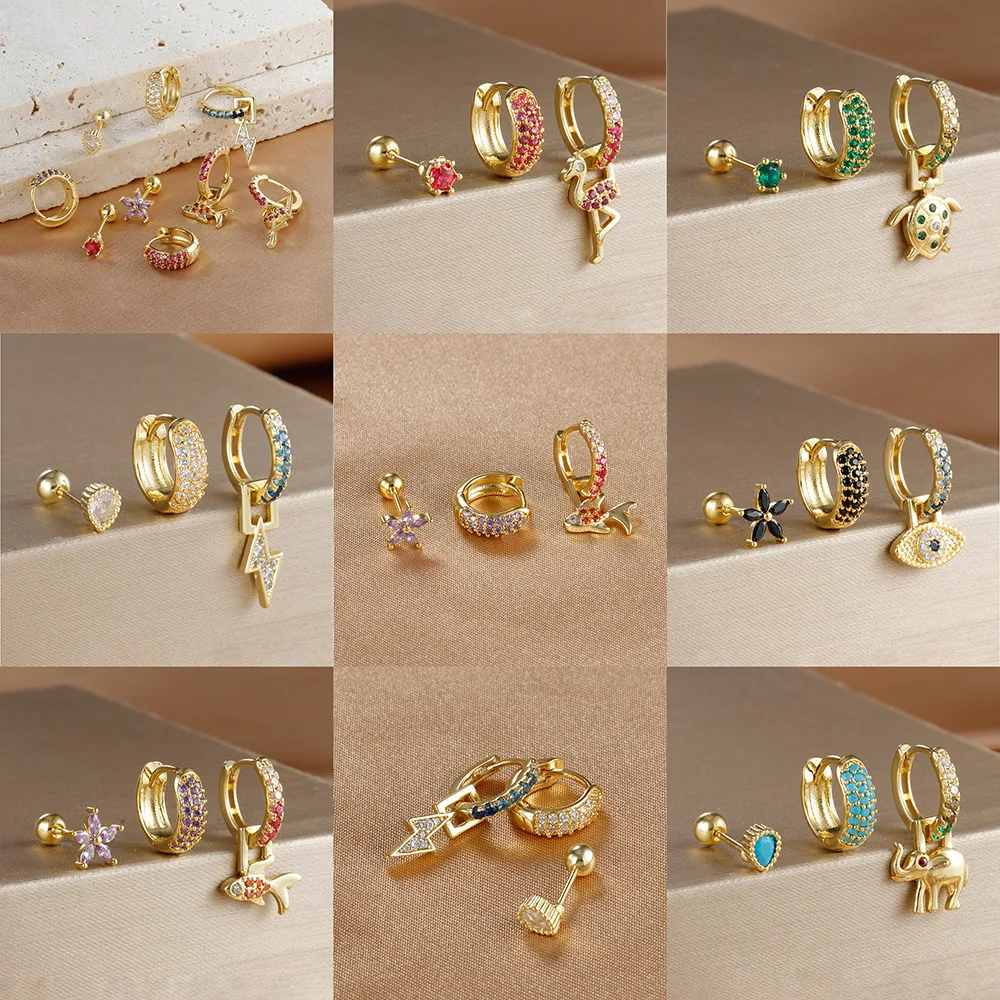 3PCS Round Circle Hoop Earrings Set for Women Lightning Bird Eyes Pendant Cartilage Piercing Earring Jewelry pendientes mujer