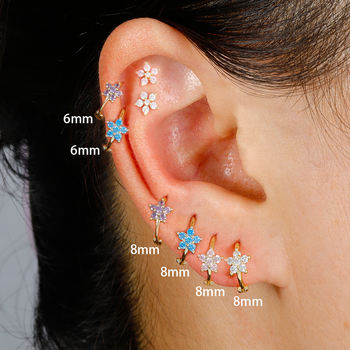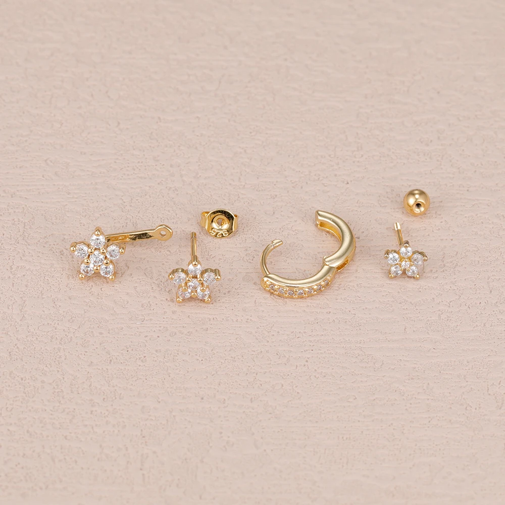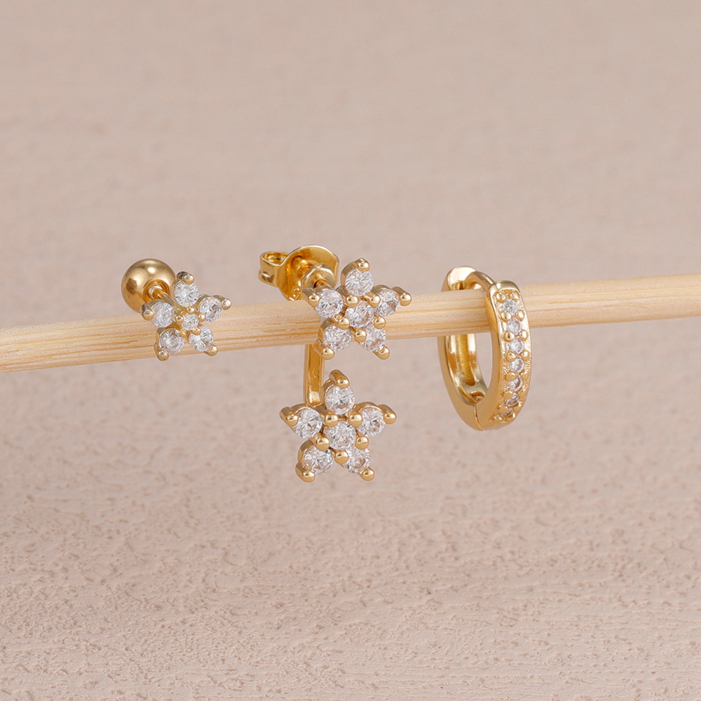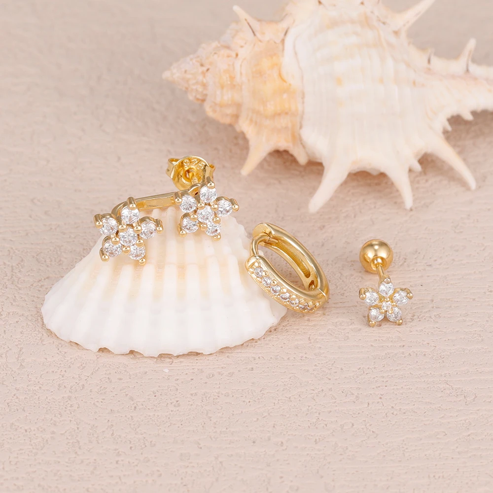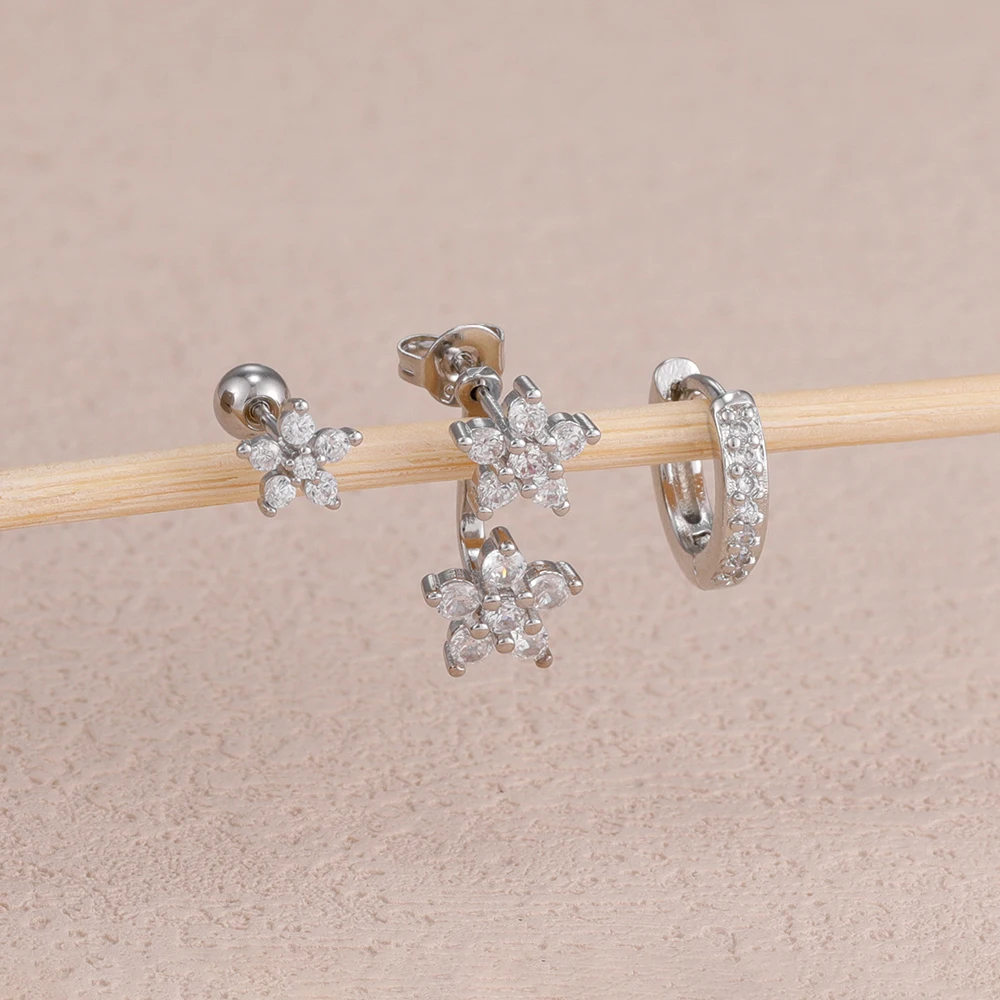 3PCS/Set Fashion Butterfly Zircon Earrings Stainless Steel 14K Gold-Plated Flower Stud Helix Cartilage Earring Piercing Jewelry