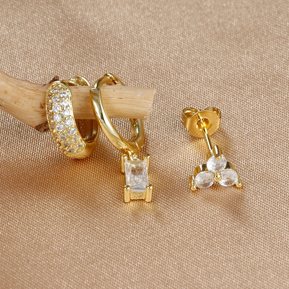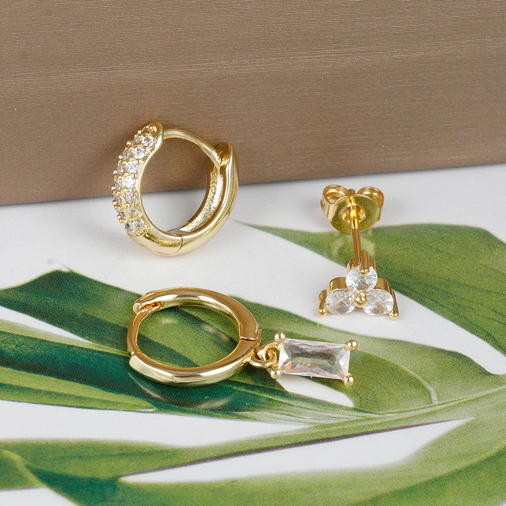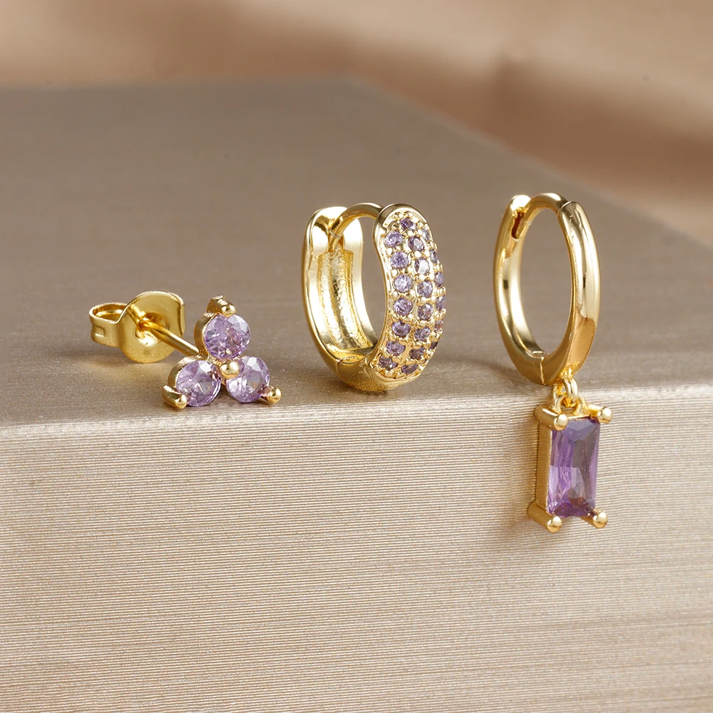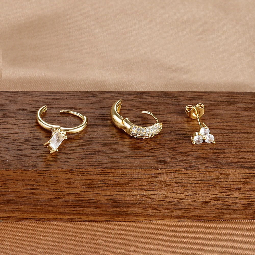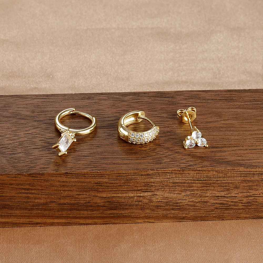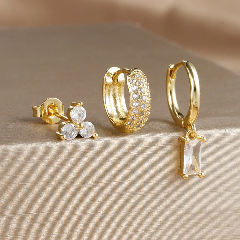 3pcs/set Fashion CZ Zircon Round Huggie Hoop Earrings for Women Geometric Ear Buckle Hoops Gold Plated Stainless Steel Jewelry