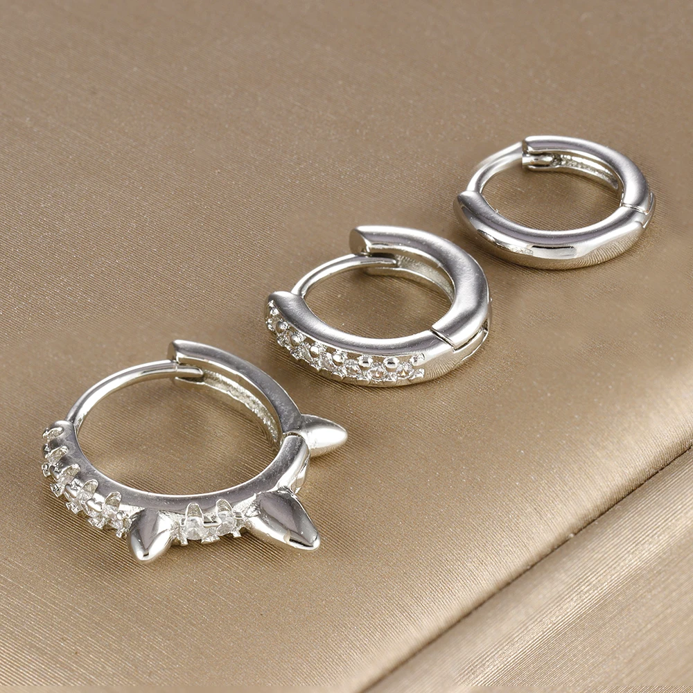 3PCS/Set Simple Stainless Steel Punk Rivet Earring For Women Fashion Cartilage Piercing Earring Minimalism Jewelry Party