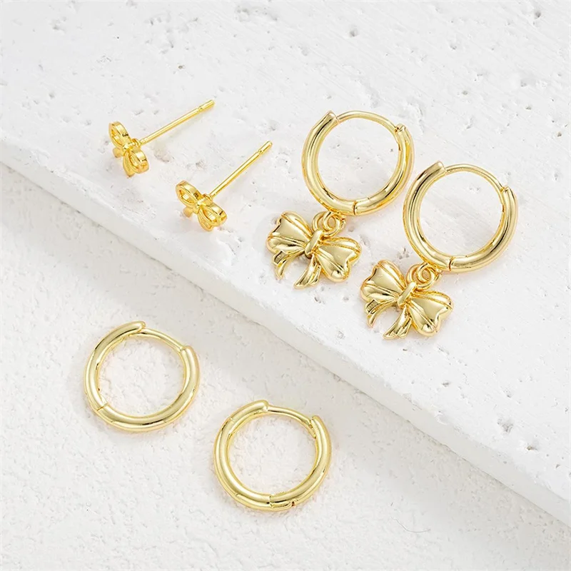 3pcs/set Stainless Steel Bow Earrings Women Exquisite Bow Pendant Earrings Party Birthday Jewelry Women Gift