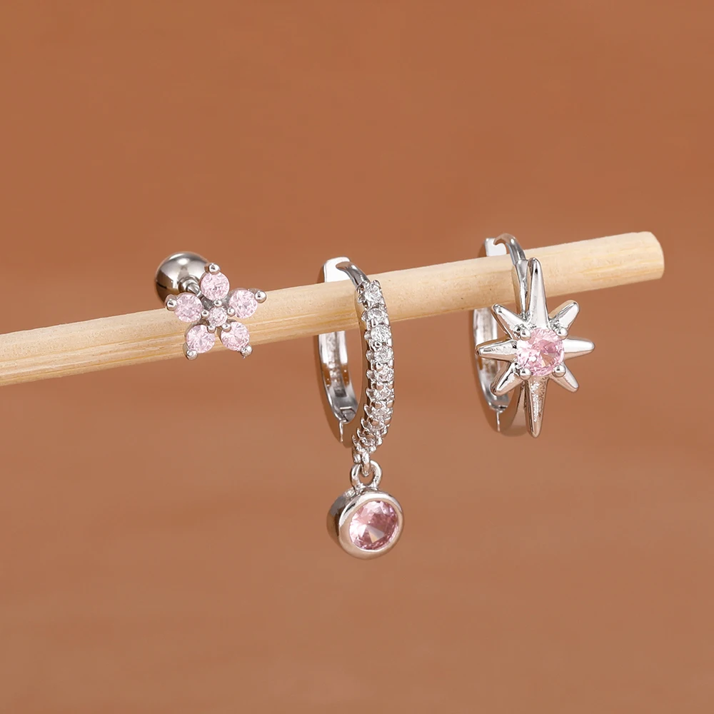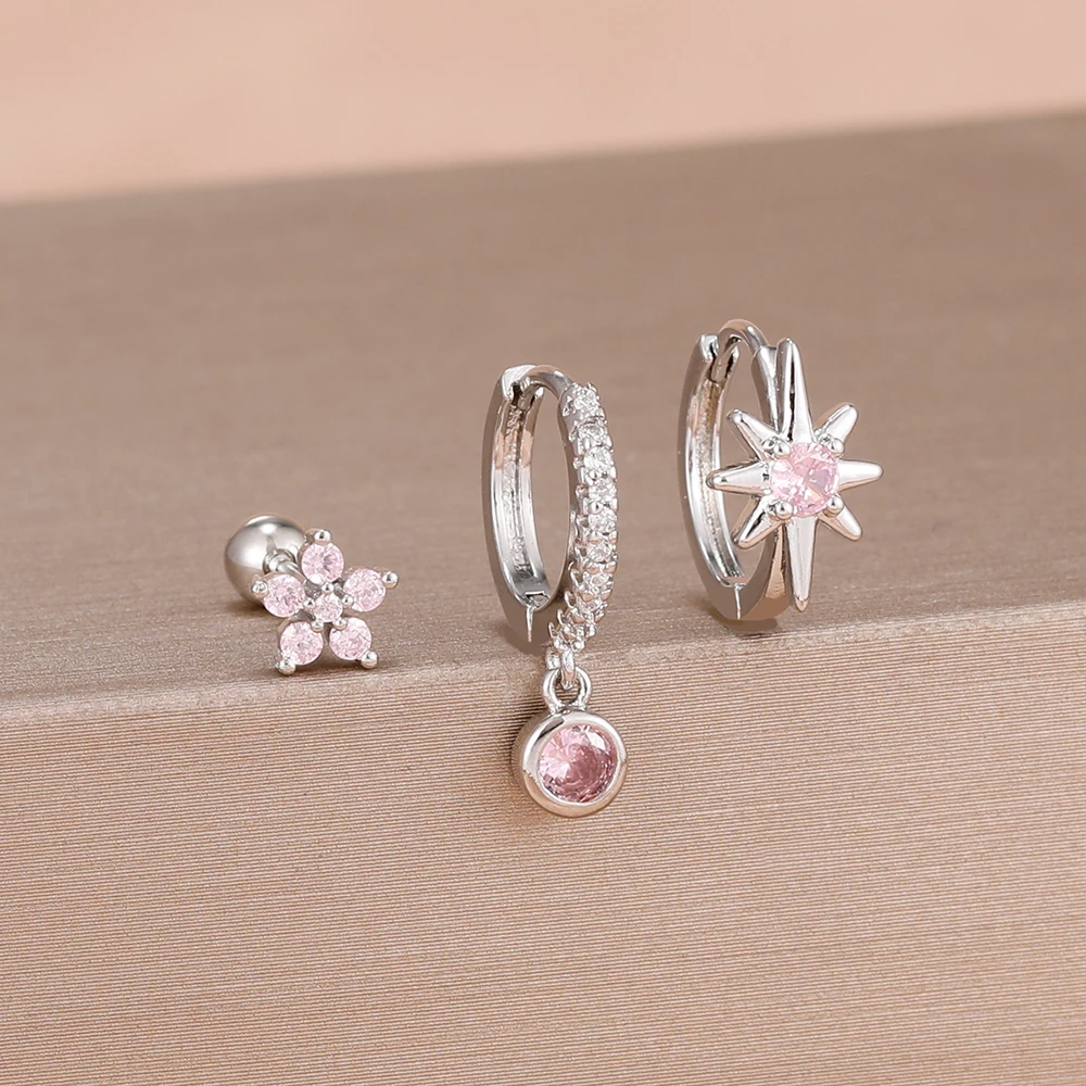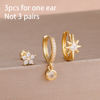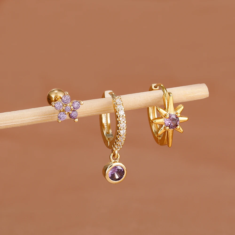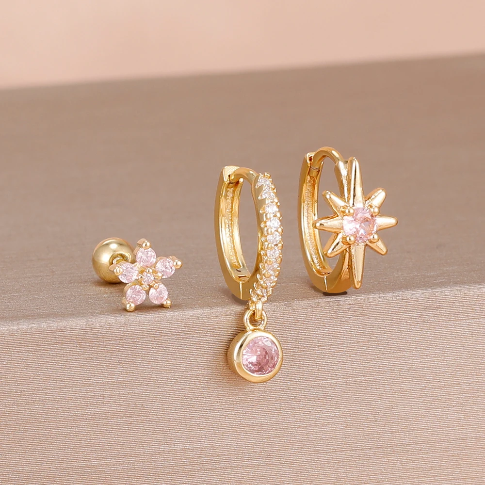 3PCS Shiny Zircon Star Stainless Steel Hoop Earrings Fashion Simple Geometric Hypoallergenic Women’s Earrings Luxury Jewelry