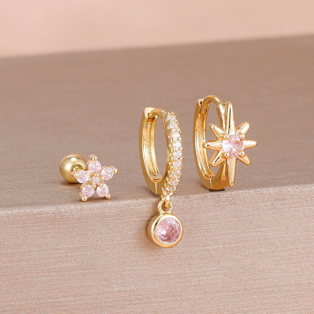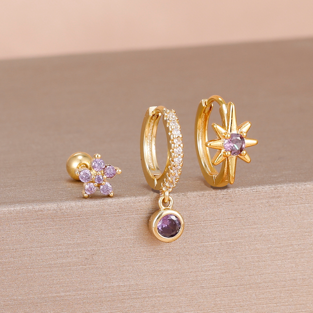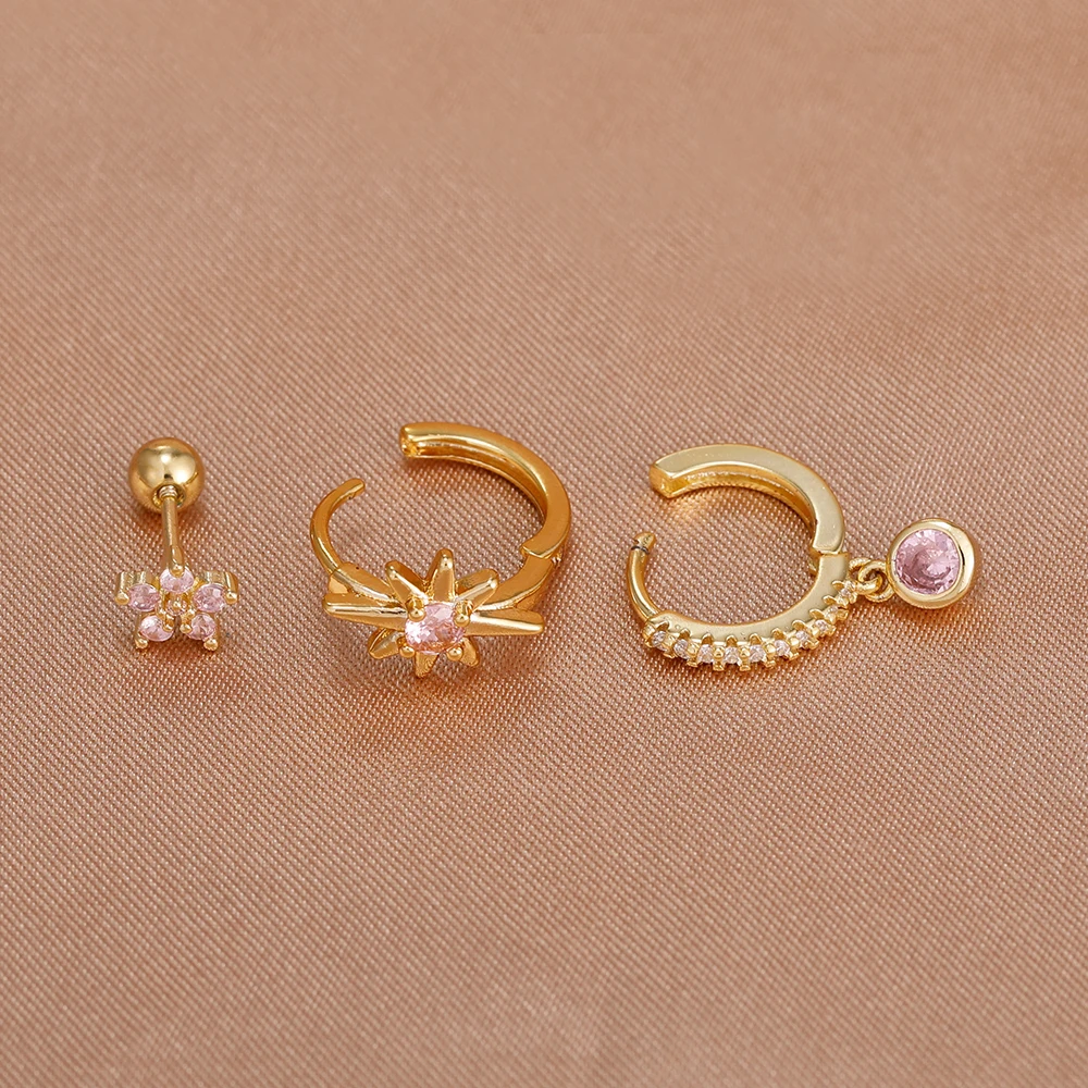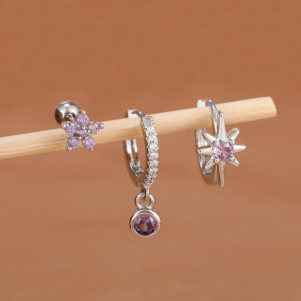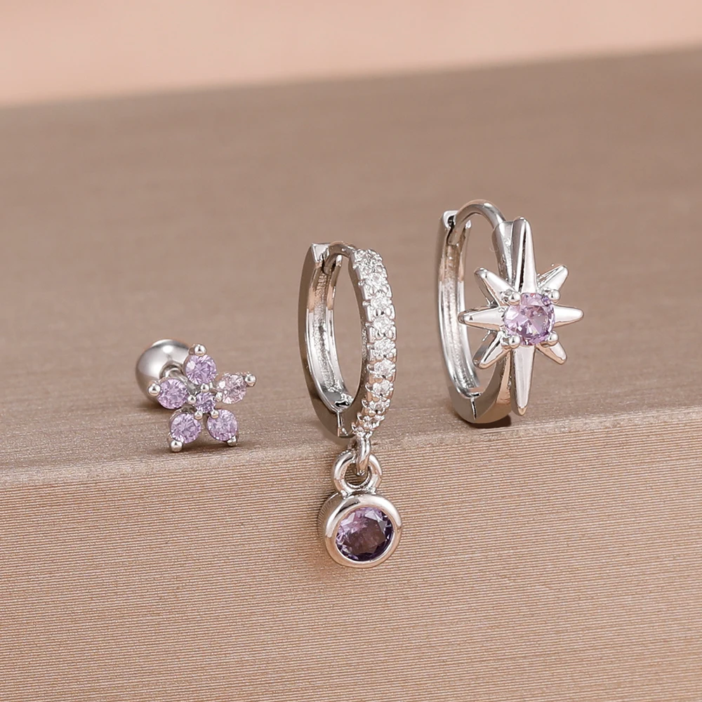 3PCS Shiny Zircon Star Stainless Steel Hoop Earrings Fashion Simple Geometric Hypoallergenic Women’s Earrings Luxury Jewelry