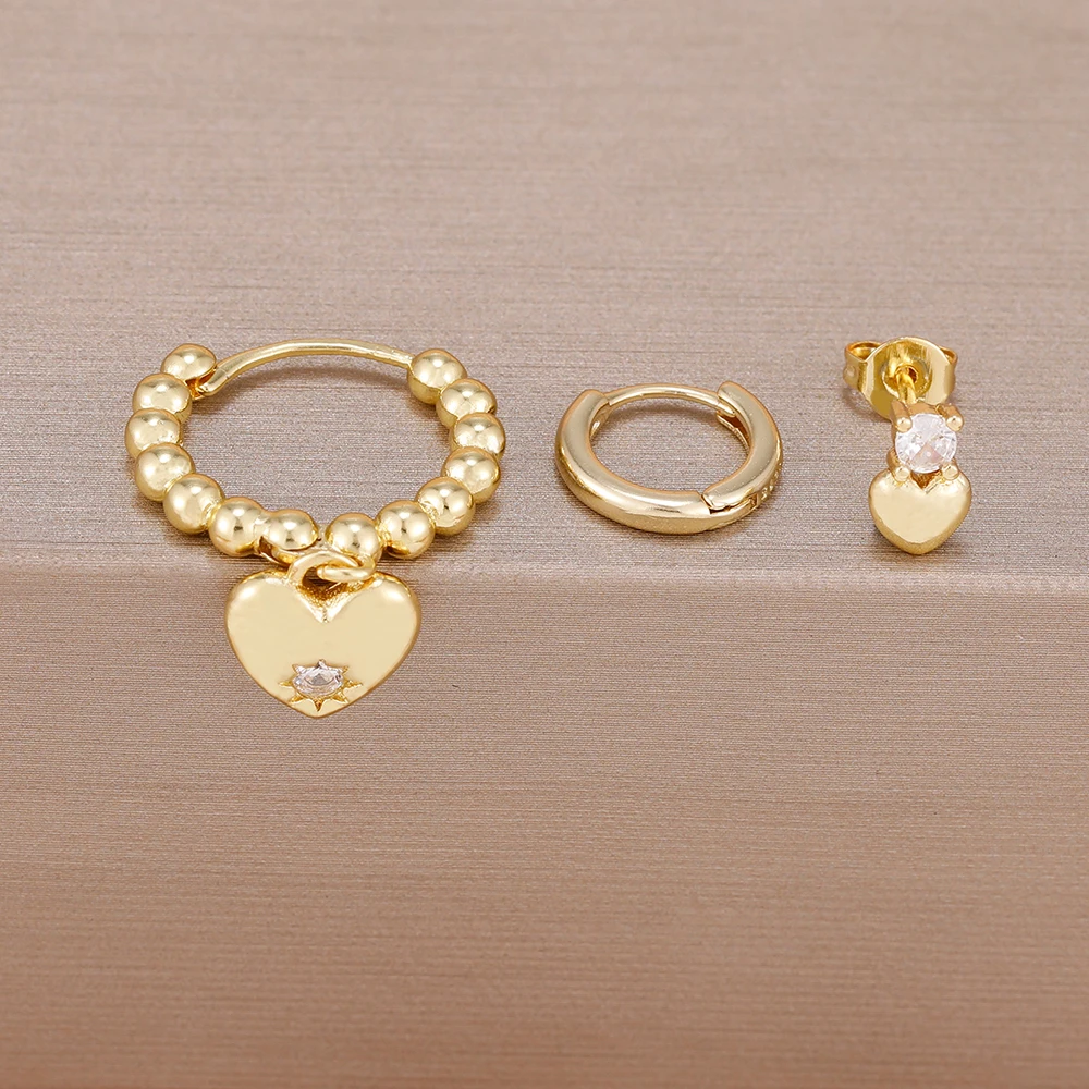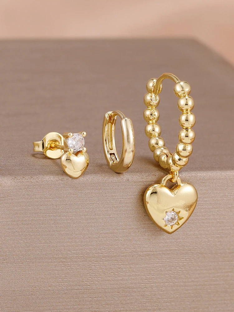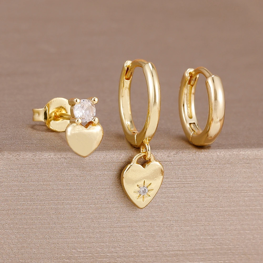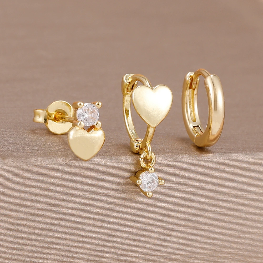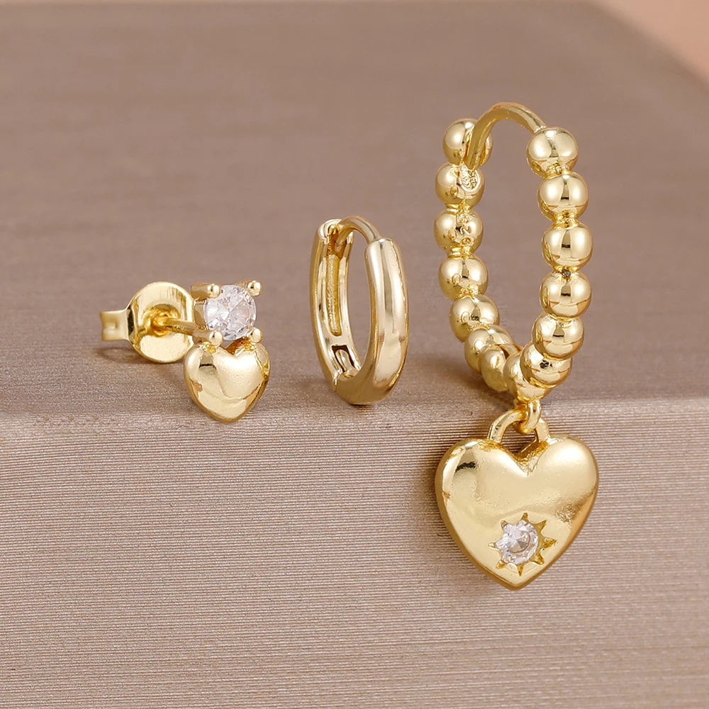 3PCS Simple 14K Gold Plated Stainless Steel Shiny Heart Hoop Earrings Set for Women Girls Daily Minimalist Cute Jewelry Gift