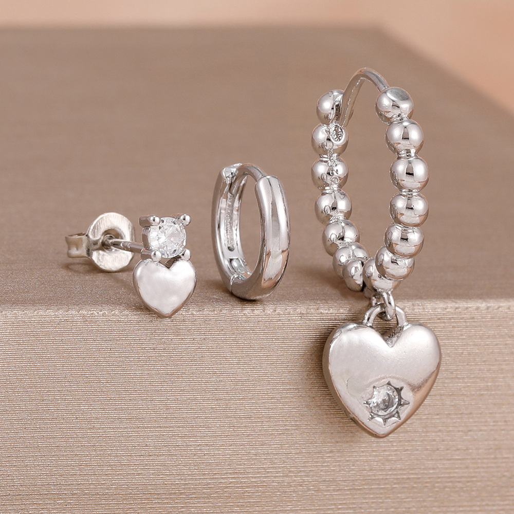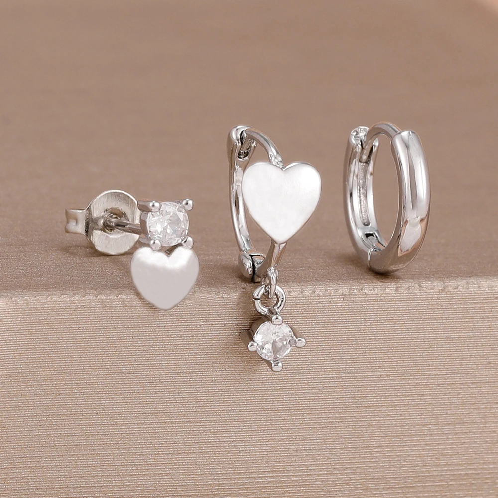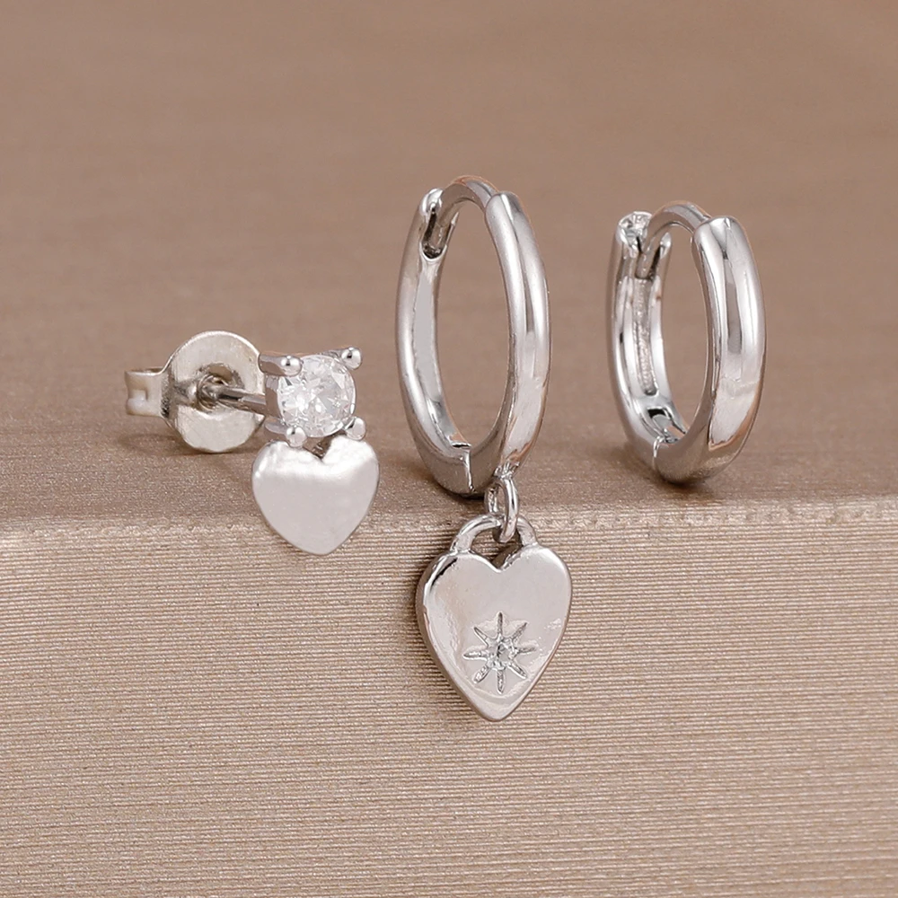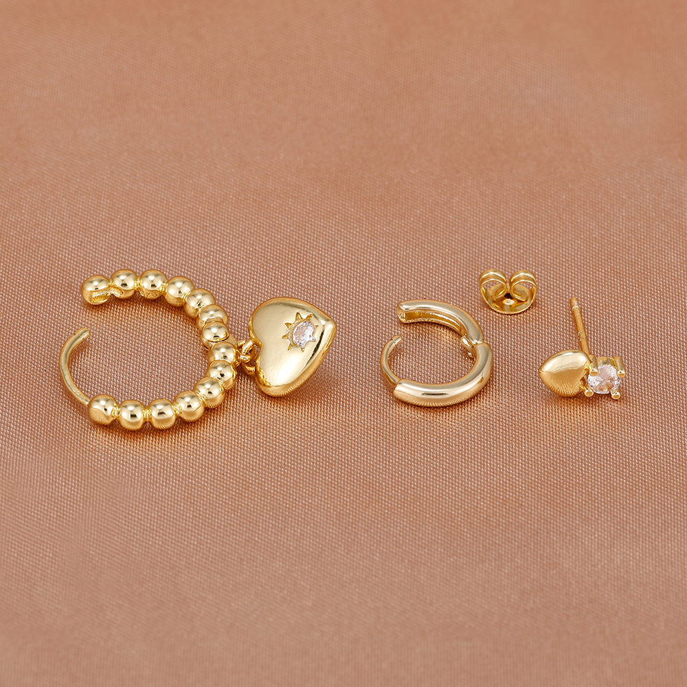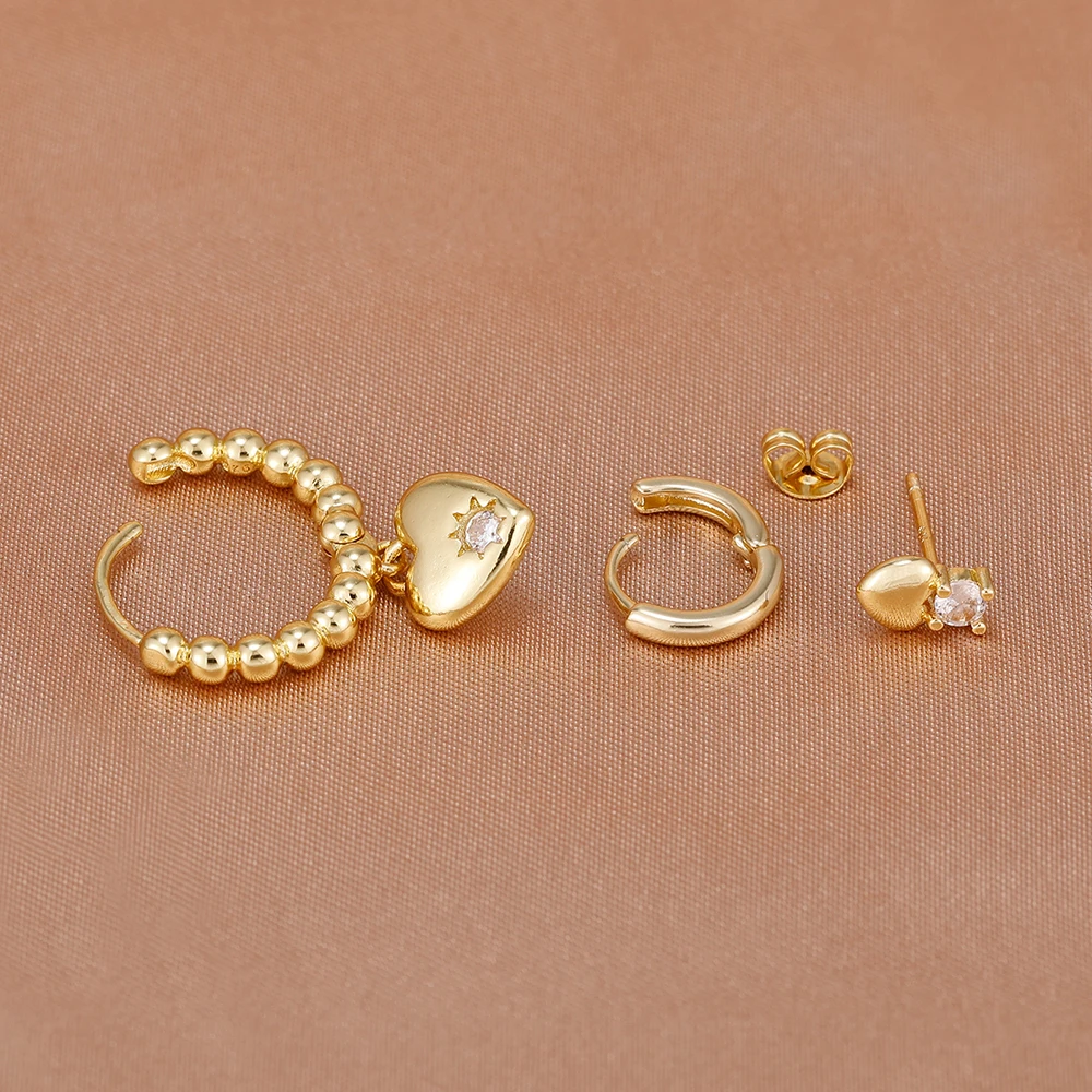 3PCS Simple 14K Gold Plated Stainless Steel Shiny Heart Hoop Earrings Set for Women Girls Daily Minimalist Cute Jewelry Gift