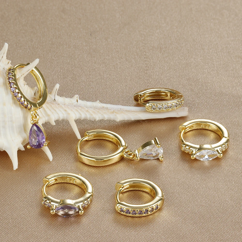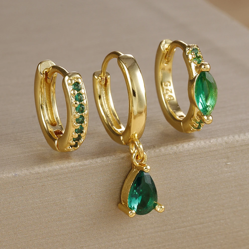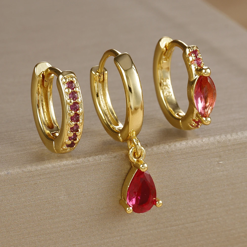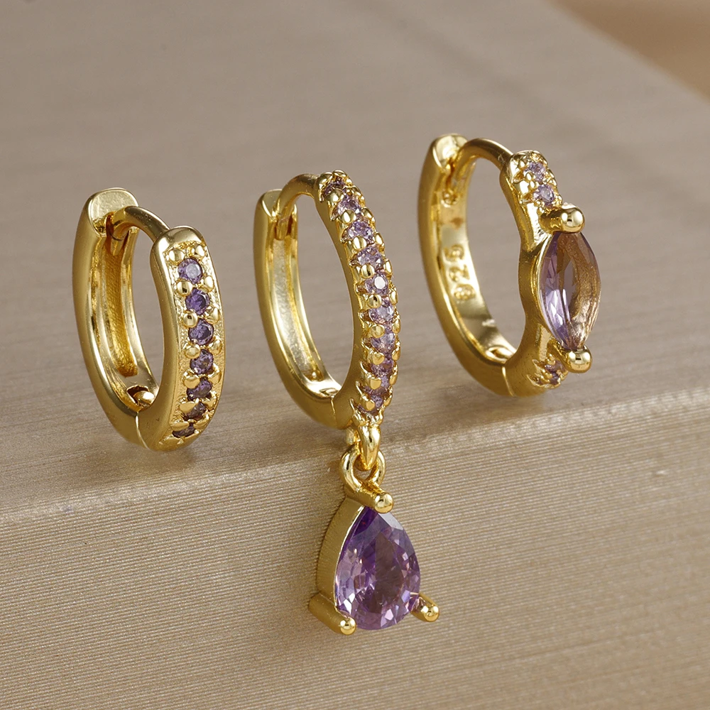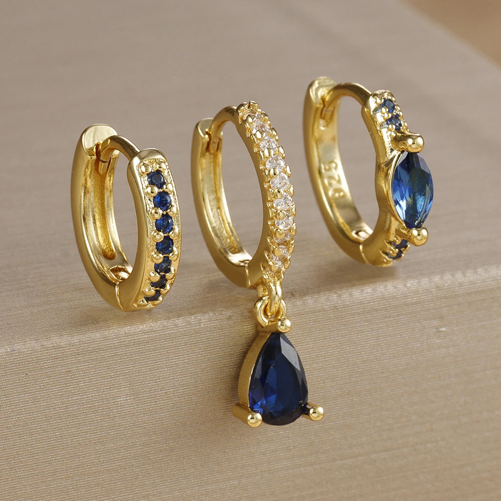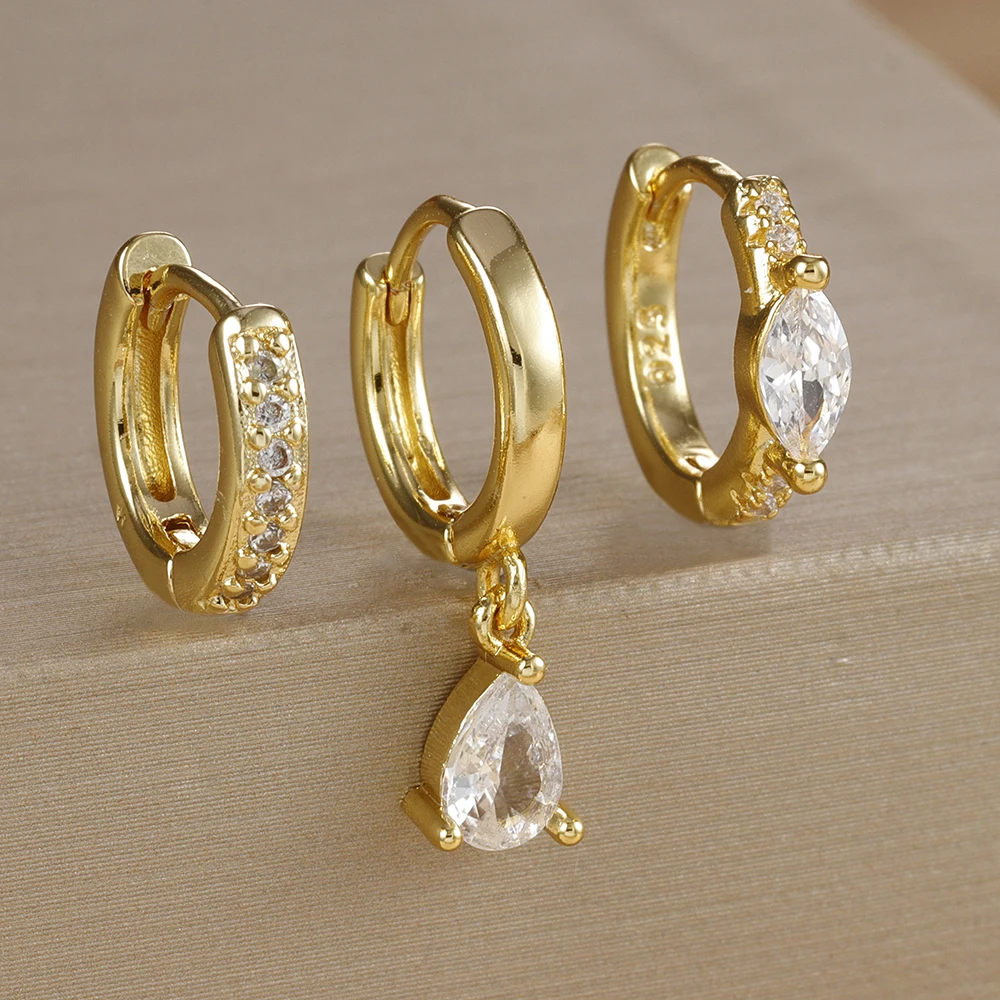 3PCS Stainless Stee Zircon Water Drop Hoop Earrings Set For Woman Little Huggies Round Hoop Earring Cartilage Piercing Jewelry