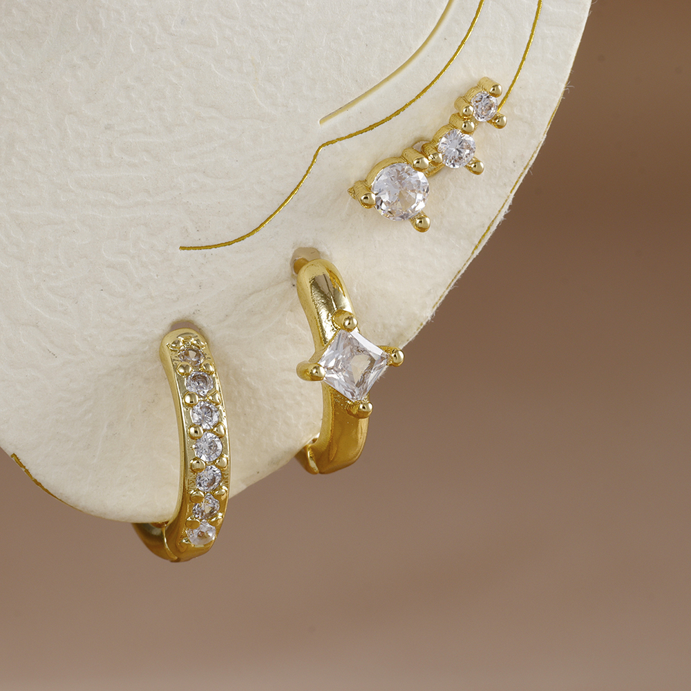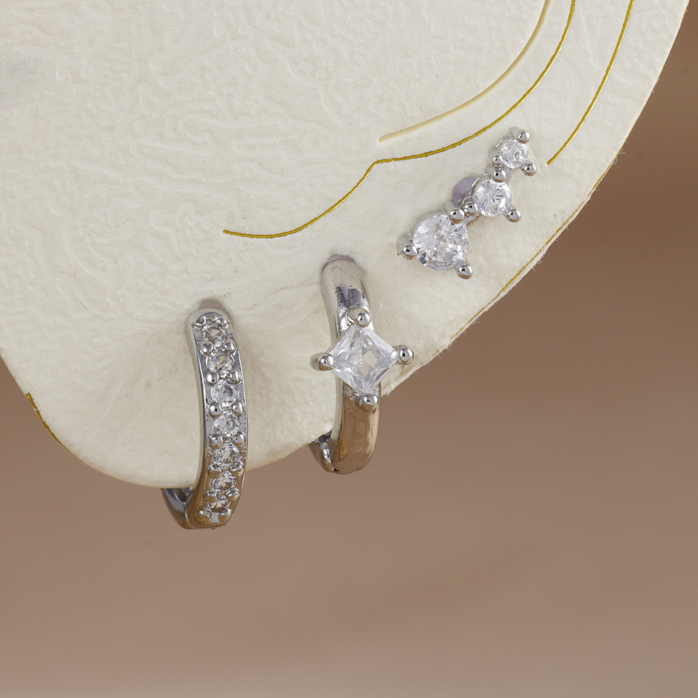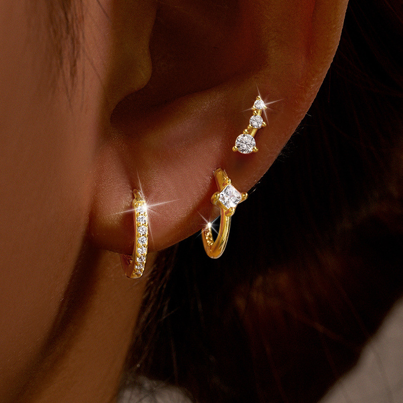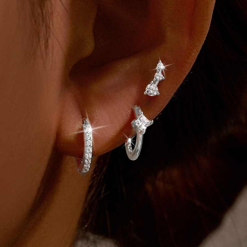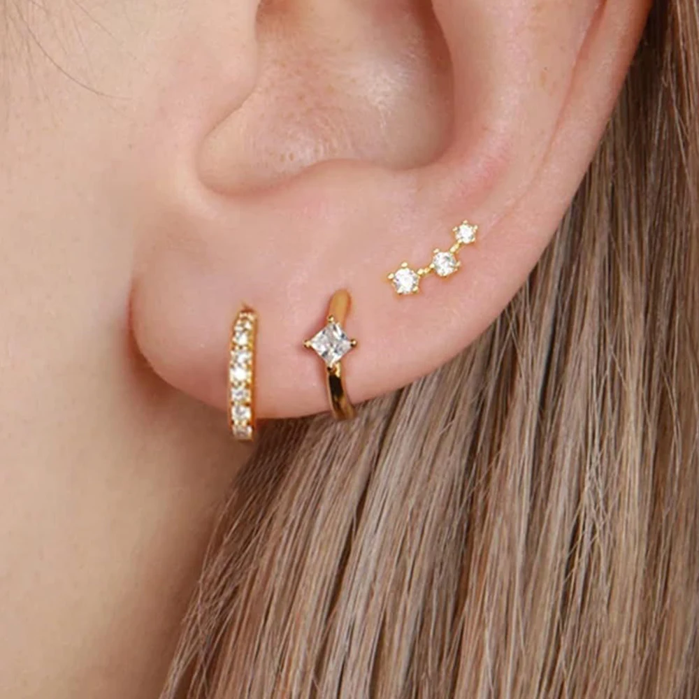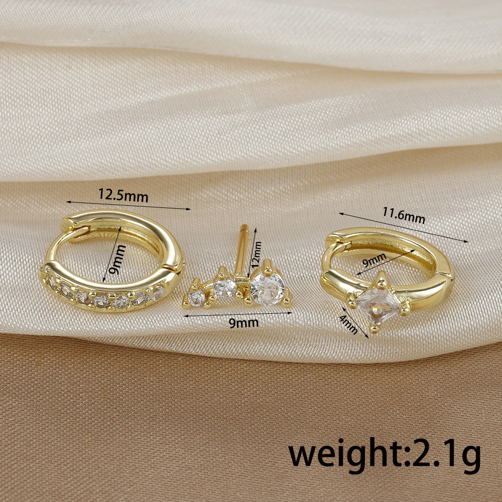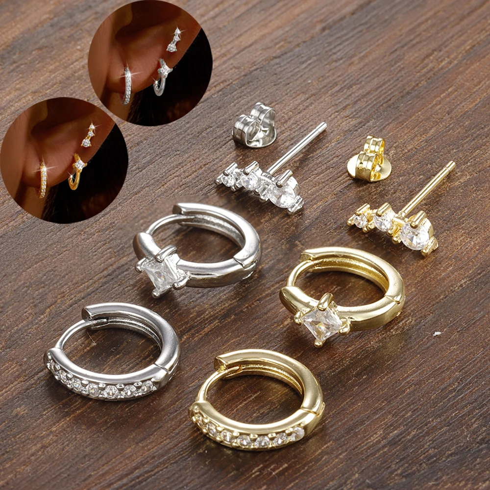3PCS Stainless Steel Crystal Zirconia Huggie Hoop Earrings Set For Women Geometric Soft Bone Studs Earring Minimalist Jewelry