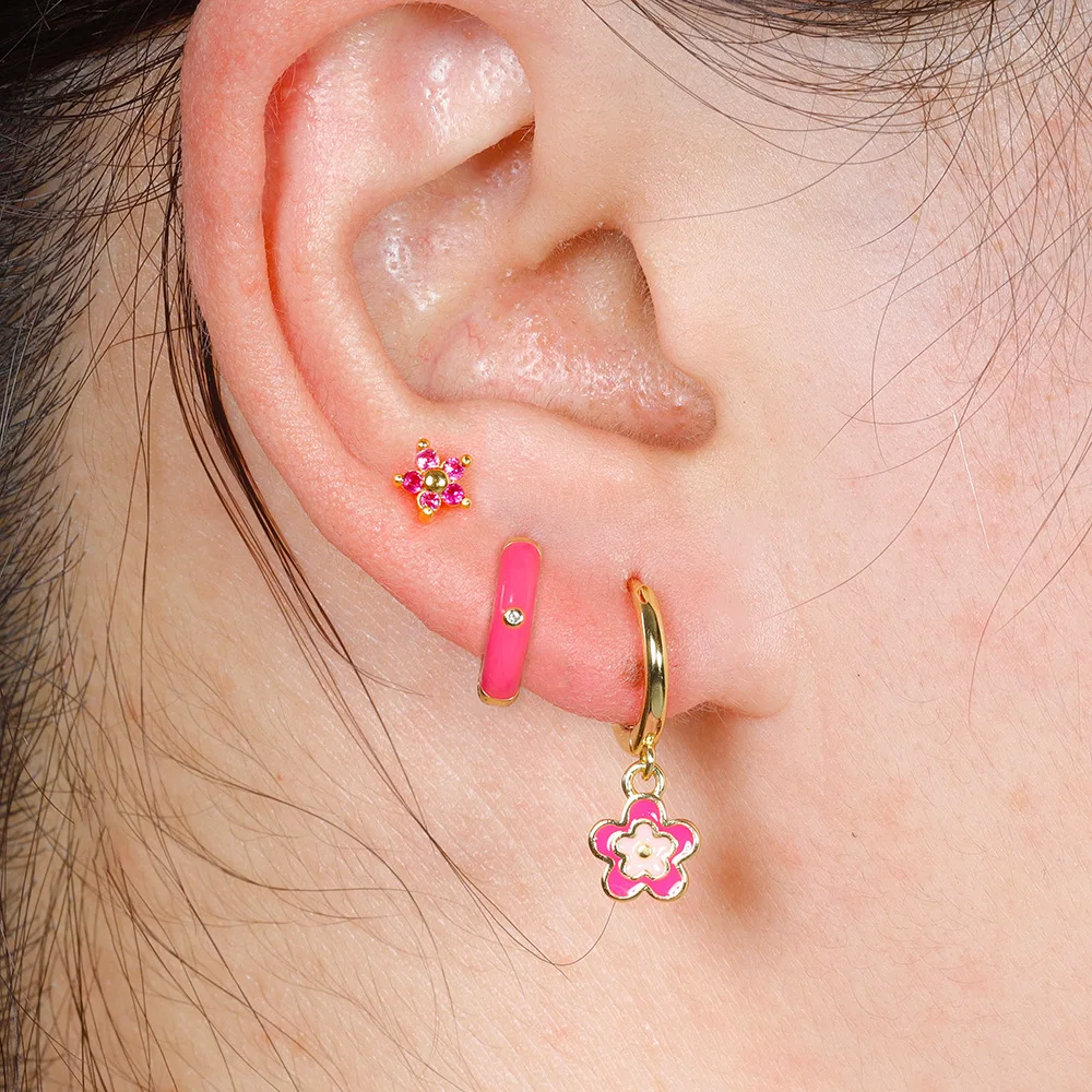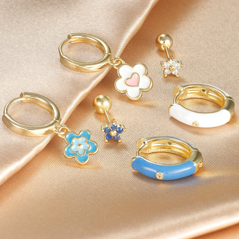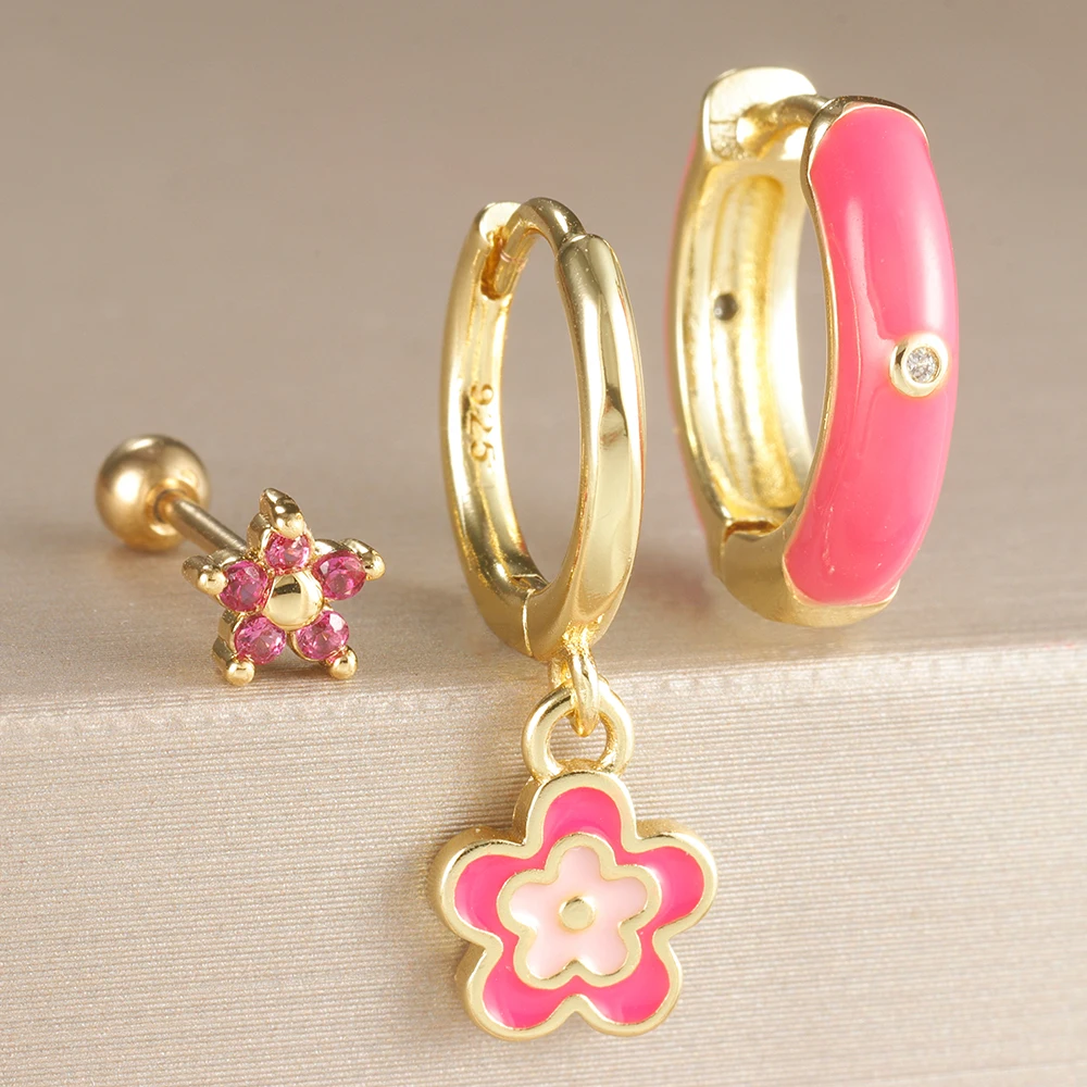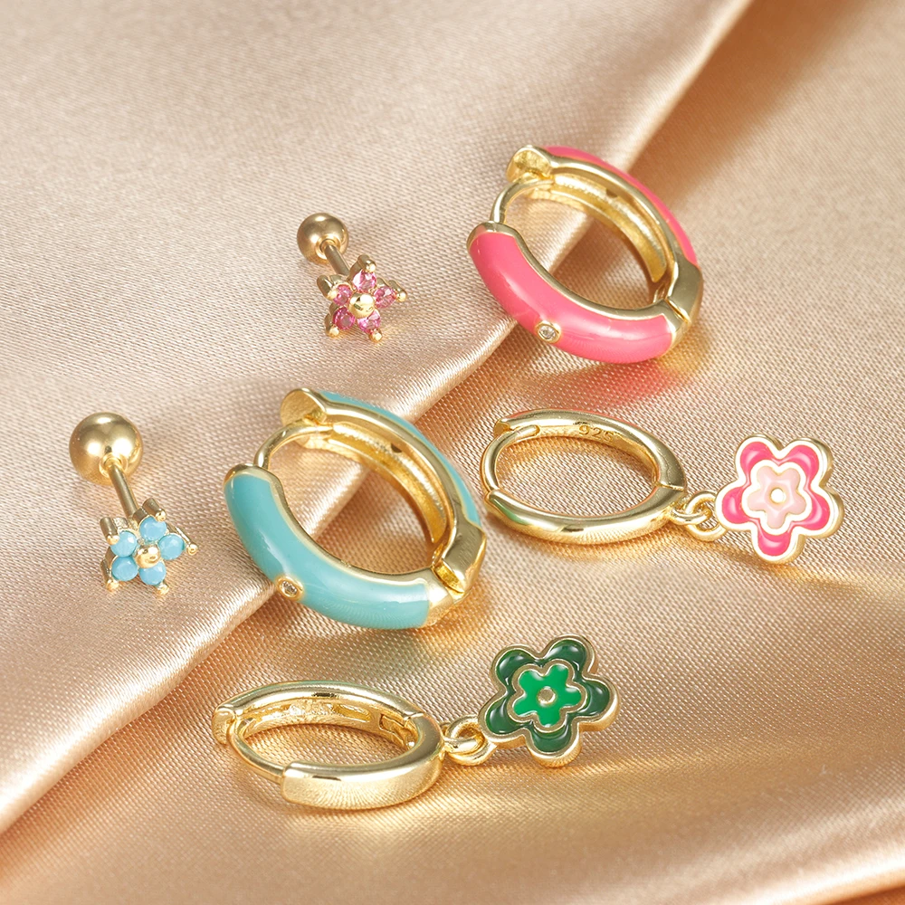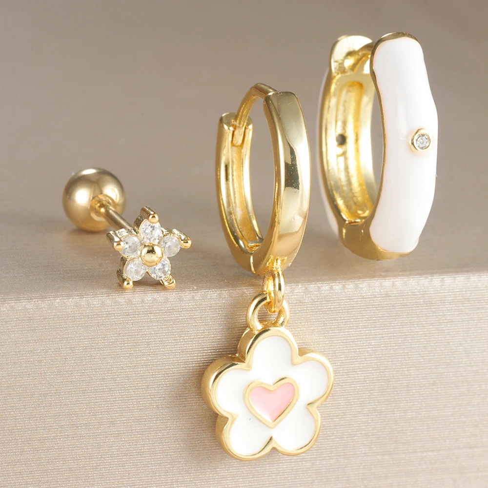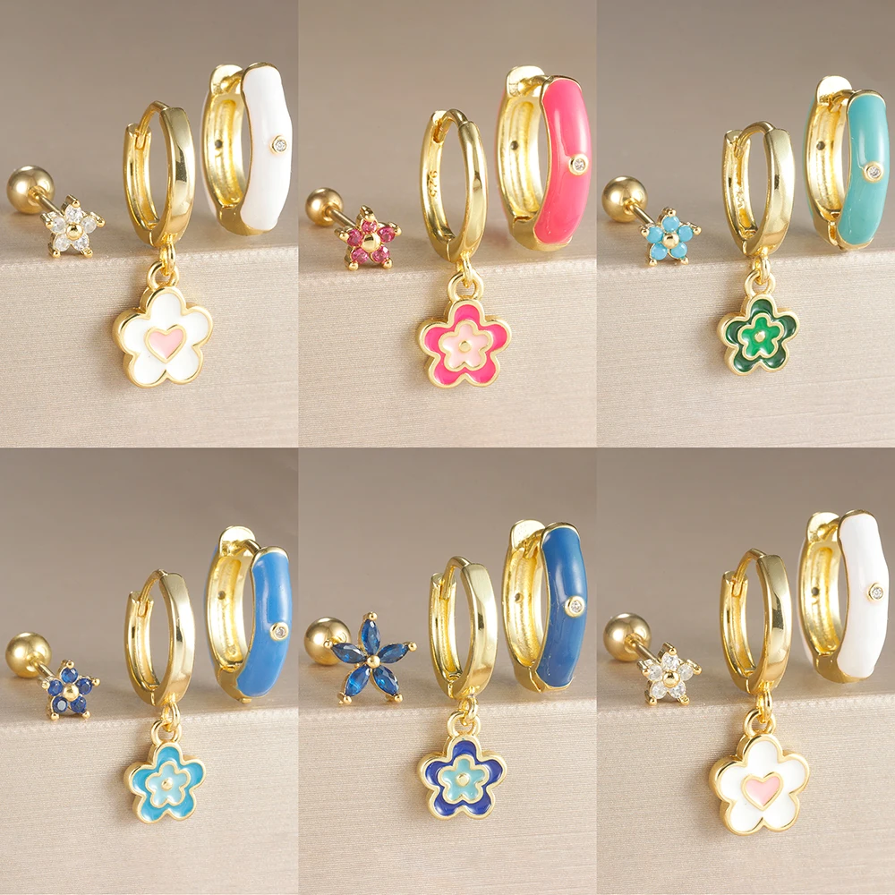 3PCS Stainless Steel Hoop Earrings Set Mini Zircon Lovely Colorful Enamel Cartilage Flower Piercing Earring Jewelry Accessories