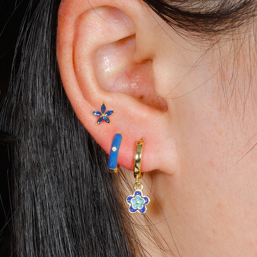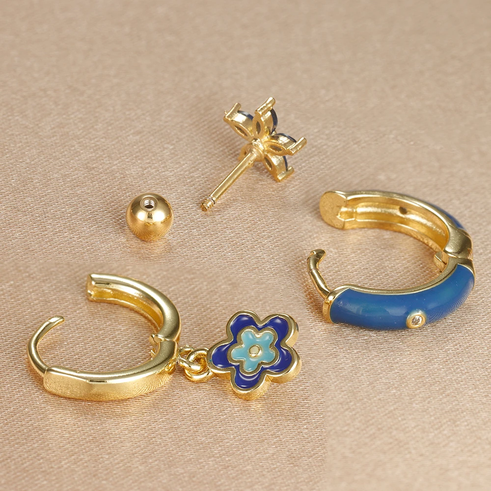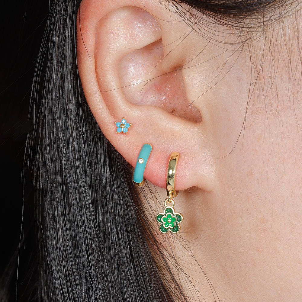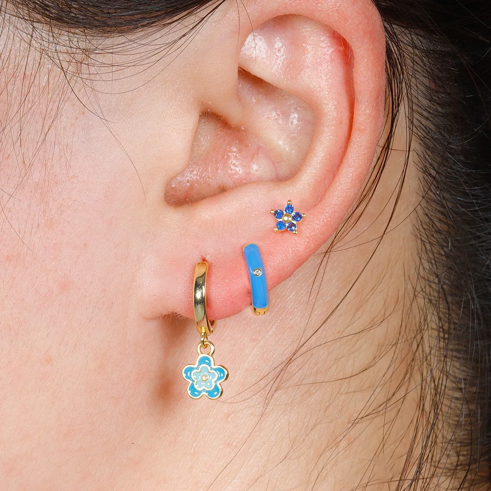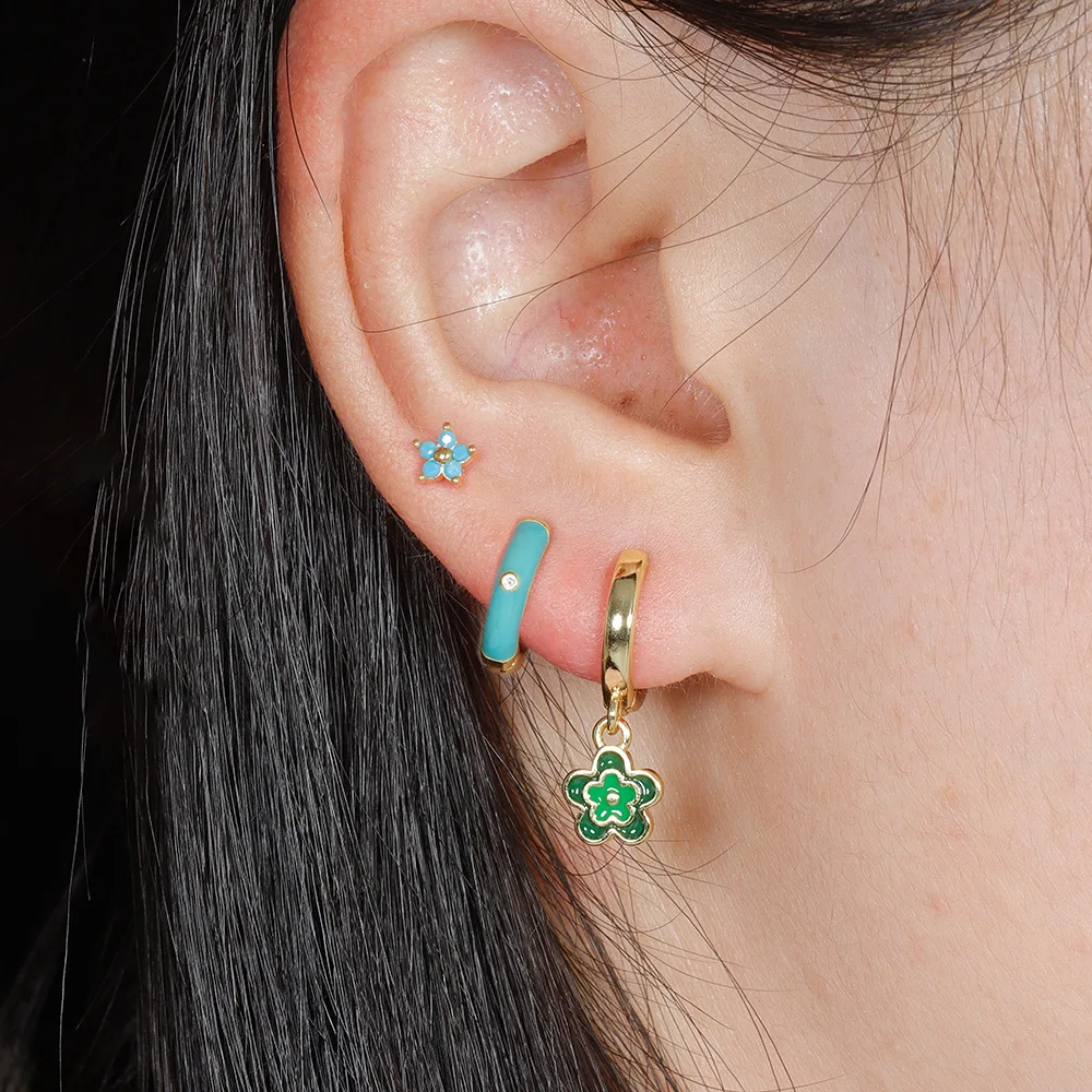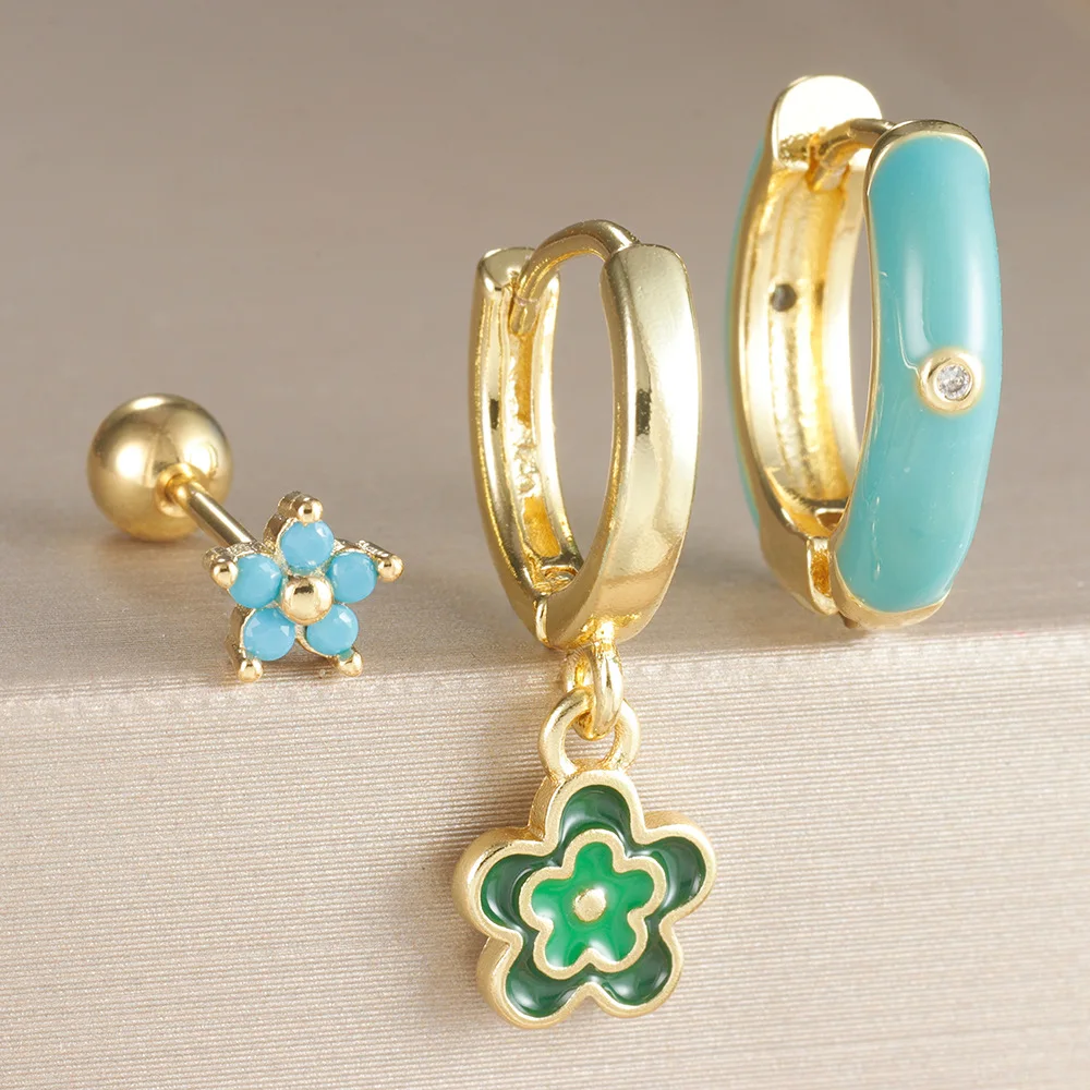 3PCS Stainless Steel Hoop Earrings Set Mini Zircon Lovely Colorful Enamel Cartilage Flower Piercing Earring Jewelry Accessories