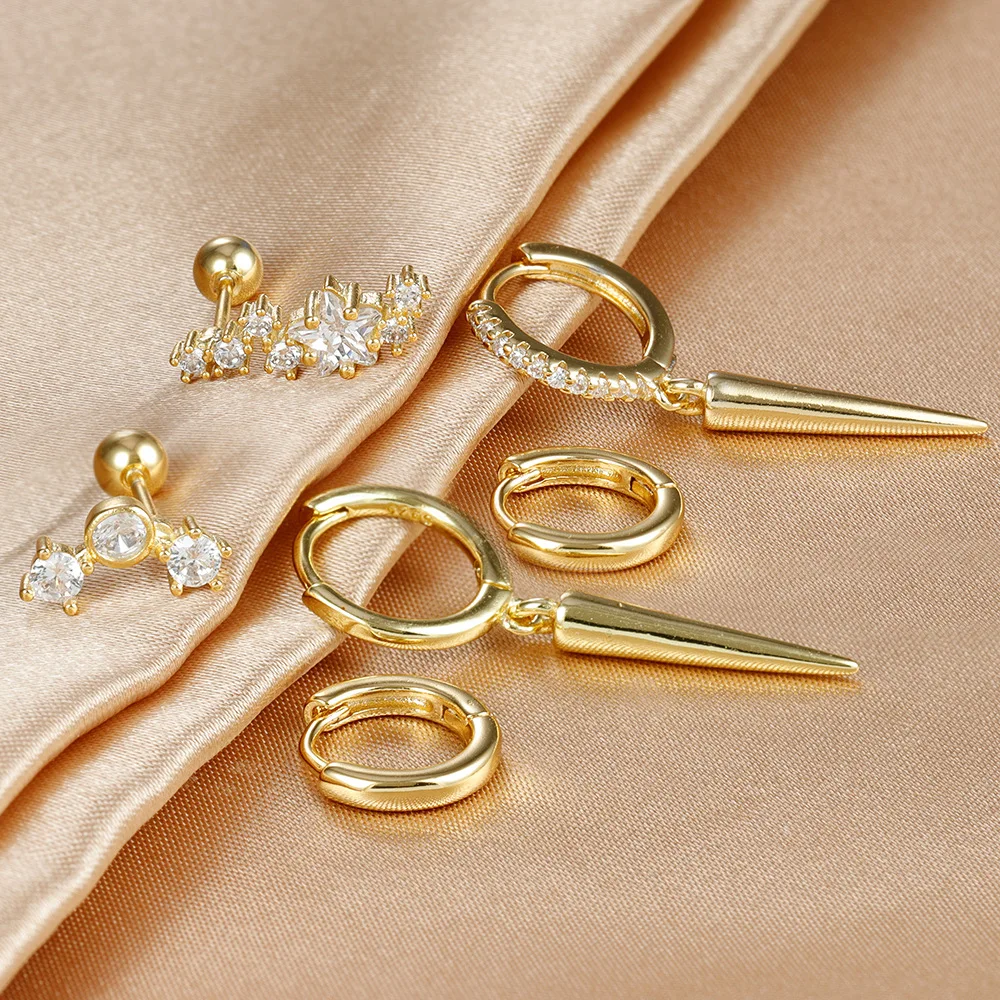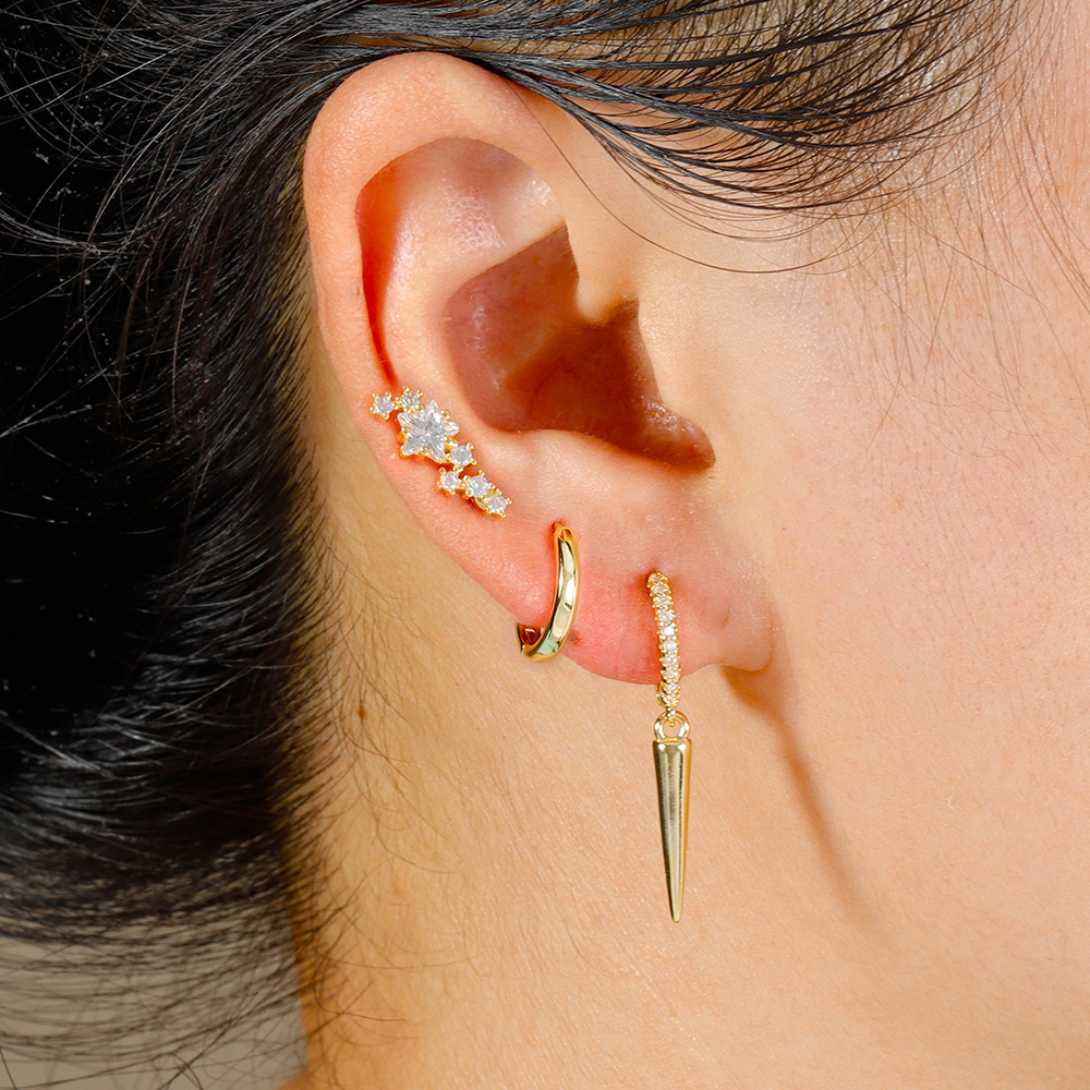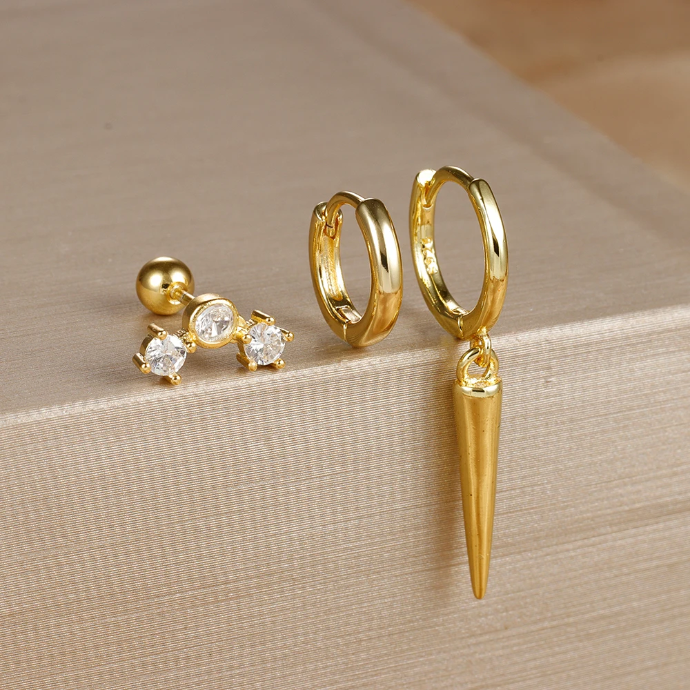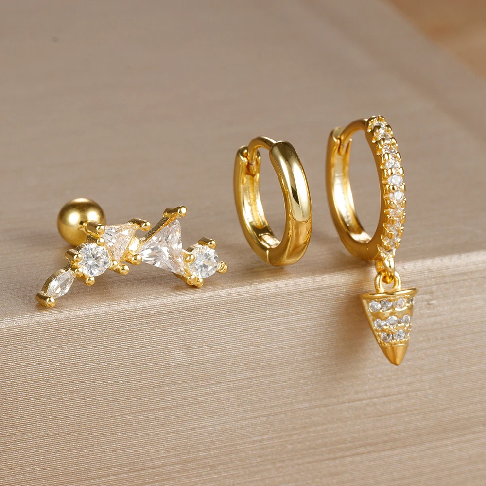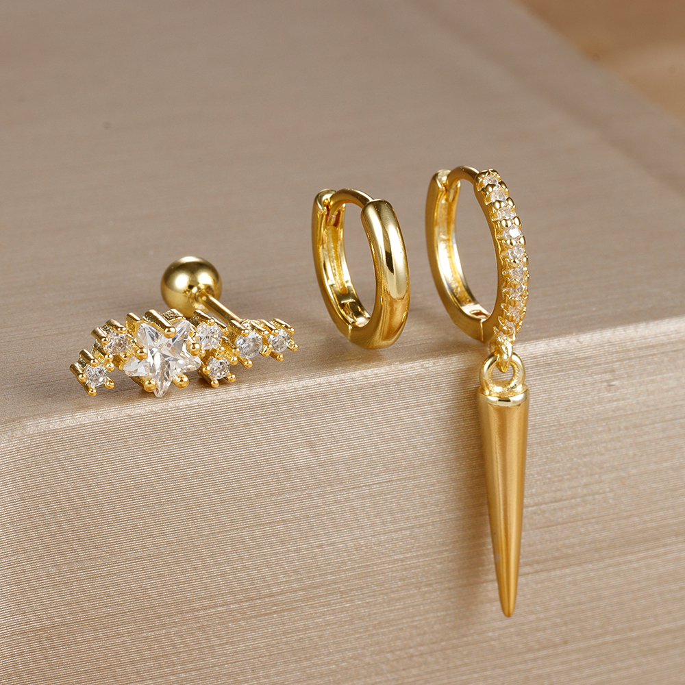 3PCS Stainless Steel Star Tapered Hoop Earrings For Women Gold Color Circle Round Huggie Helix Tragus Cartilage Piercing Jewelry