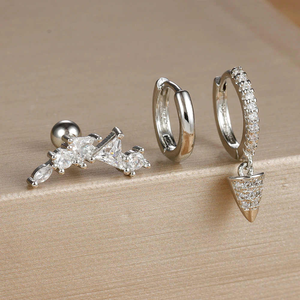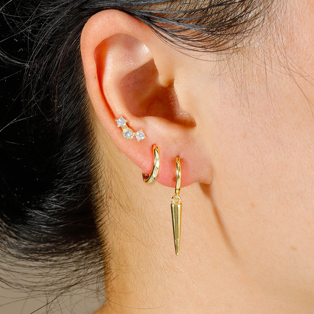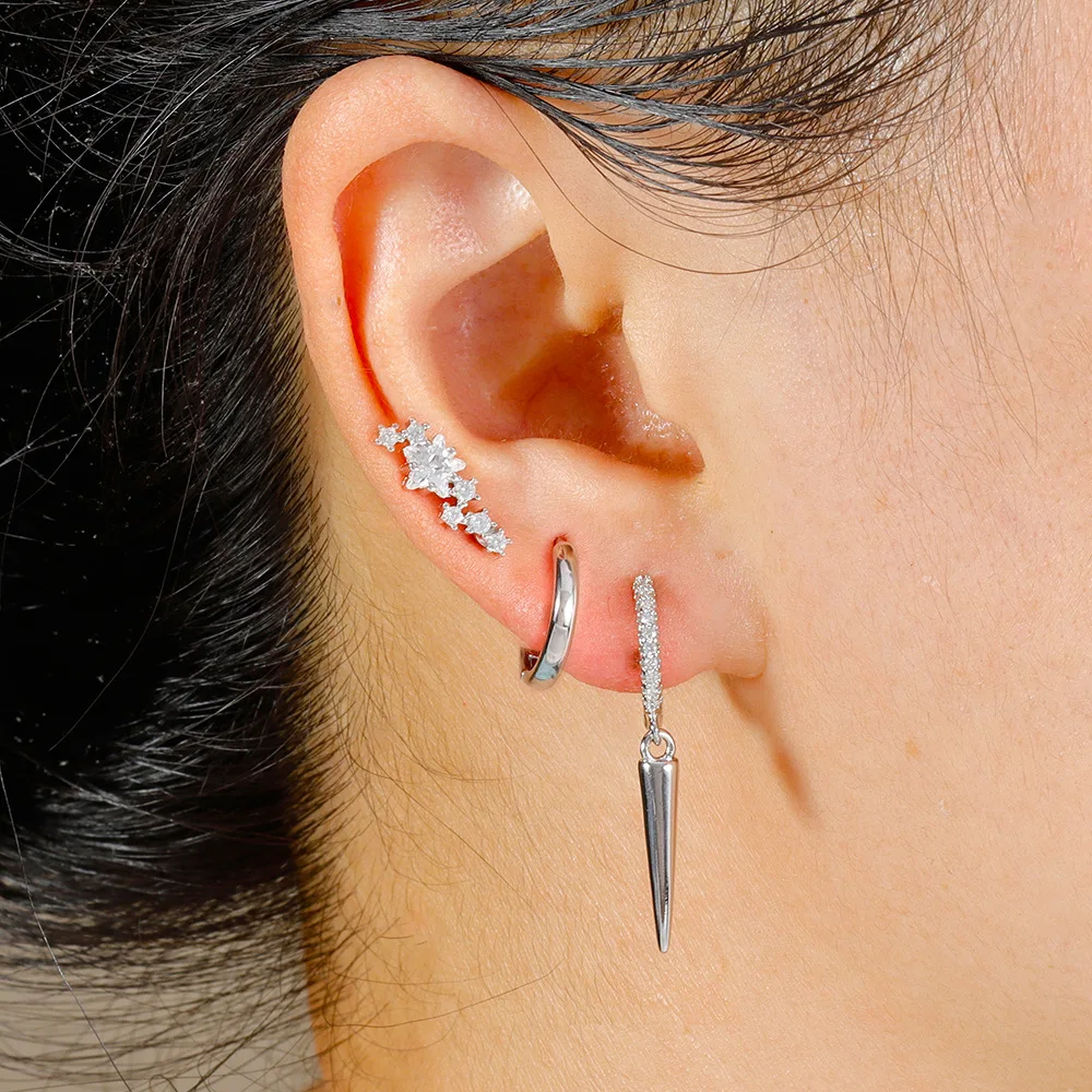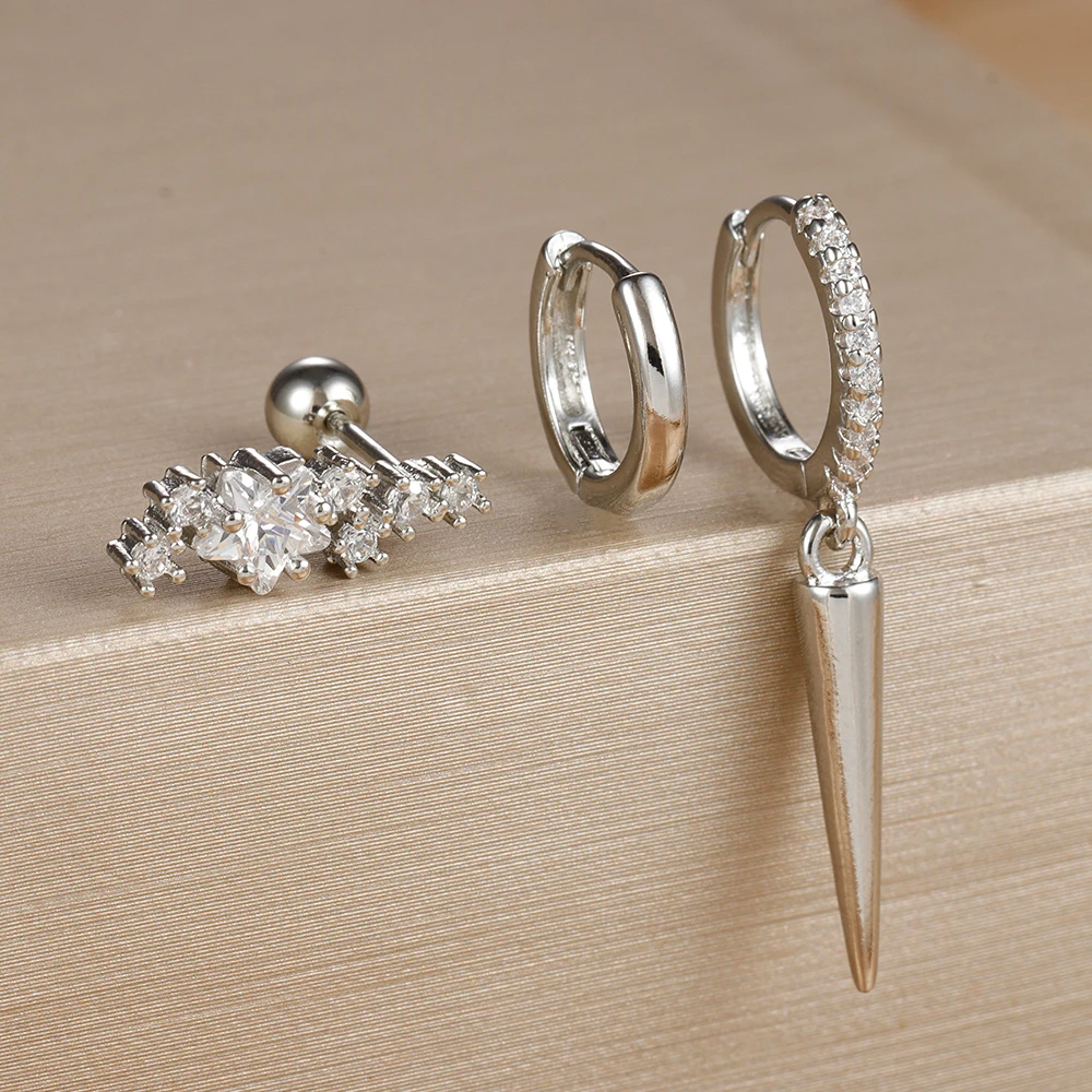 3PCS Stainless Steel Star Tapered Hoop Earrings For Women Gold Color Circle Round Huggie Helix Tragus Cartilage Piercing Jewelry