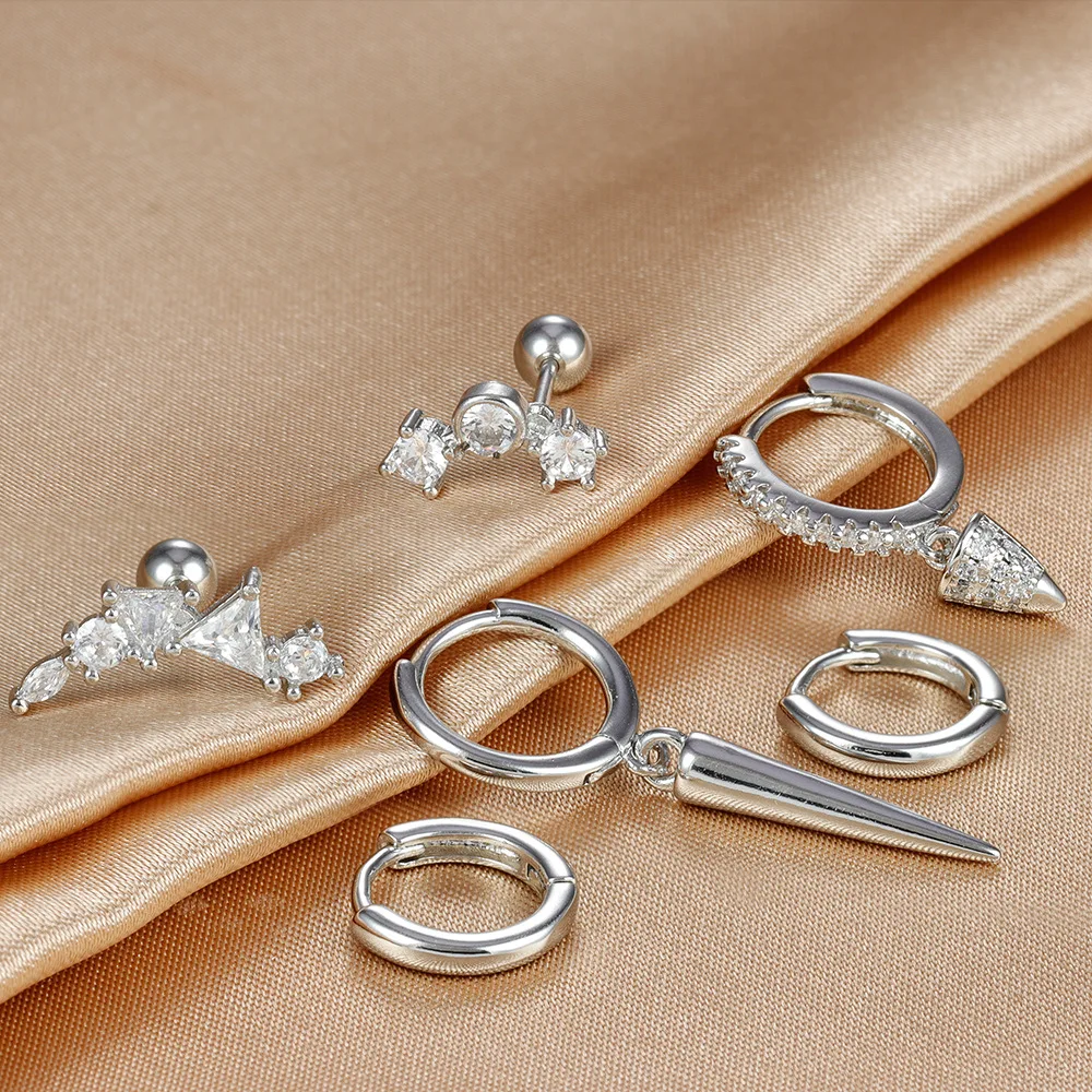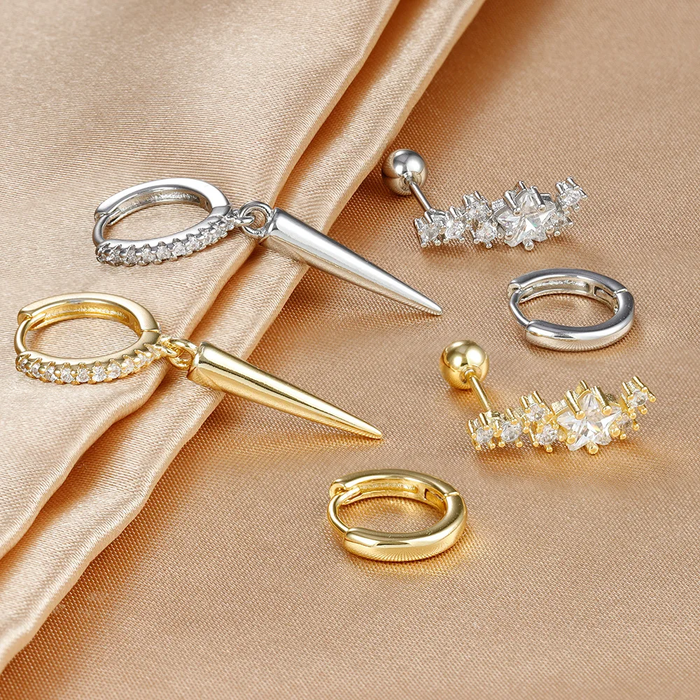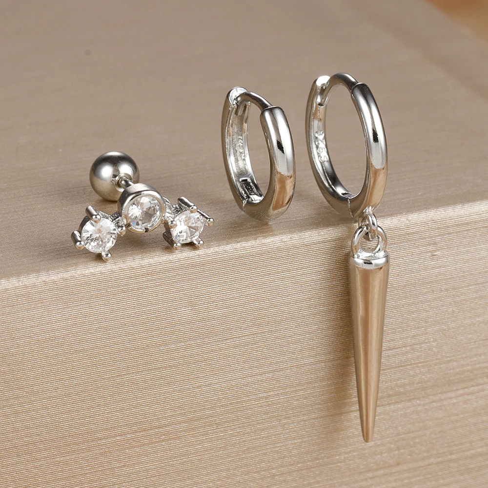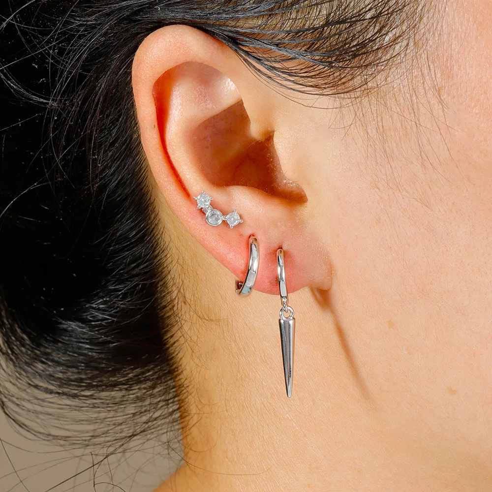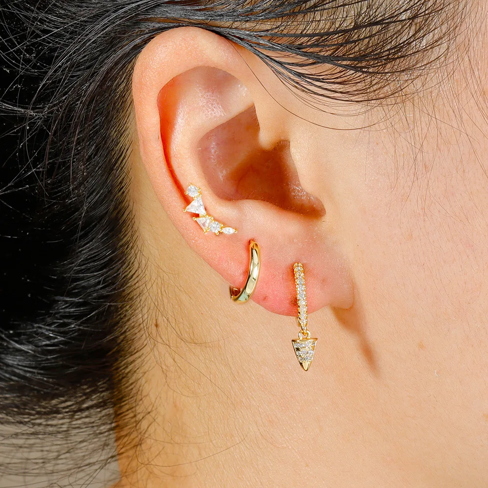 3PCS Stainless Steel Star Tapered Hoop Earrings For Women Gold Color Circle Round Huggie Helix Tragus Cartilage Piercing Jewelry