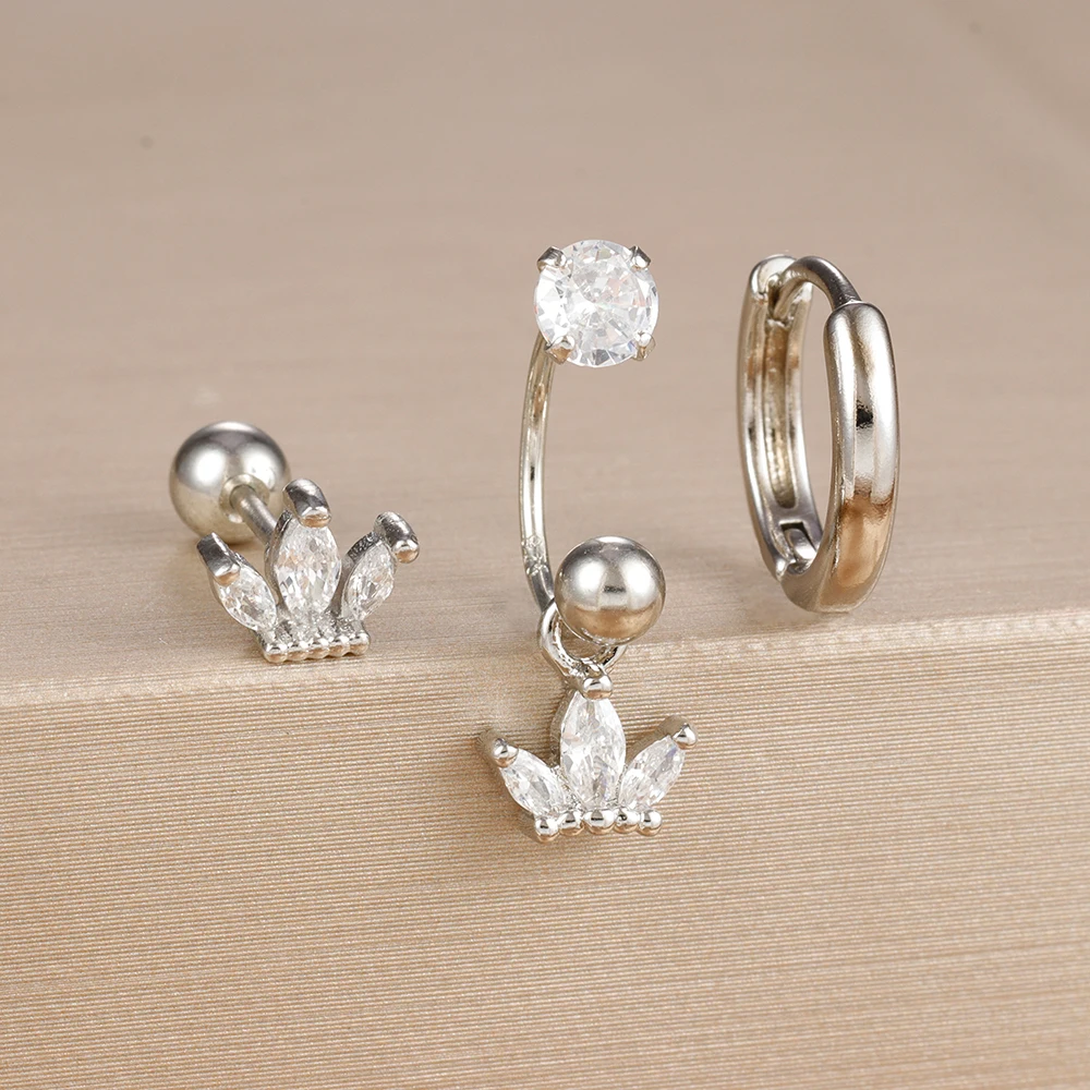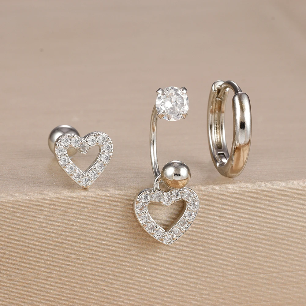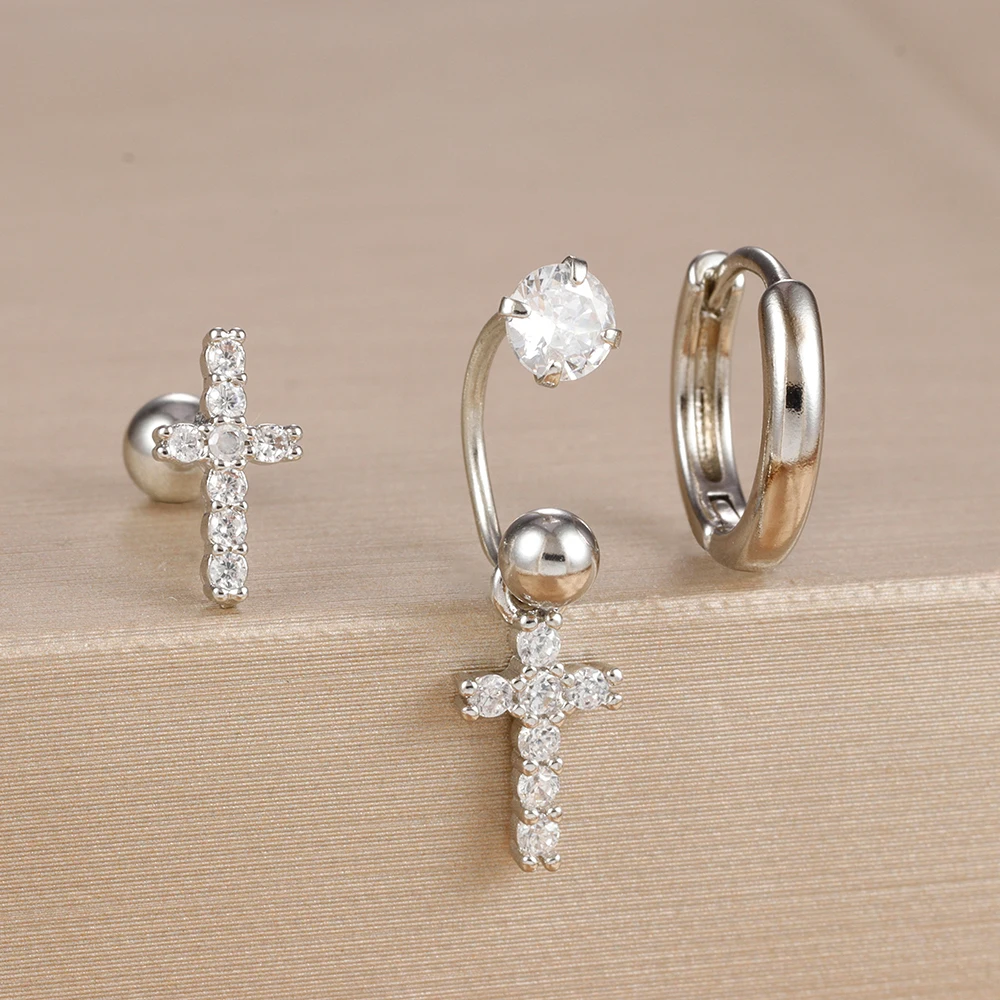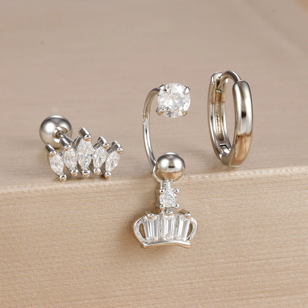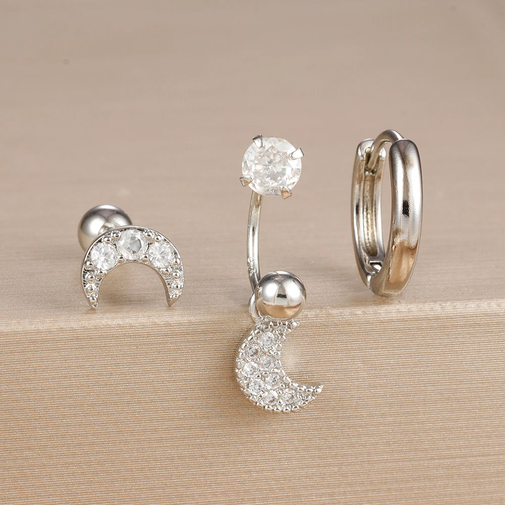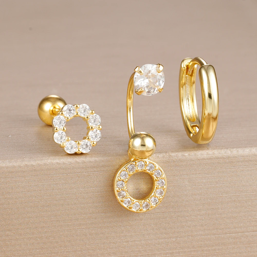 3PCS Stainless Steel Zircon Hoop Earrings Set for Women Tragus Helix Cartilage Earring Conch Rook Daith Lobe Piercing Jewelry