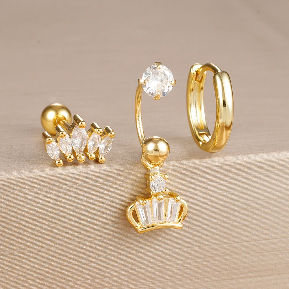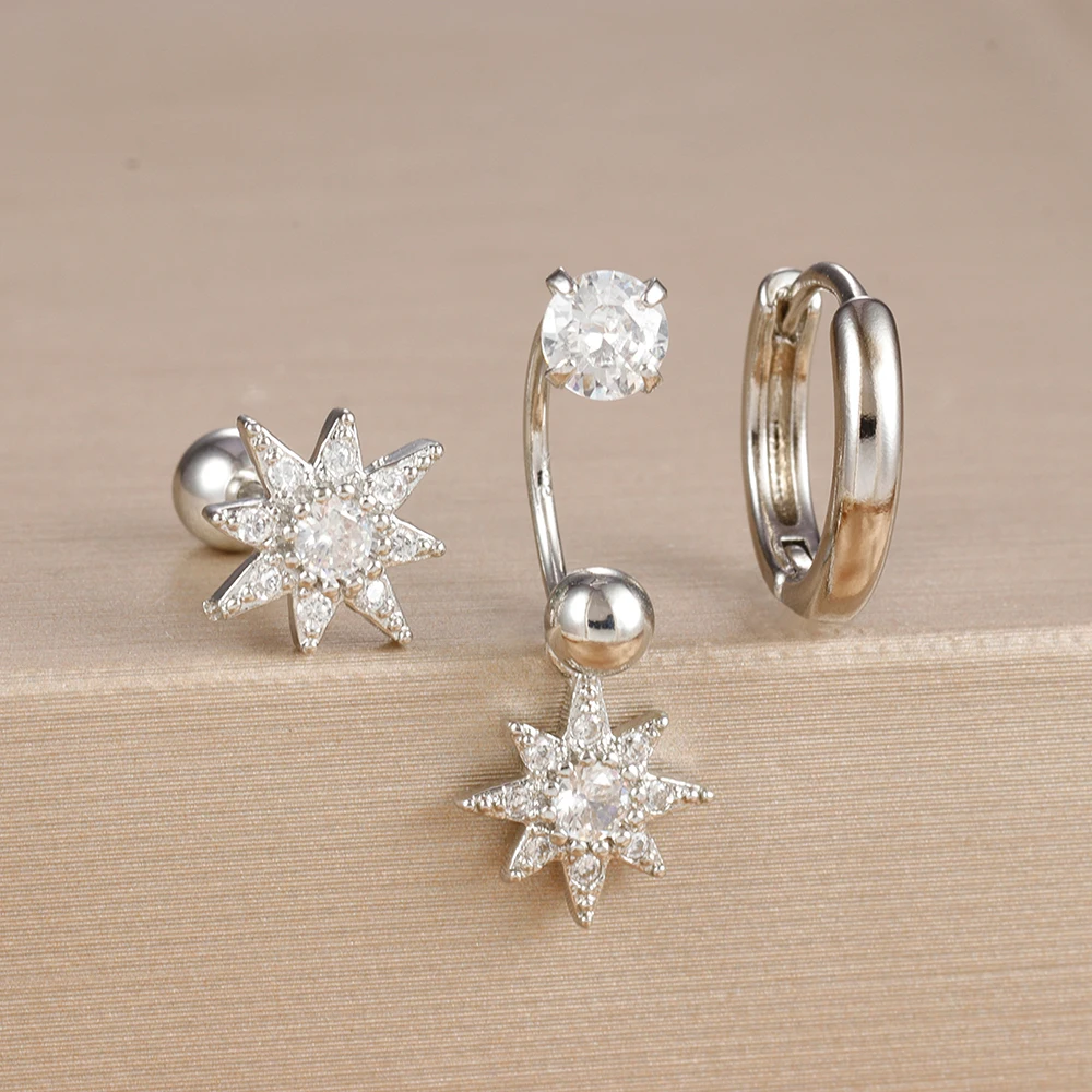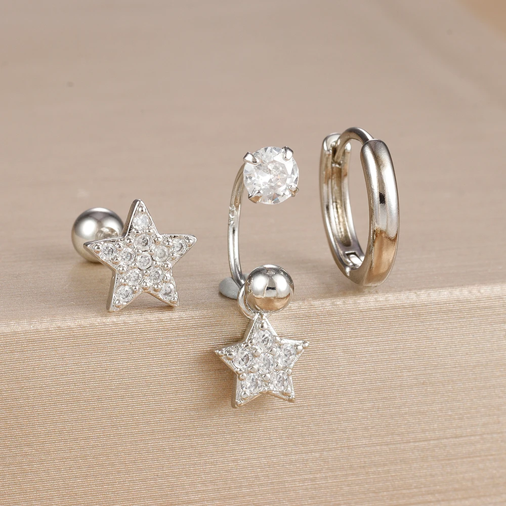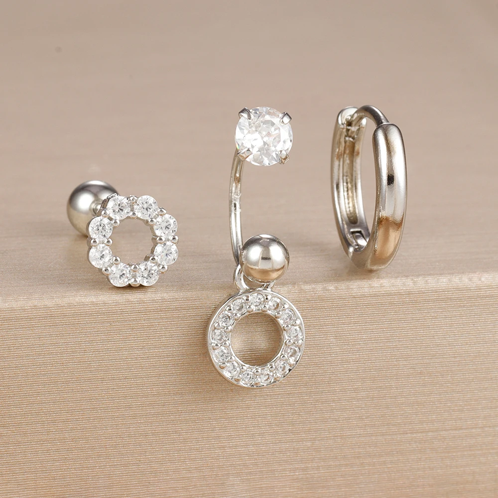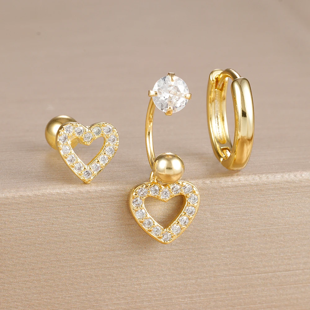 3PCS Stainless Steel Zircon Hoop Earrings Set for Women Tragus Helix Cartilage Earring Conch Rook Daith Lobe Piercing Jewelry