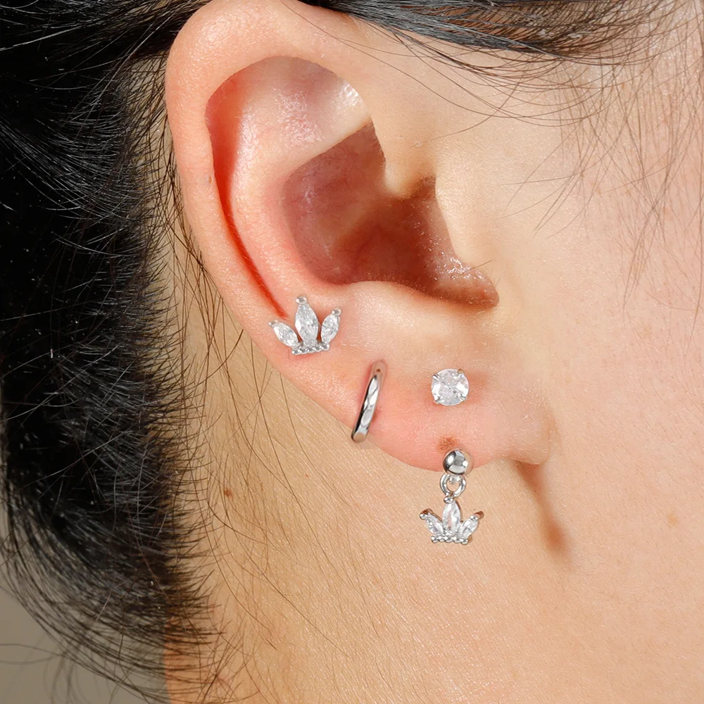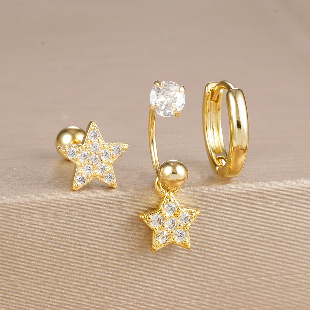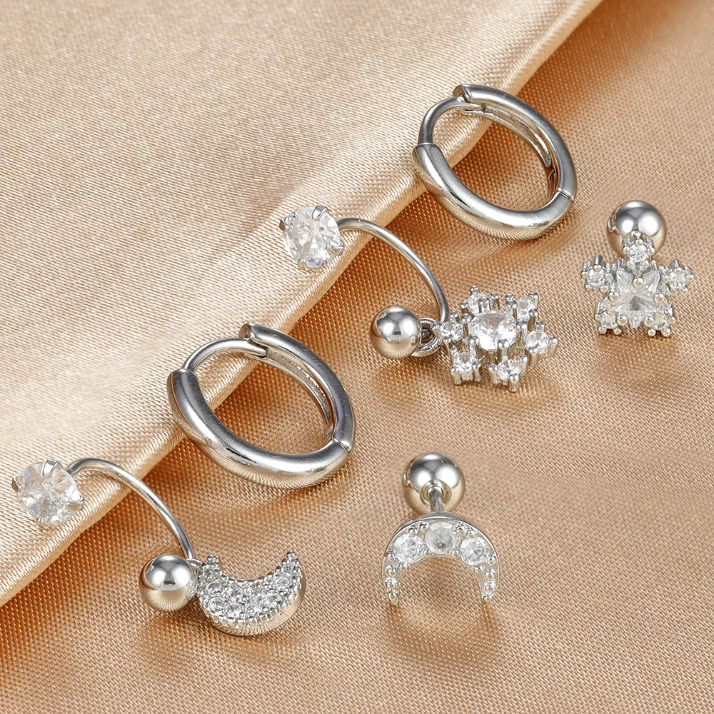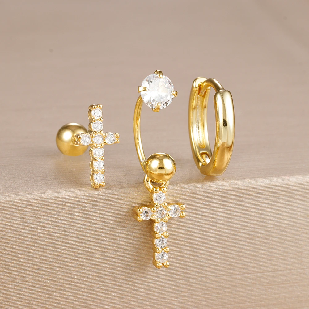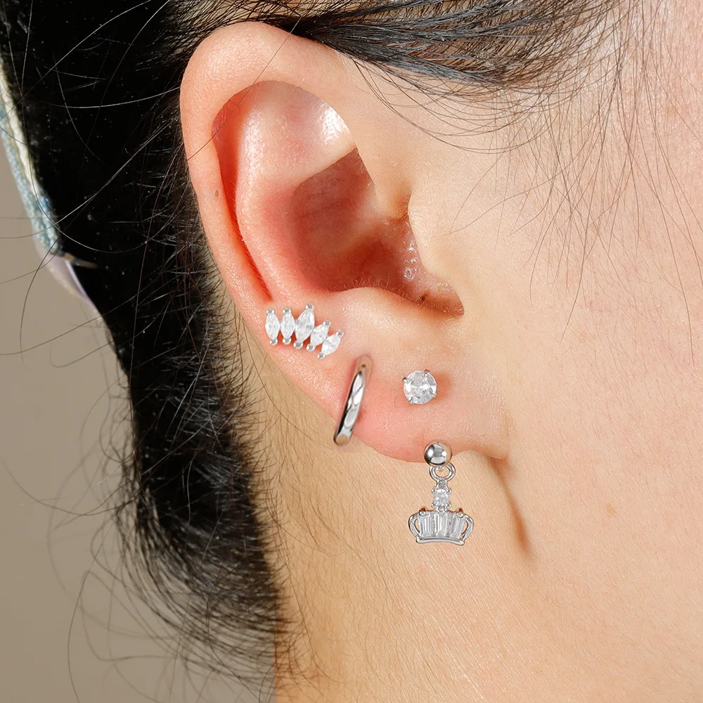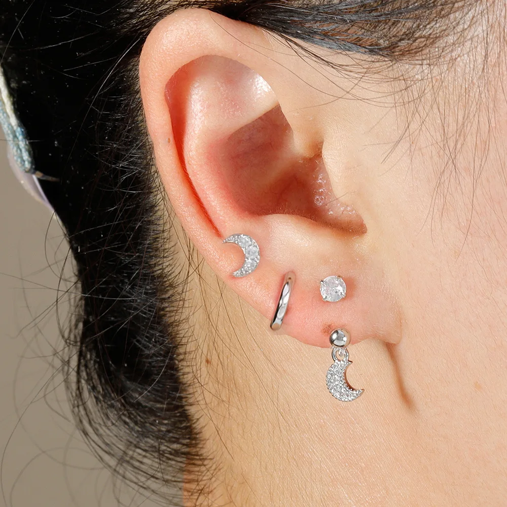 3PCS Stainless Steel Zircon Hoop Earrings Set for Women Tragus Helix Cartilage Earring Conch Rook Daith Lobe Piercing Jewelry