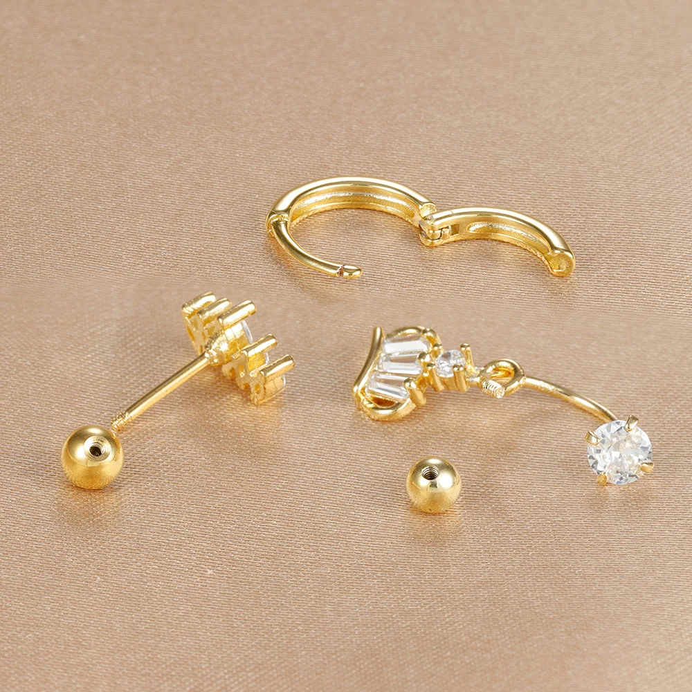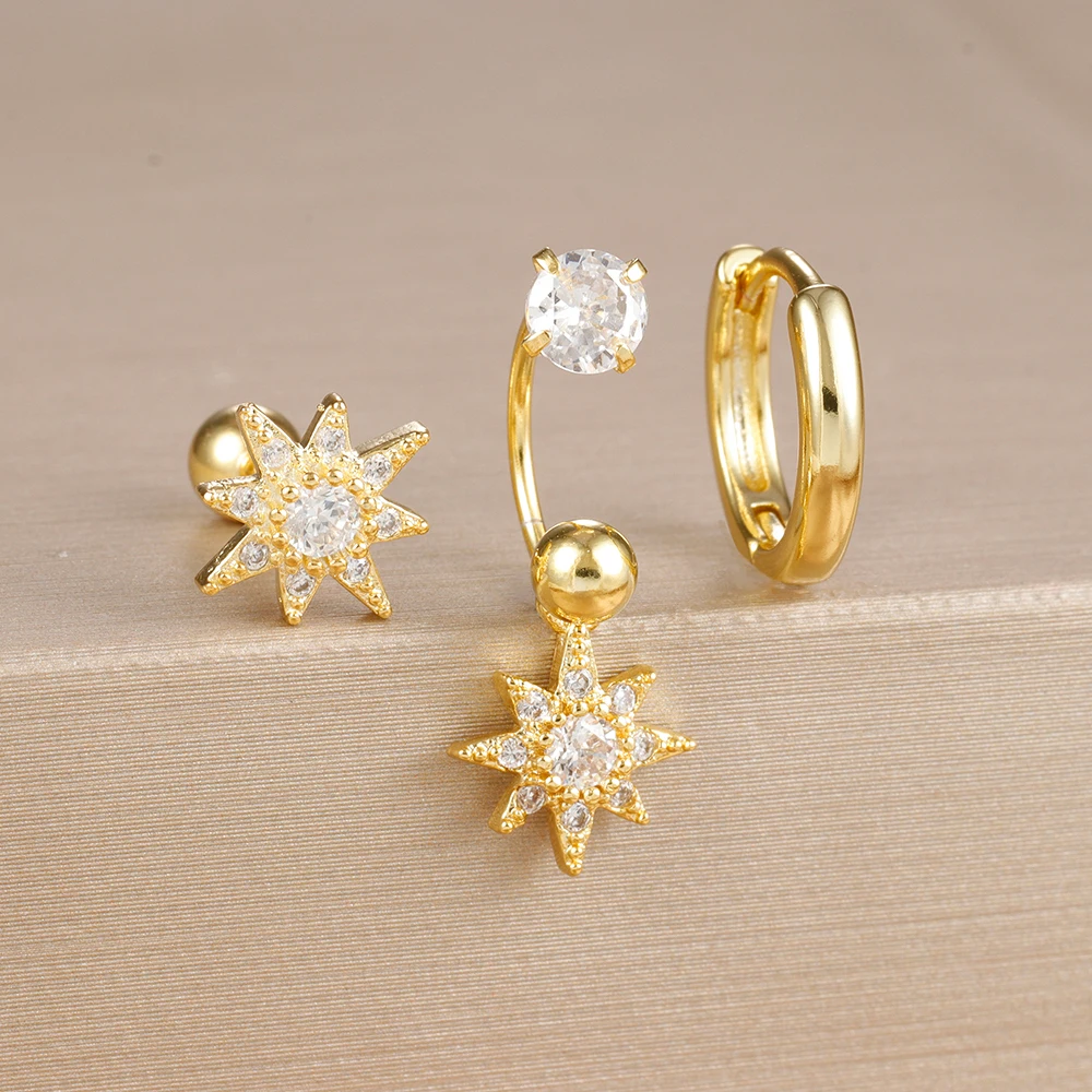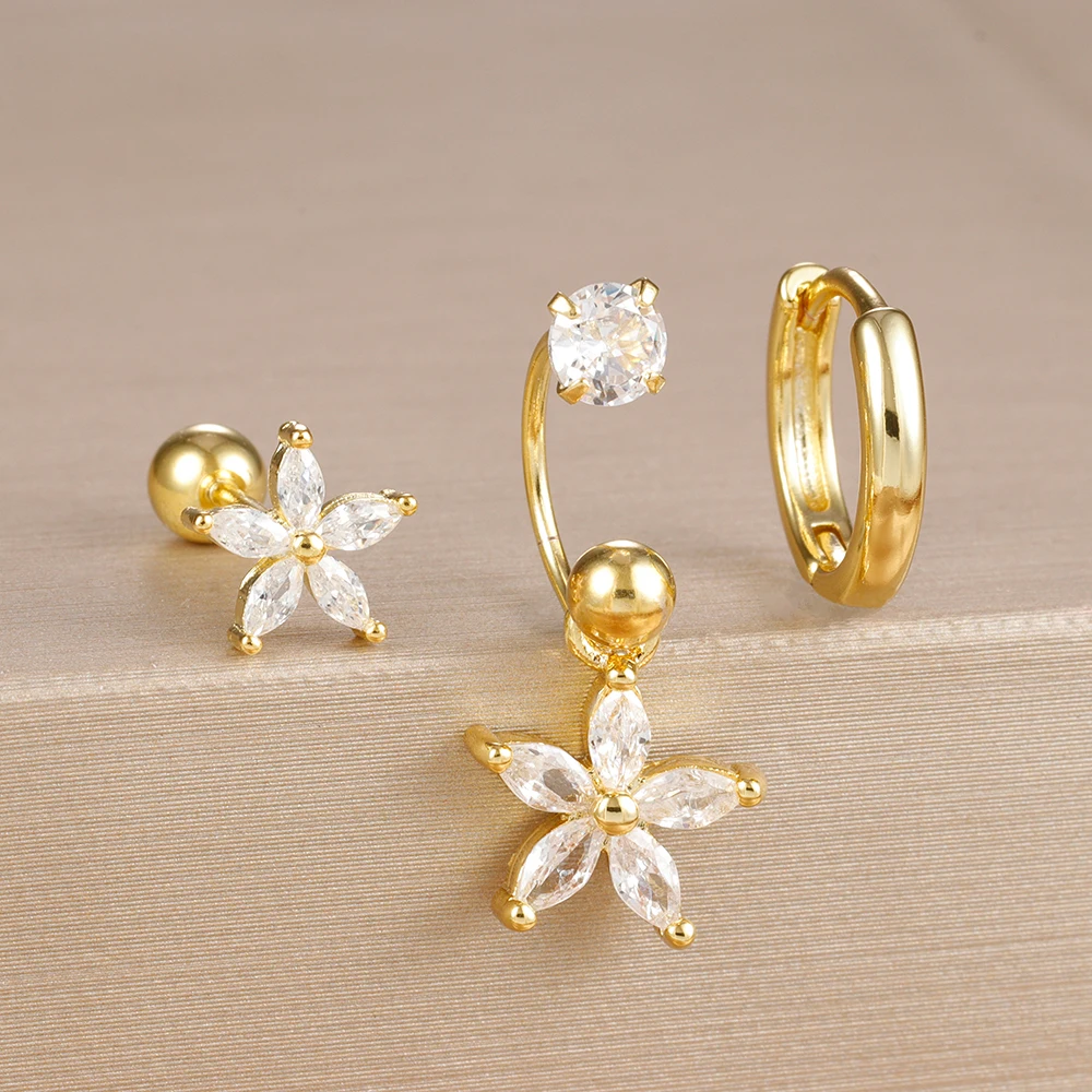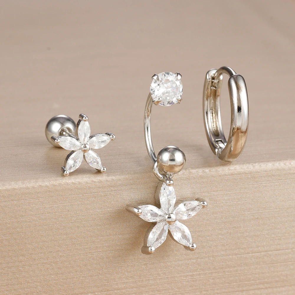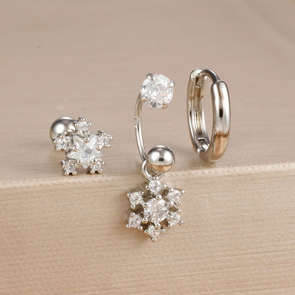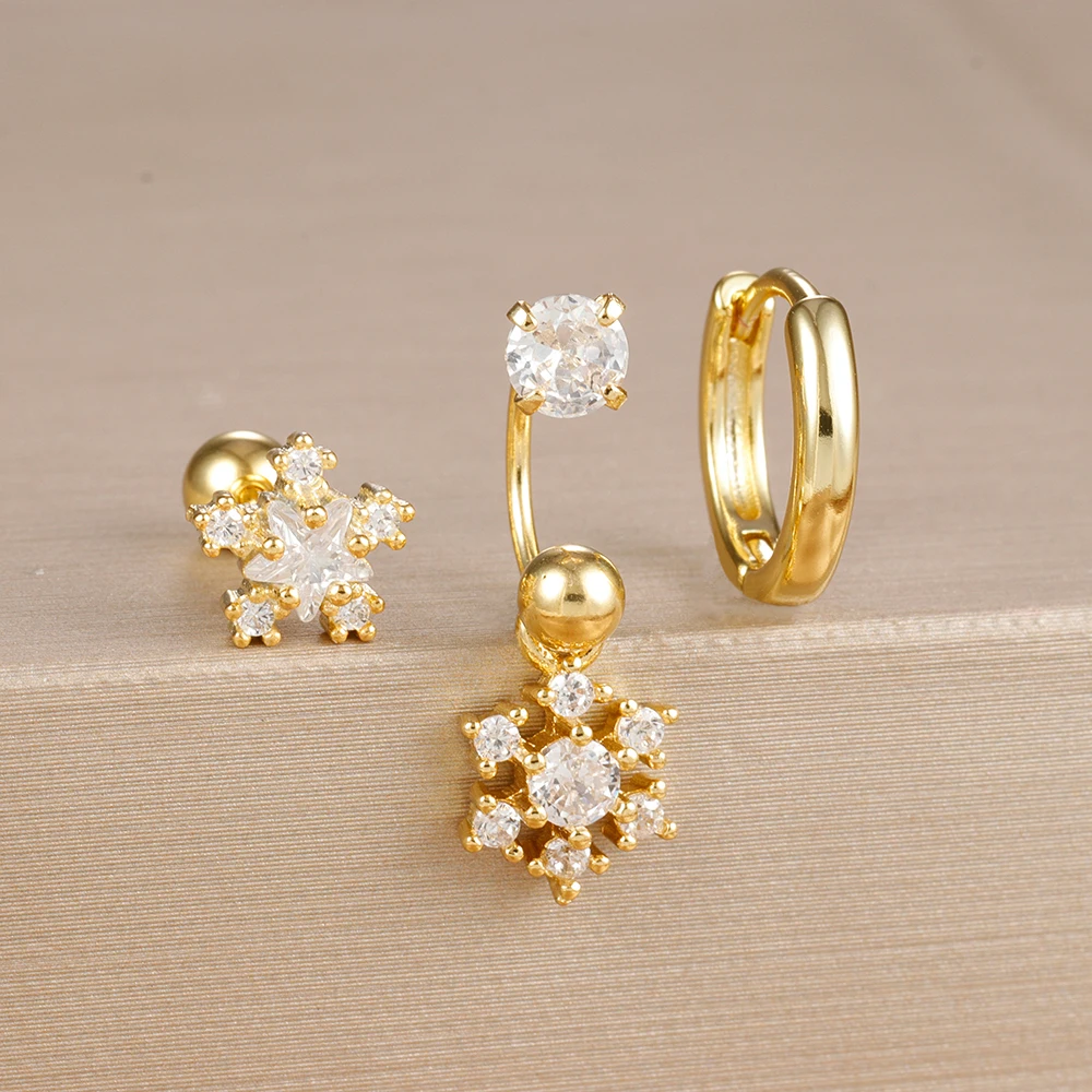 3PCS Stainless Steel Zircon Hoop Earrings Set for Women Tragus Helix Cartilage Earring Conch Rook Daith Lobe Piercing Jewelry