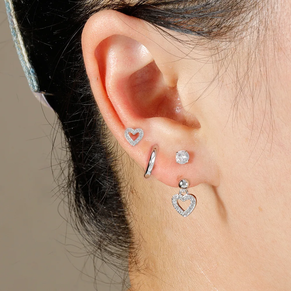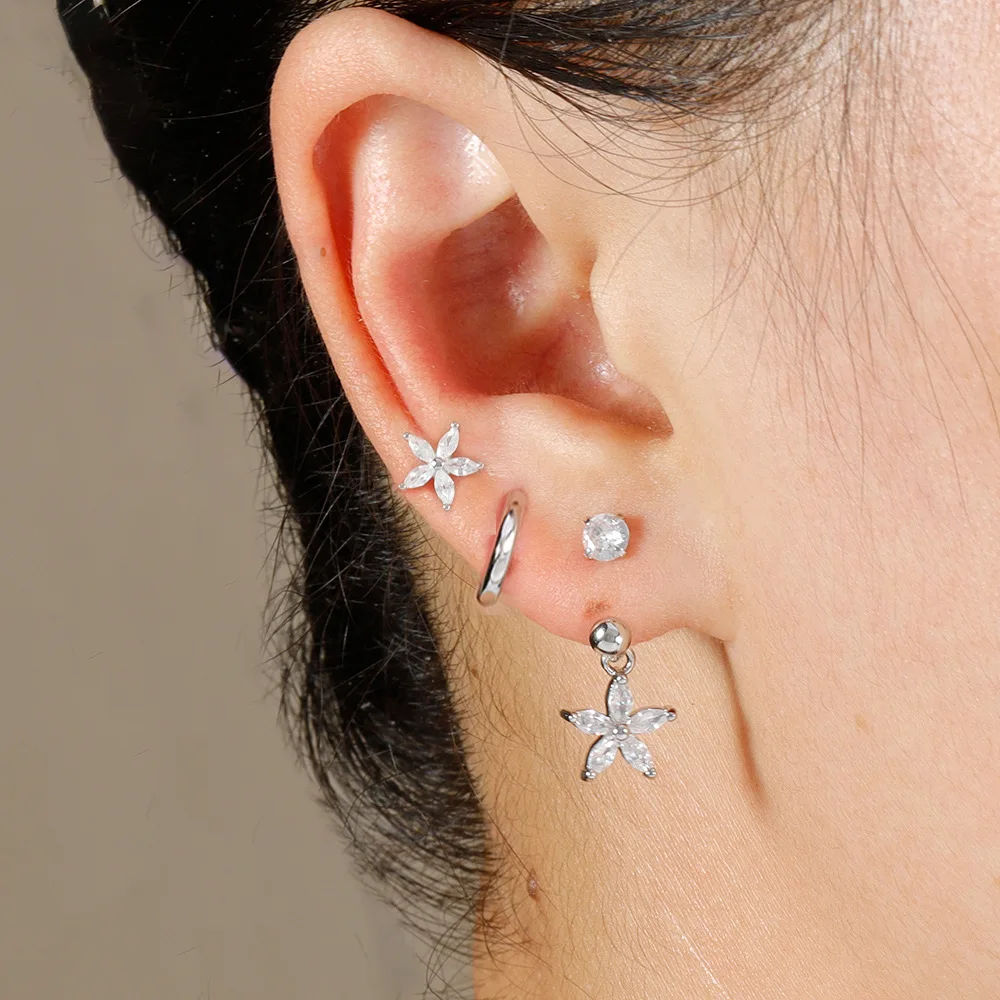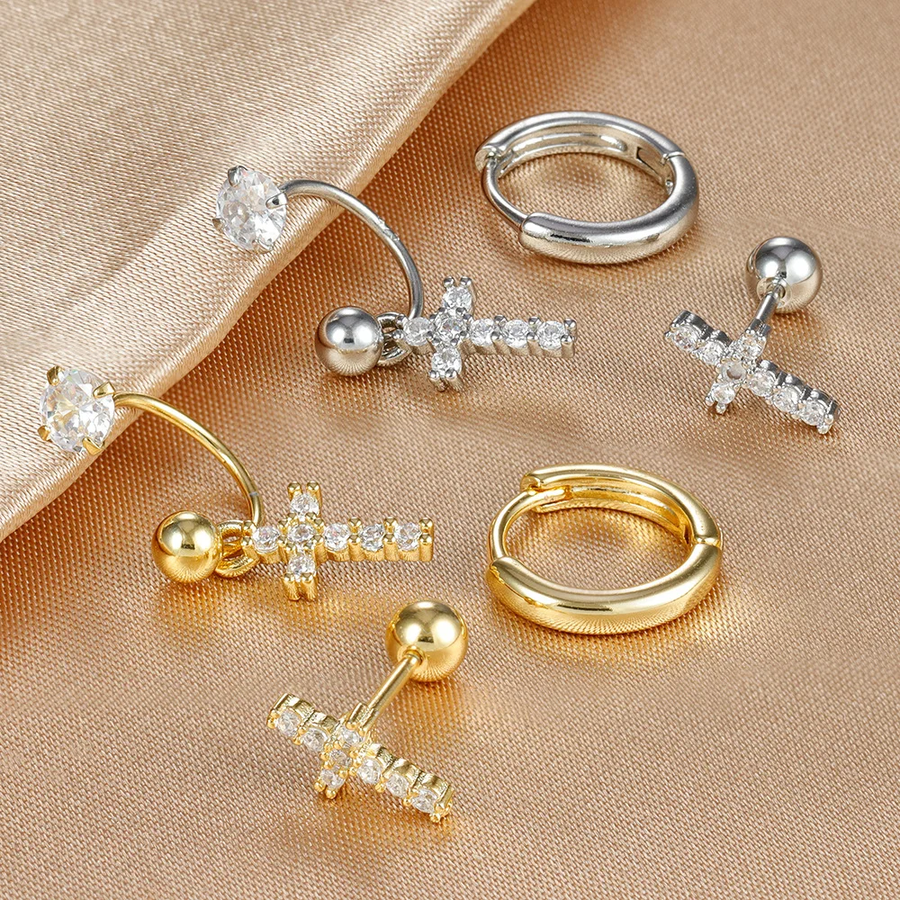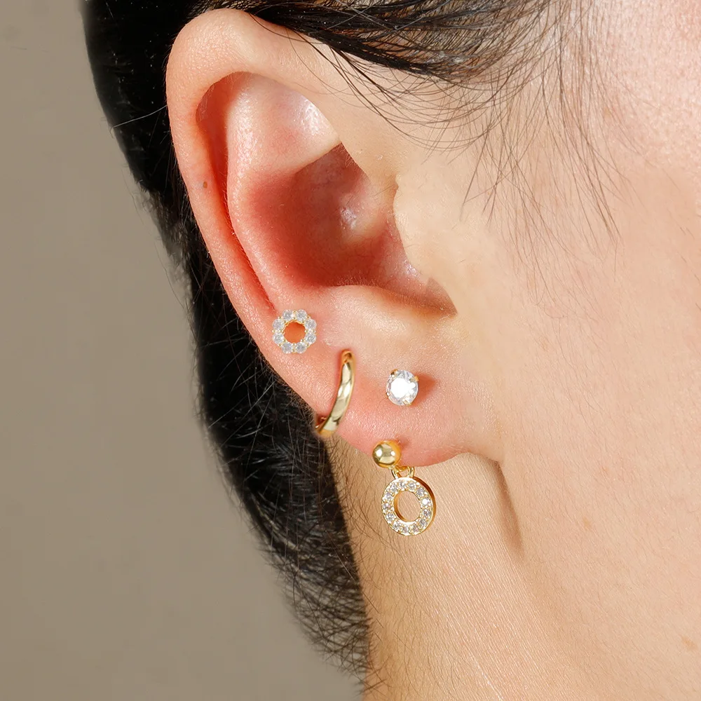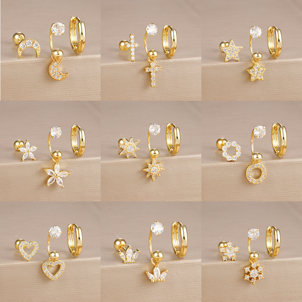 3PCS Stainless Steel Zircon Hoop Earrings Set for Women Tragus Helix Cartilage Earring Conch Rook Daith Lobe Piercing Jewelry