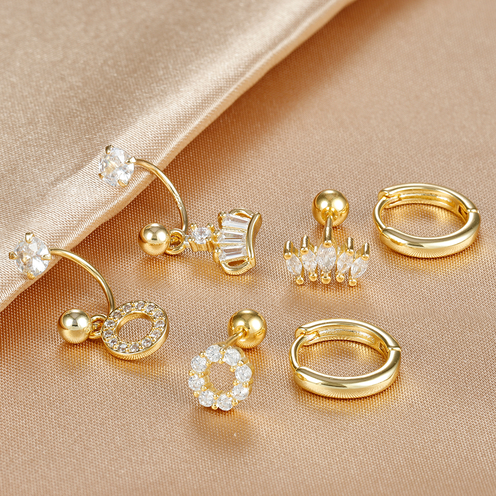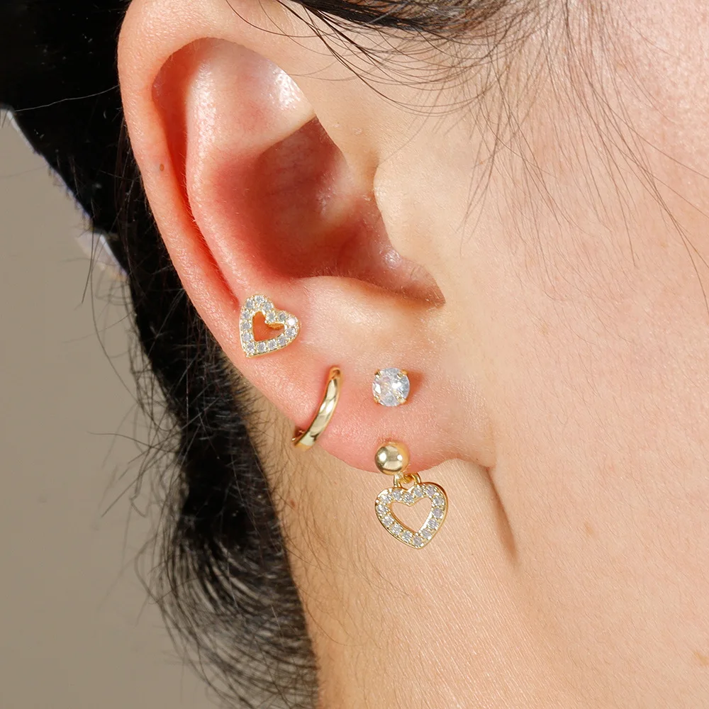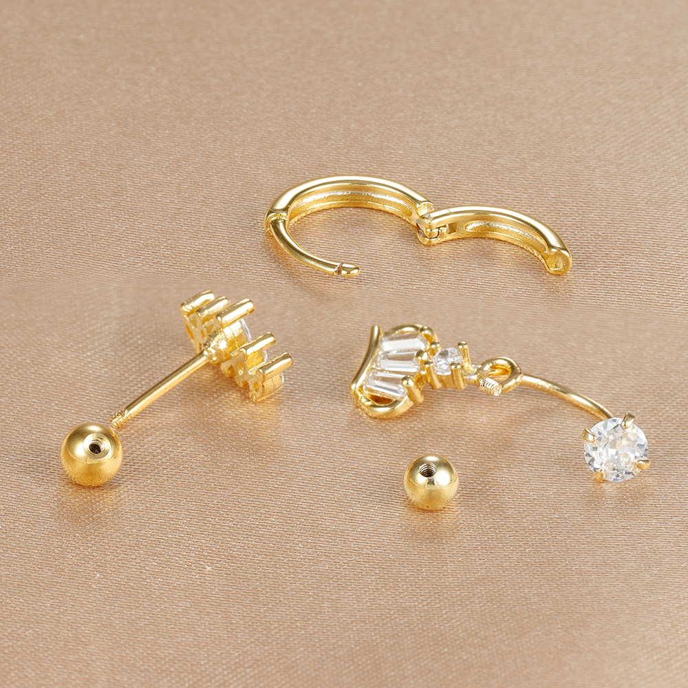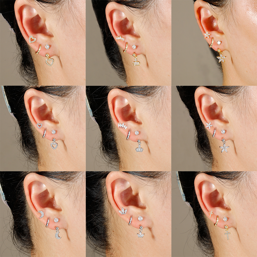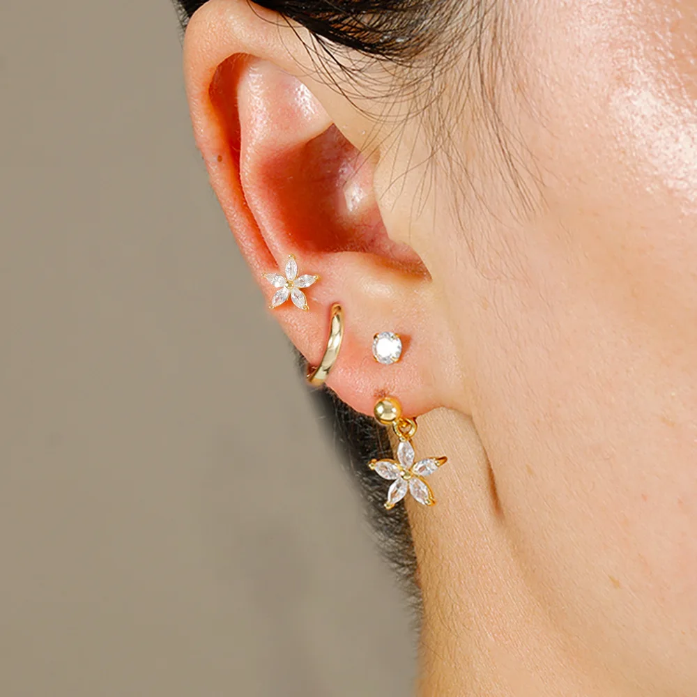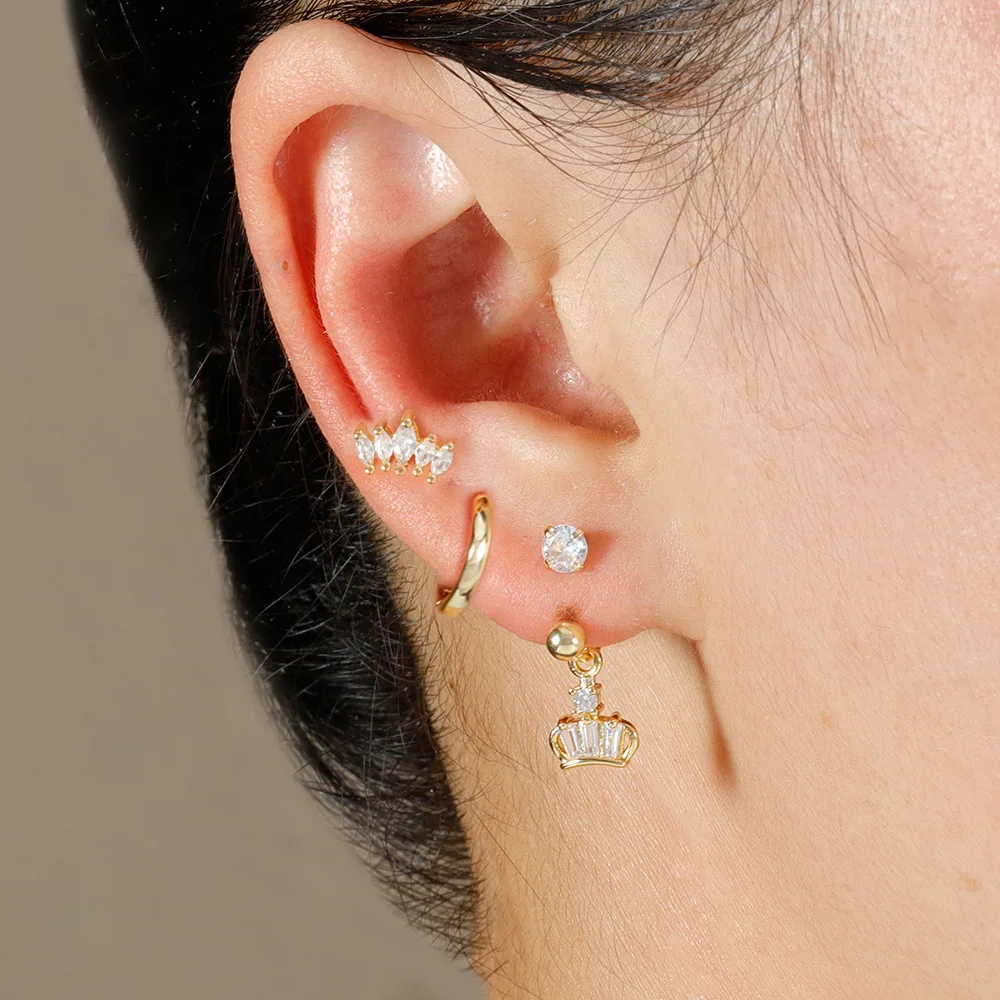 3PCS Stainless Steel Zircon Hoop Earrings Set for Women Tragus Helix Cartilage Earring Conch Rook Daith Lobe Piercing Jewelry