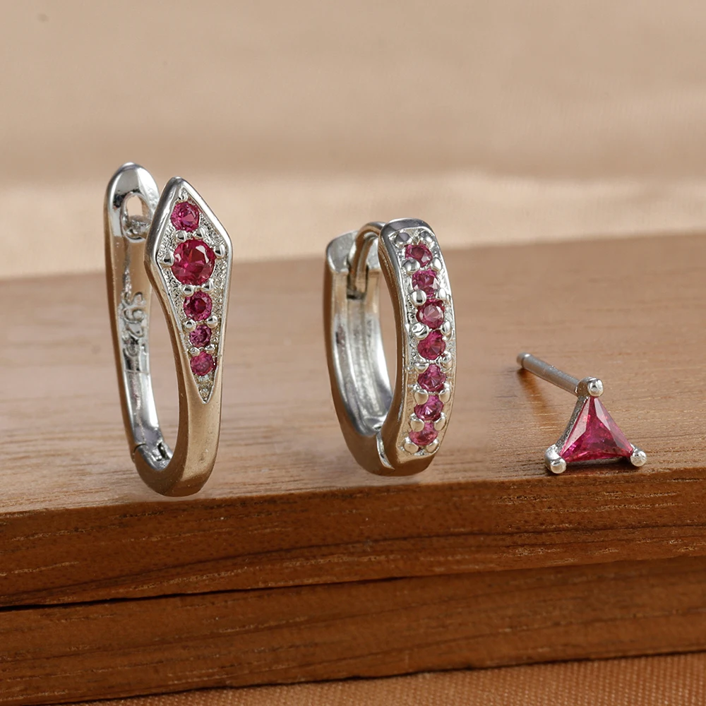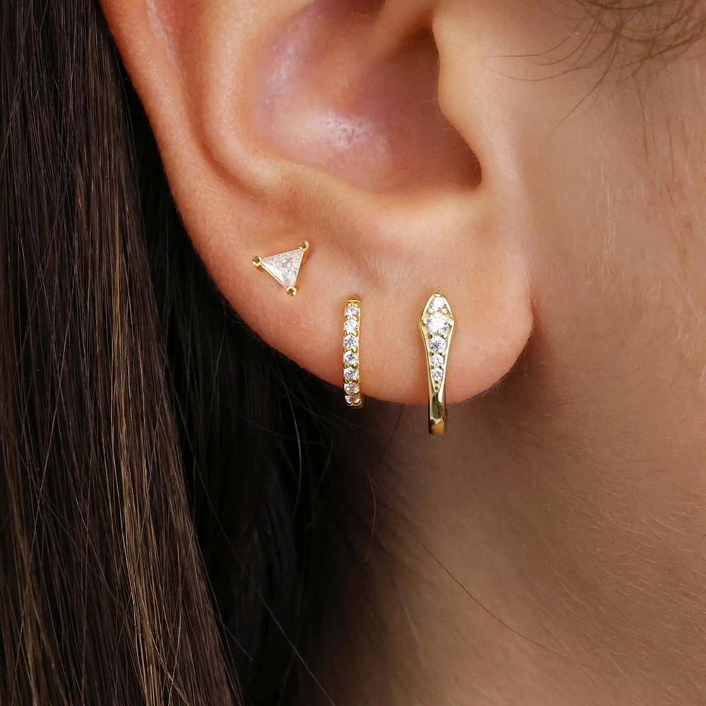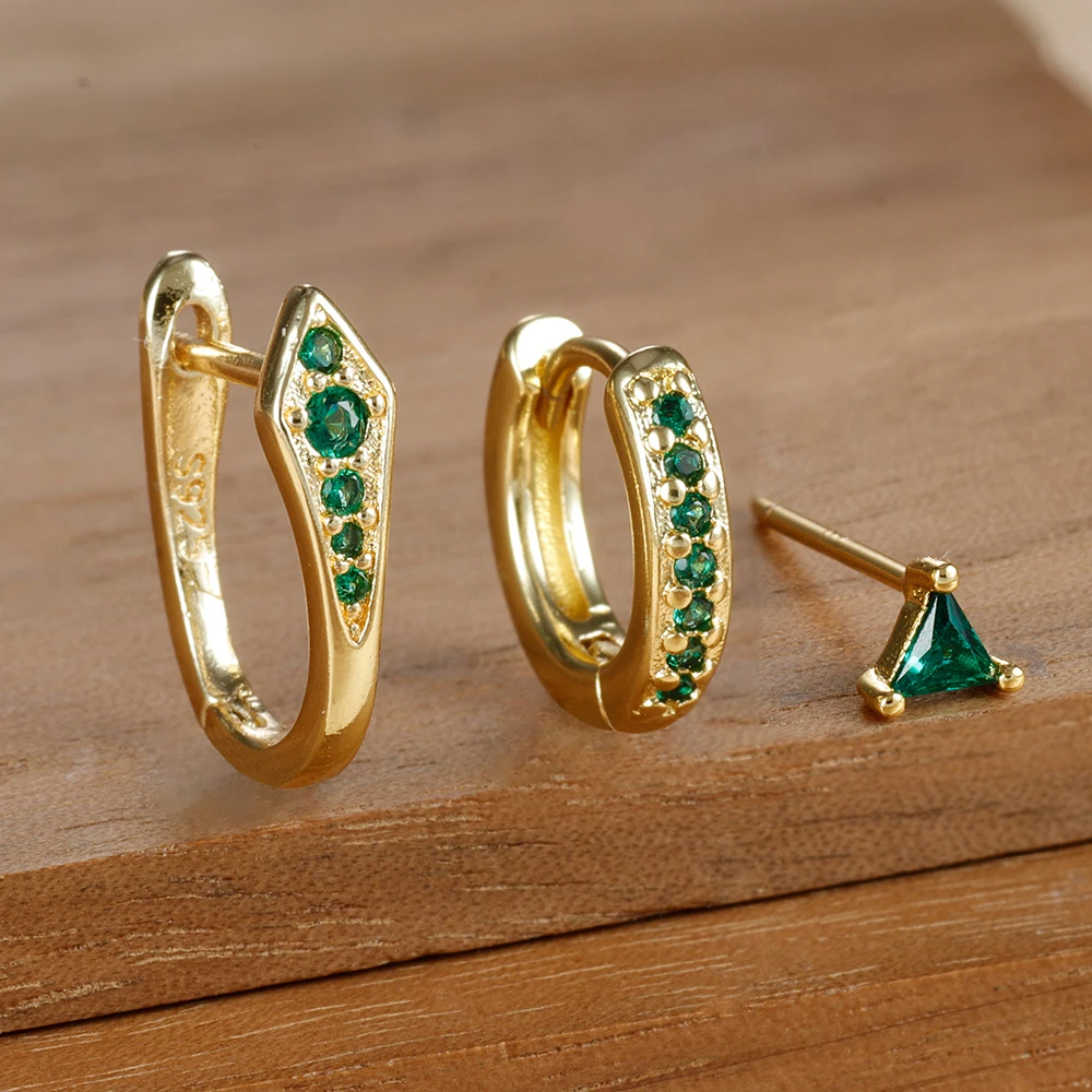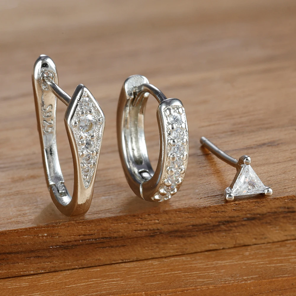 3PCS Trendy Cubic Zirconia Triangle Huggie Earrings Set for Women Stainless Steel Creative U-shape Hoop Earring Piercing Jewelry