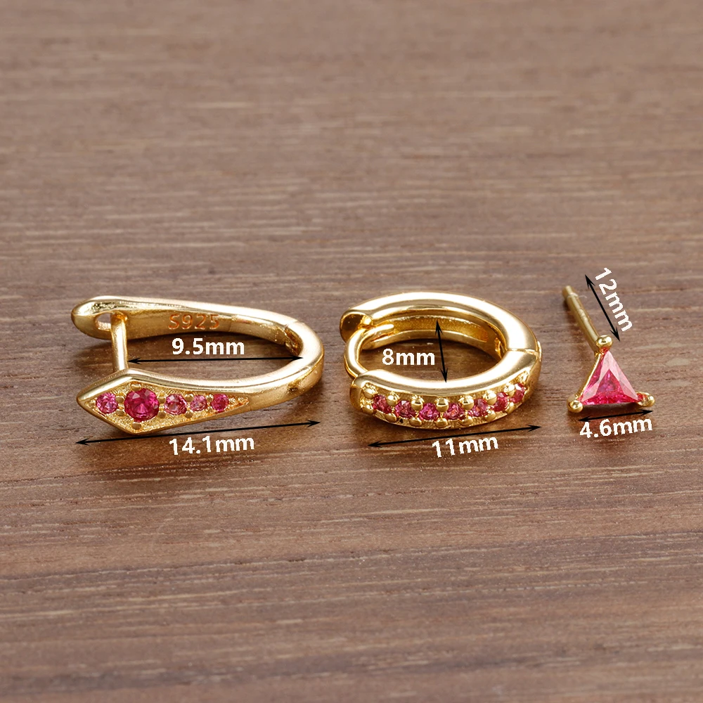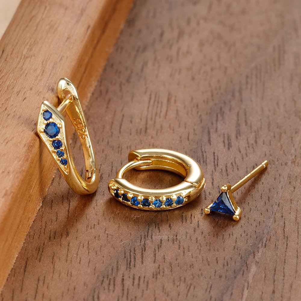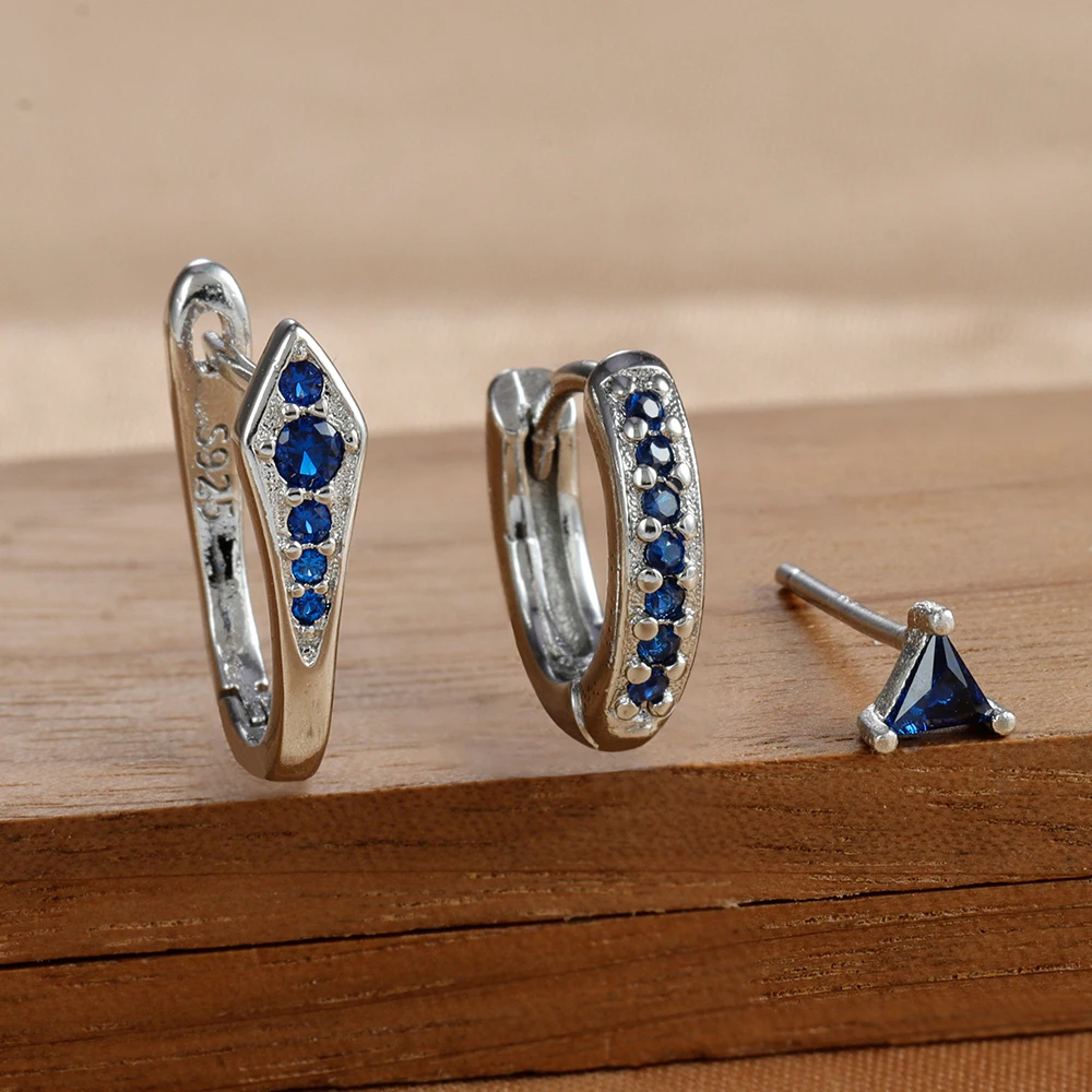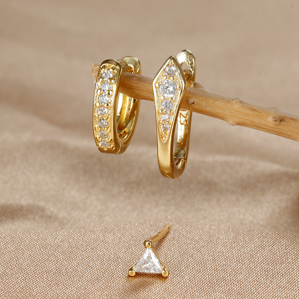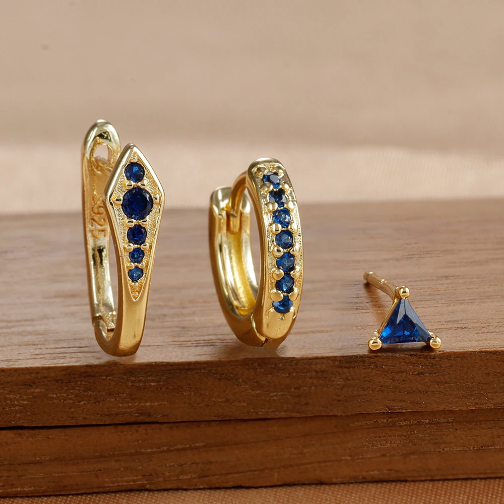 3PCS Trendy Cubic Zirconia Triangle Huggie Earrings Set for Women Stainless Steel Creative U-shape Hoop Earring Piercing Jewelry
