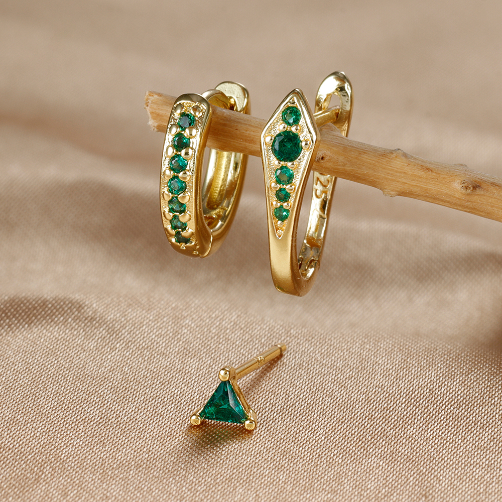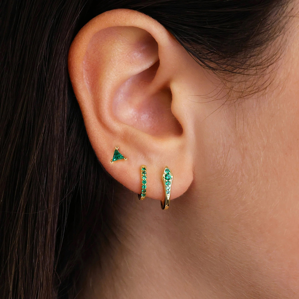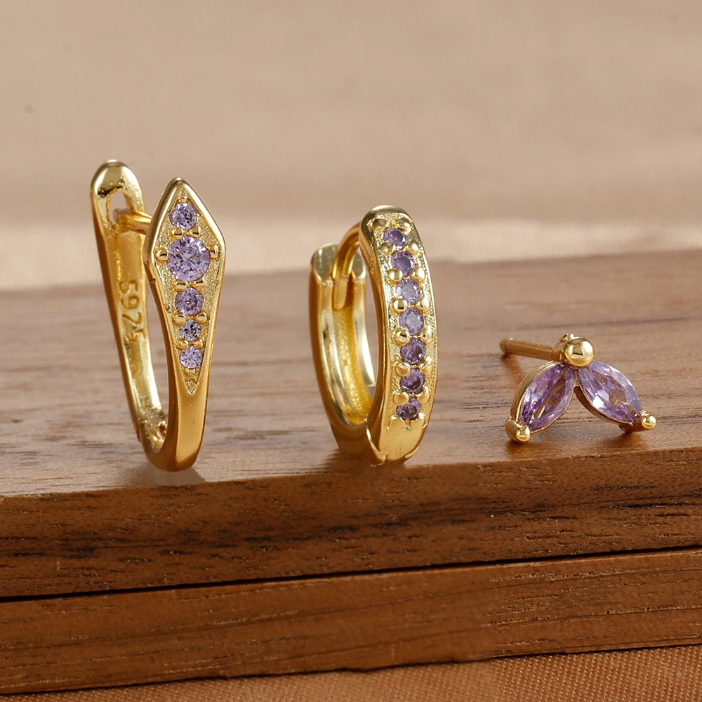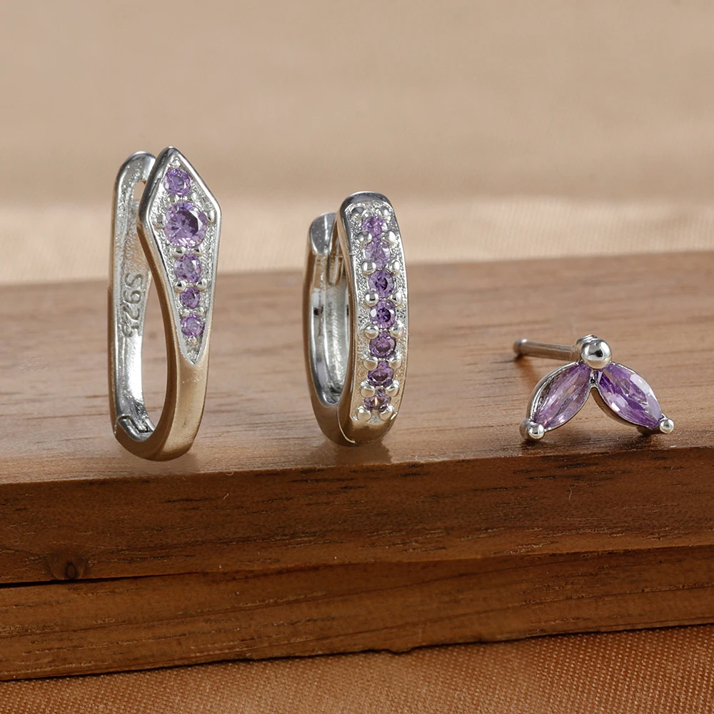 3PCS Trendy Cubic Zirconia Triangle Huggie Earrings Set for Women Stainless Steel Creative U-shape Hoop Earring Piercing Jewelry