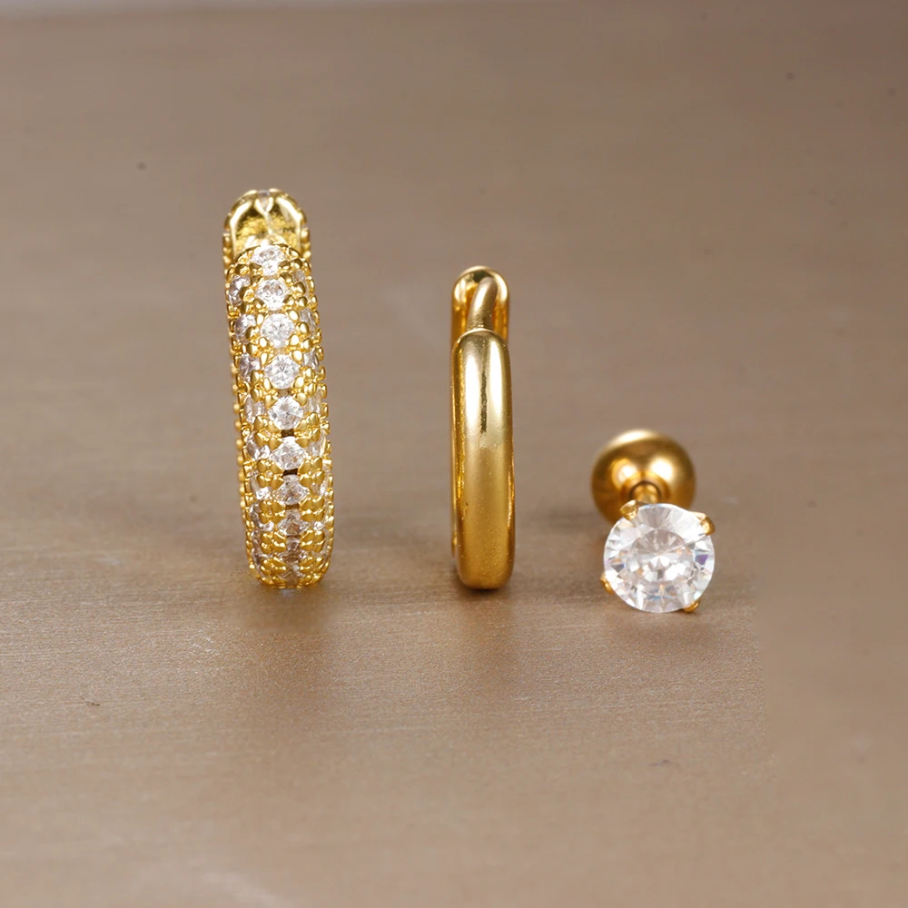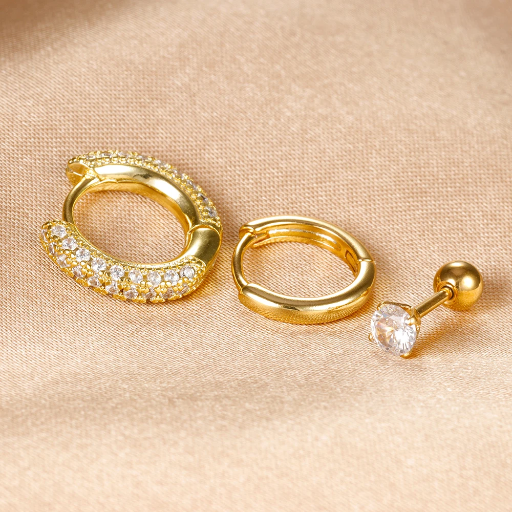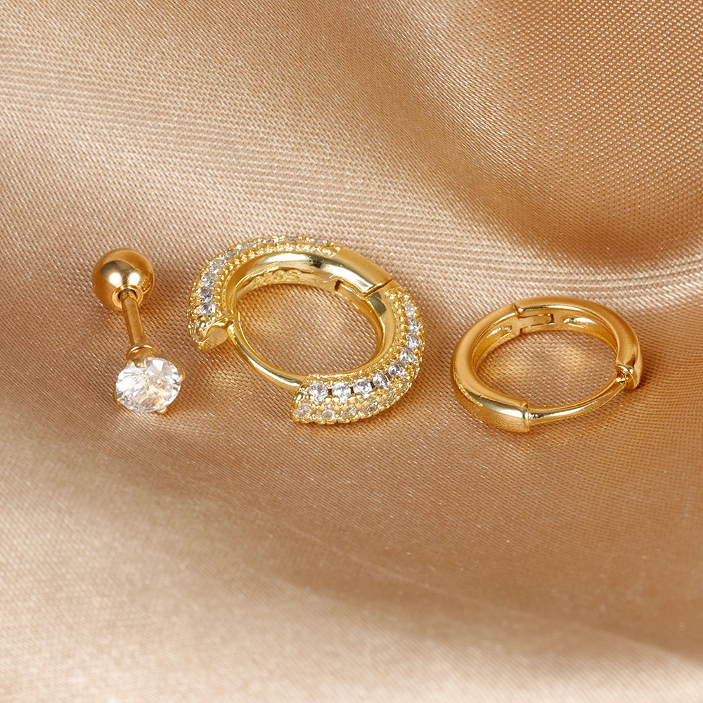 3PCS Trendy Round Circle Hoop Earrings Set for Women Tiny Stainless Steel Cartilage Piercing Earring Jewelry aretes de mujer