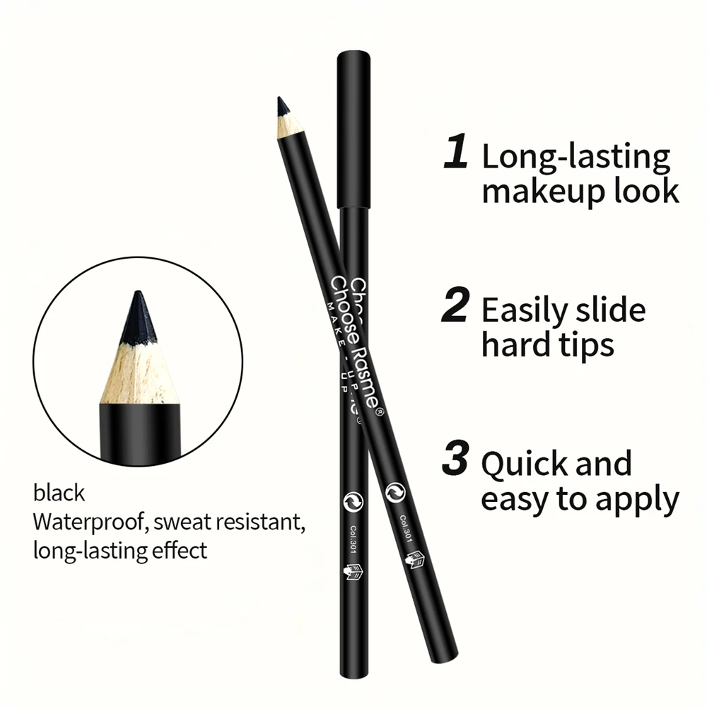 3pcs Waterproof Black Eyeliner Pencils-Smudge-Proof Long-Lasting &Beginner-Friendly Wooden Eyebrow Liner Pen Makeup Combined