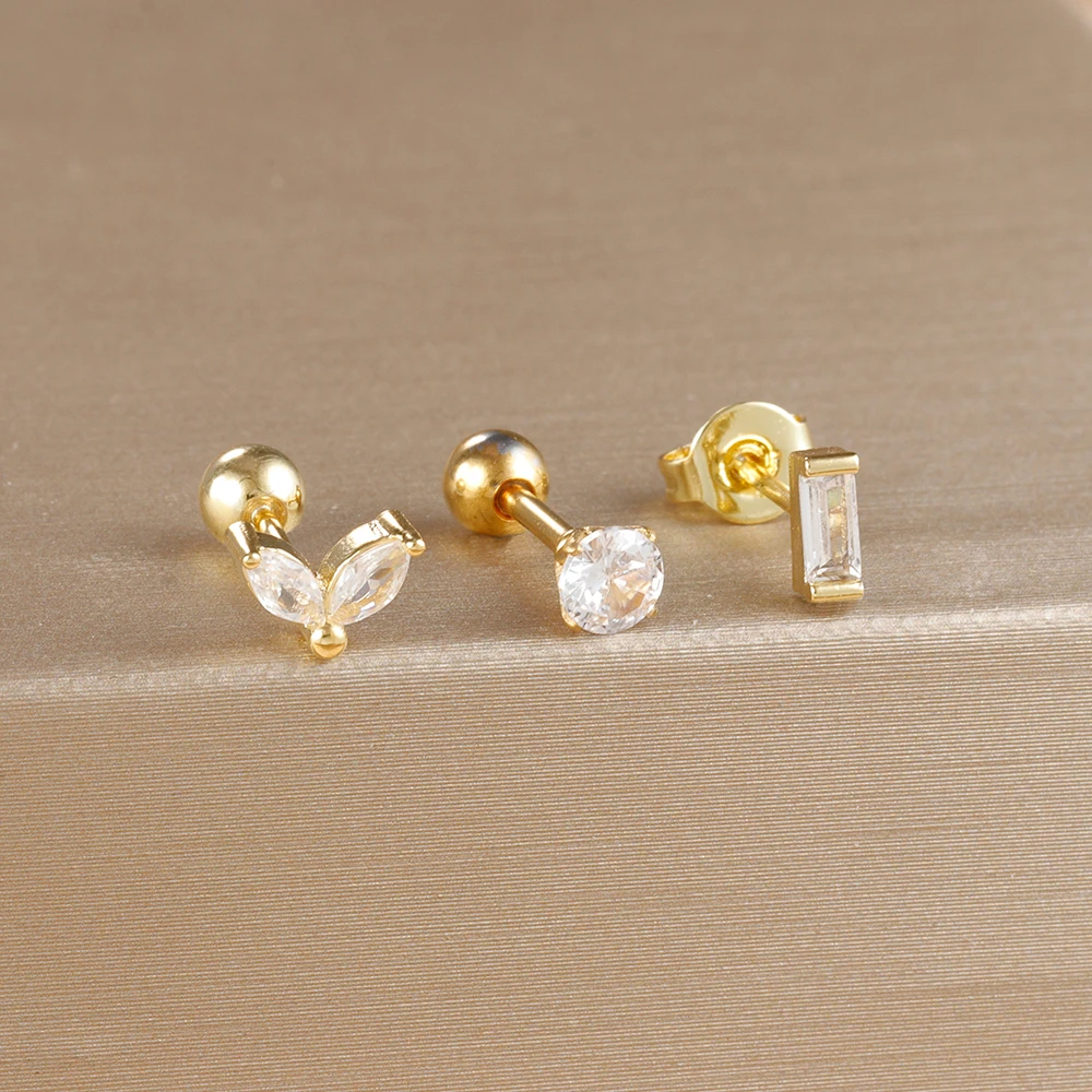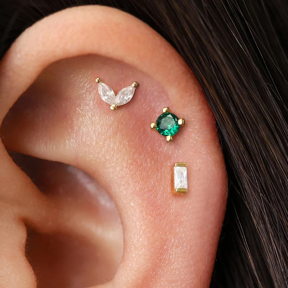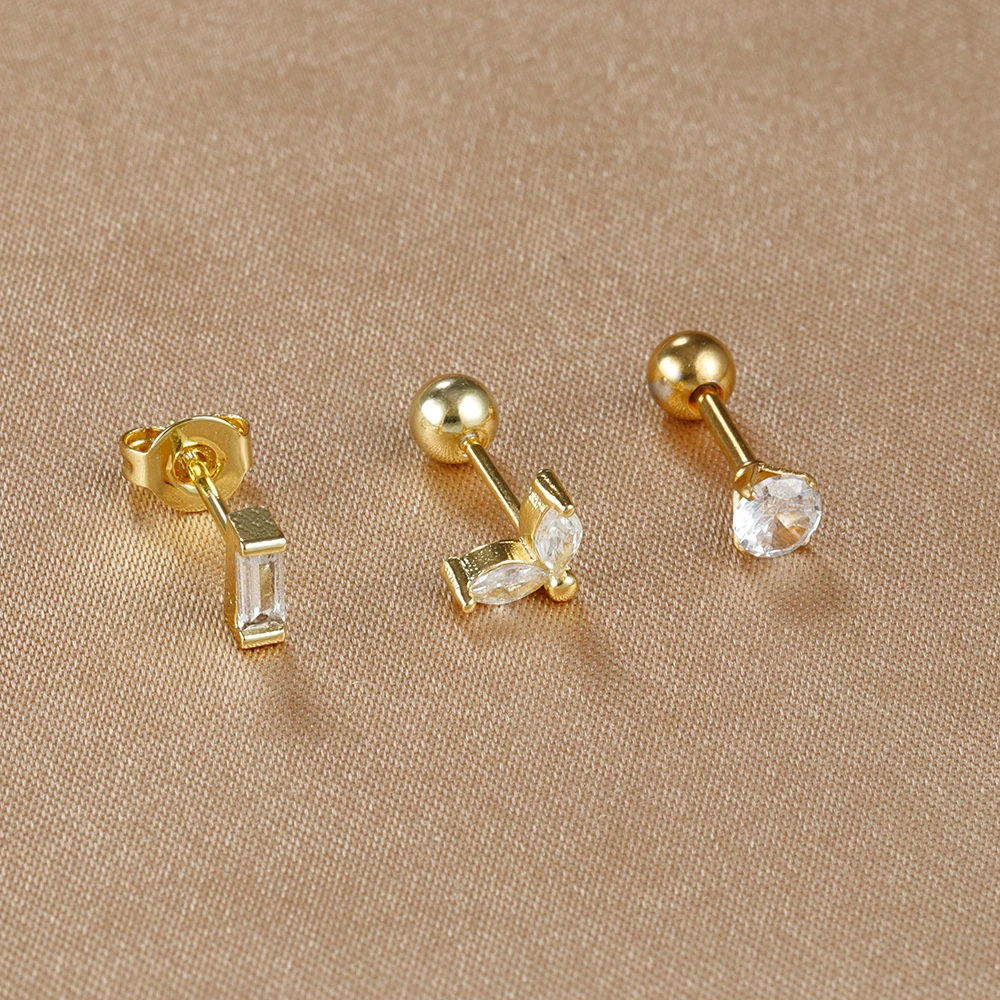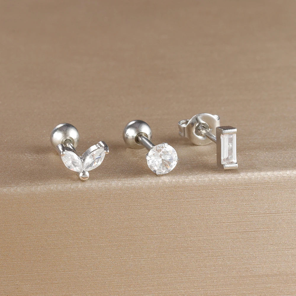3Pieces 0.8mm Square Round Zircon Earrings Set for Stainless Steel Conch Rook Tragus Stud Hypoallergen CartilagePiercing Jewelry