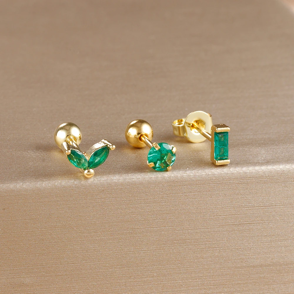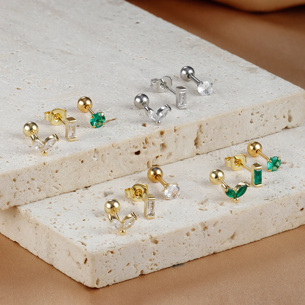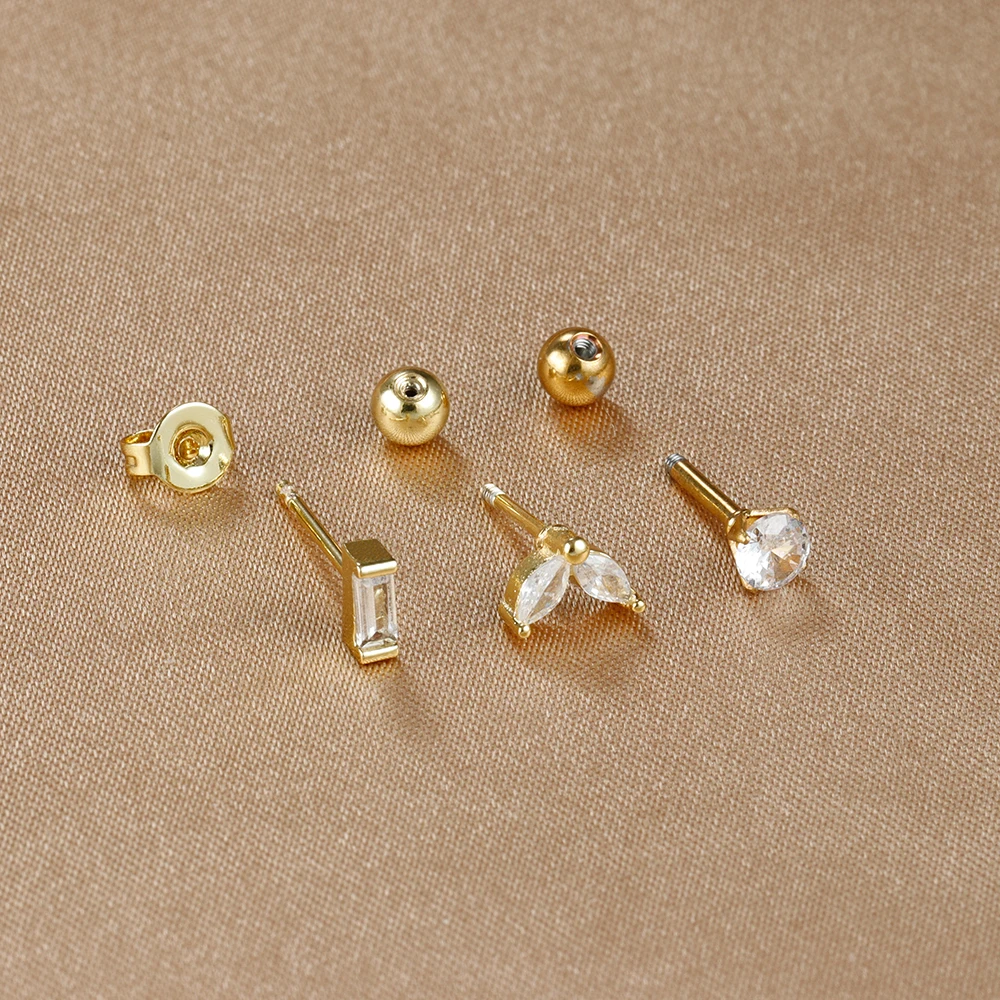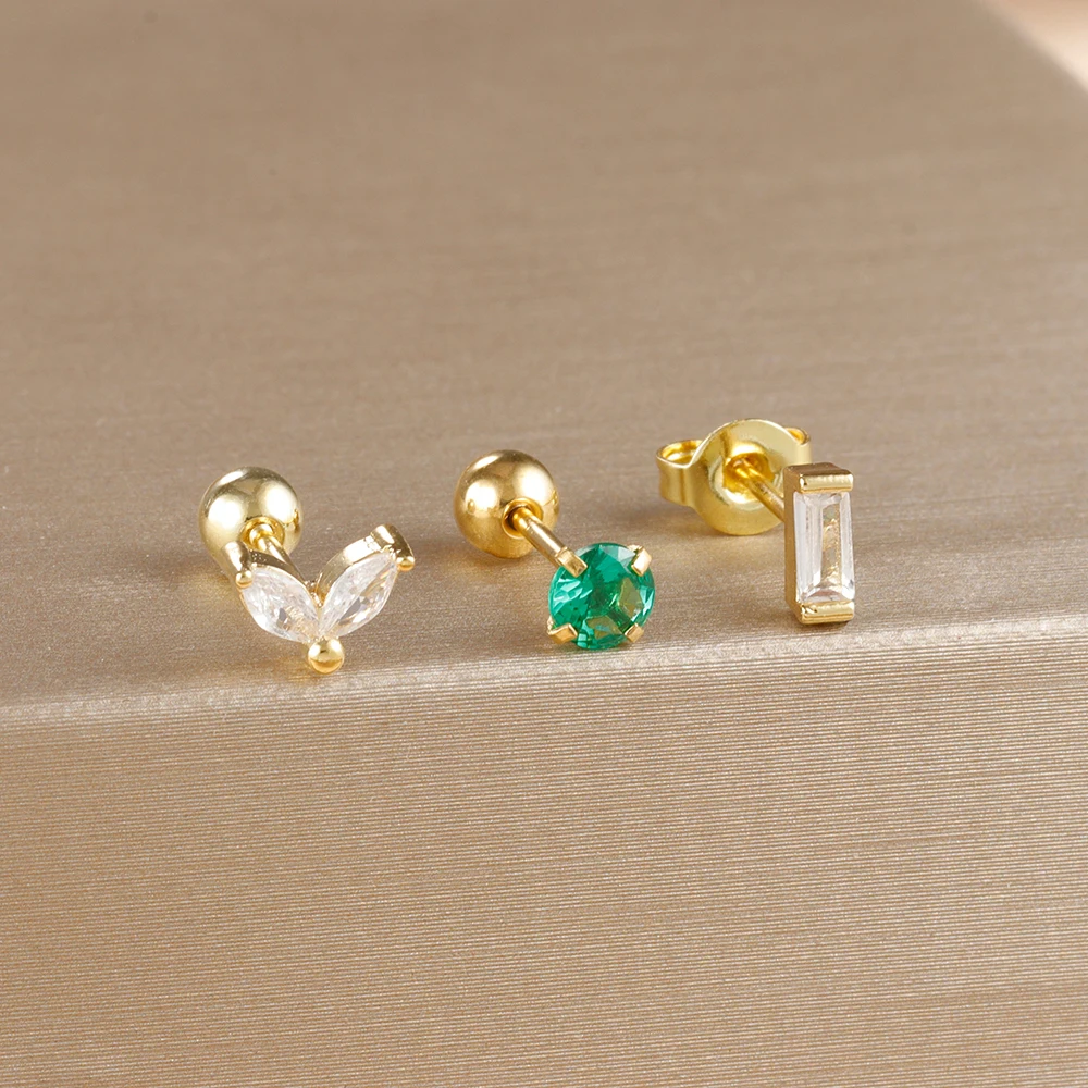 3Pieces 0.8mm Square Round Zircon Earrings Set for Stainless Steel Conch Rook Tragus Stud Hypoallergen CartilagePiercing Jewelry
