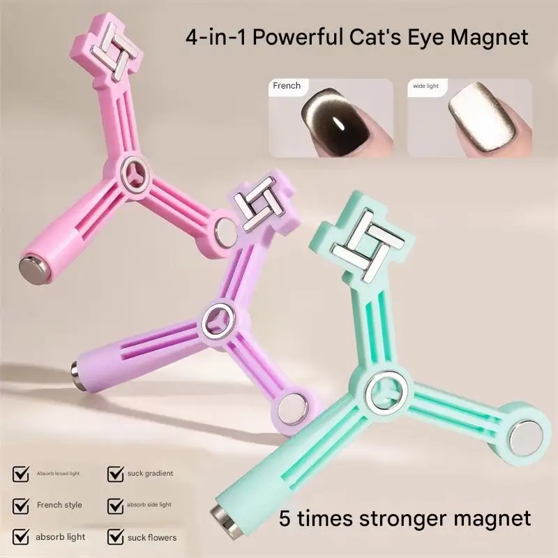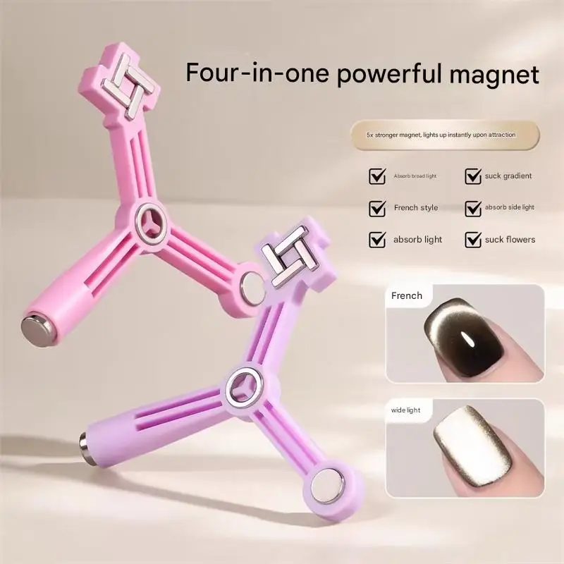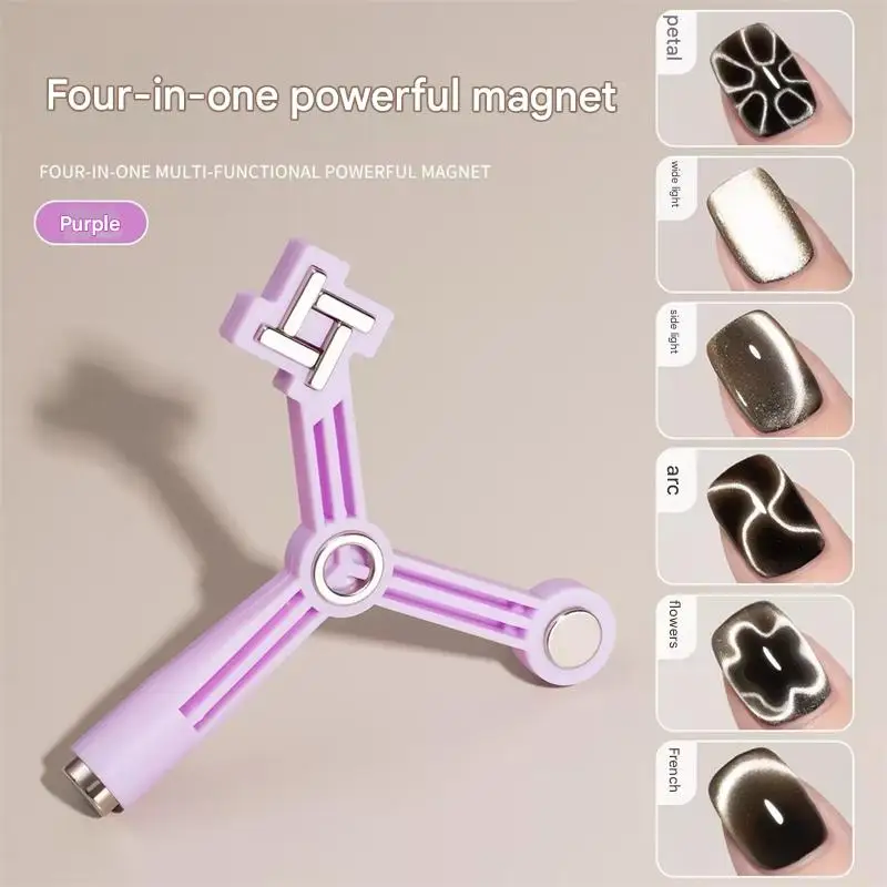 4-in-1 Cat Eye Nail Magnet Windmill Cylindrical Strong Magnetic Tip for Flower Side Light Shape Gel Nail Polish Manicure Tool