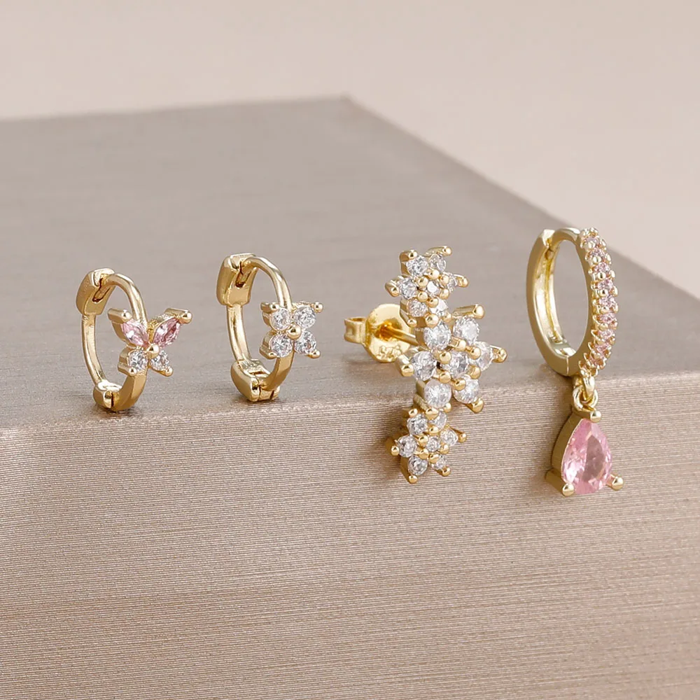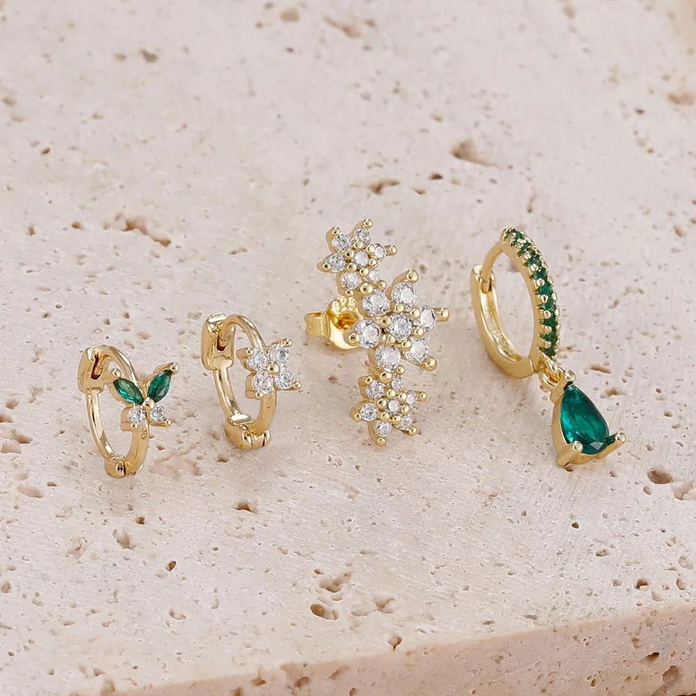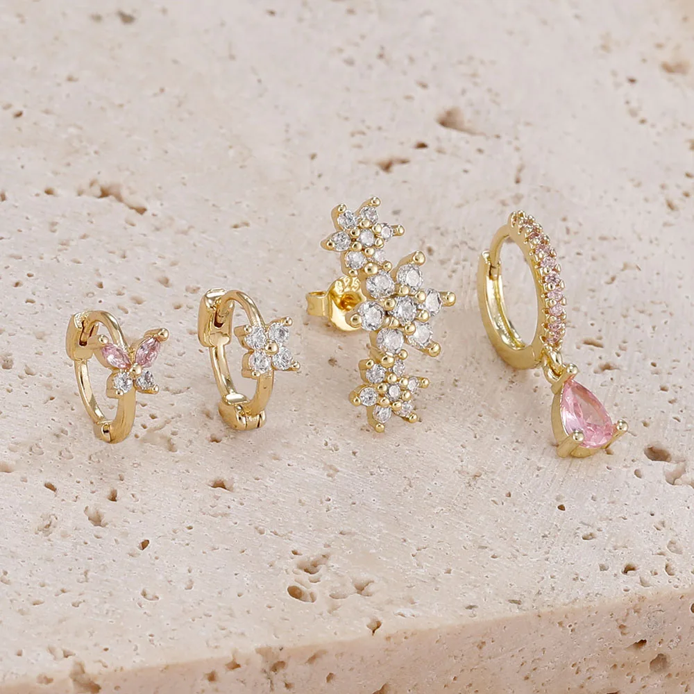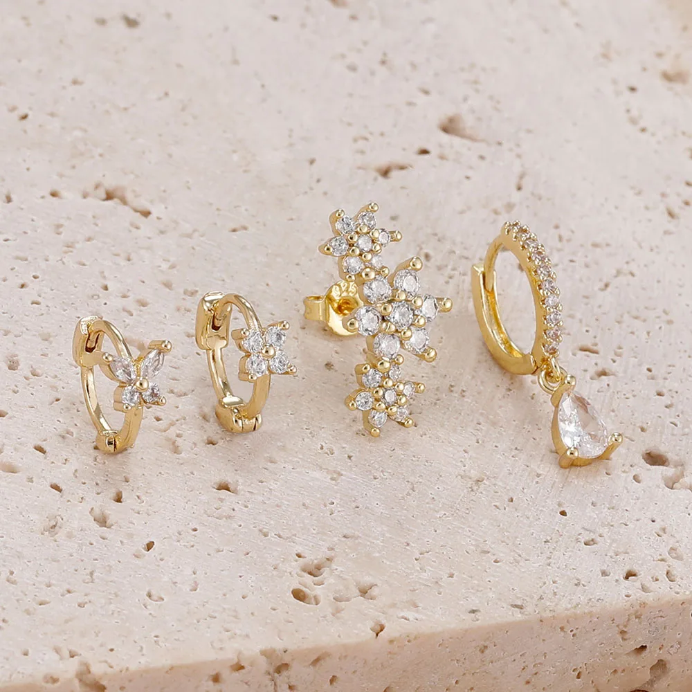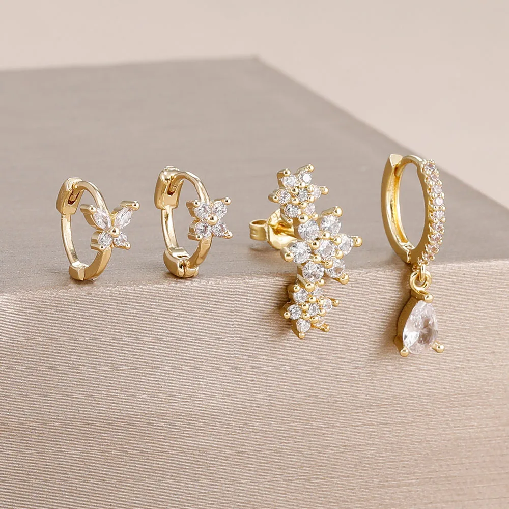 4 Pieces New 14K Gold Plated Piercing Ear Hoop Earrings Set for Women Little Shining Zircon Butterfly Earring Daily Wear Jewelry