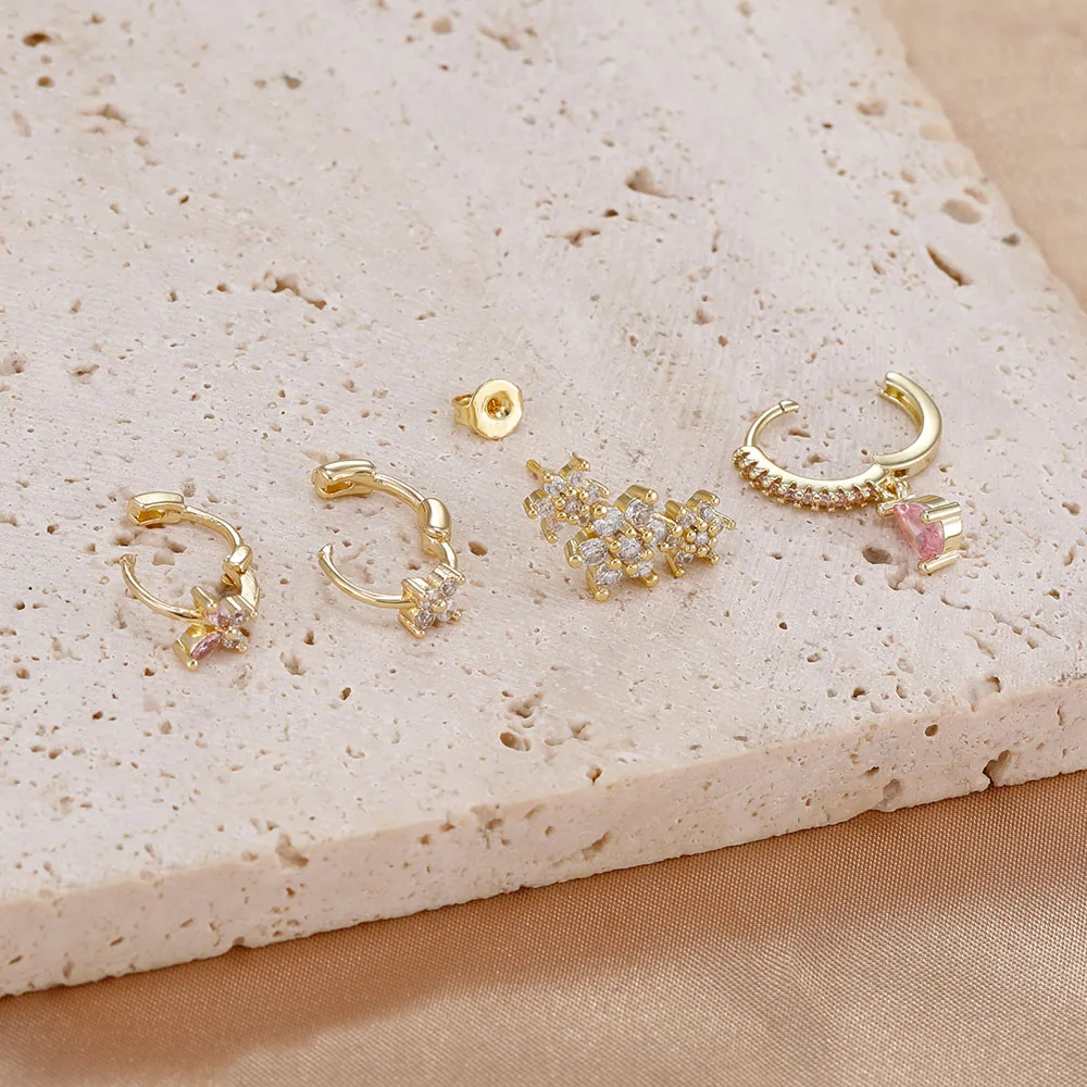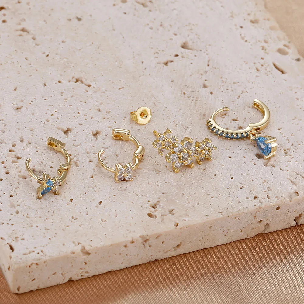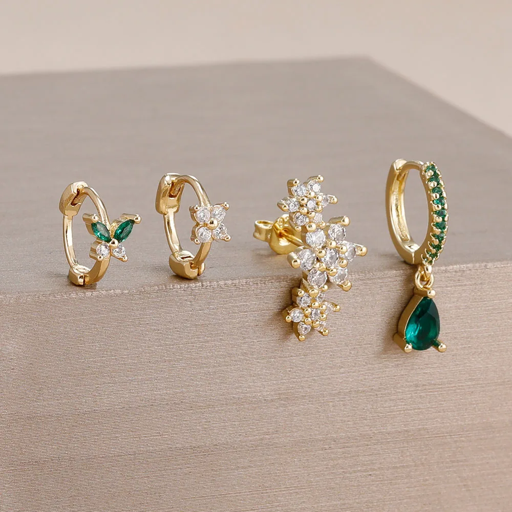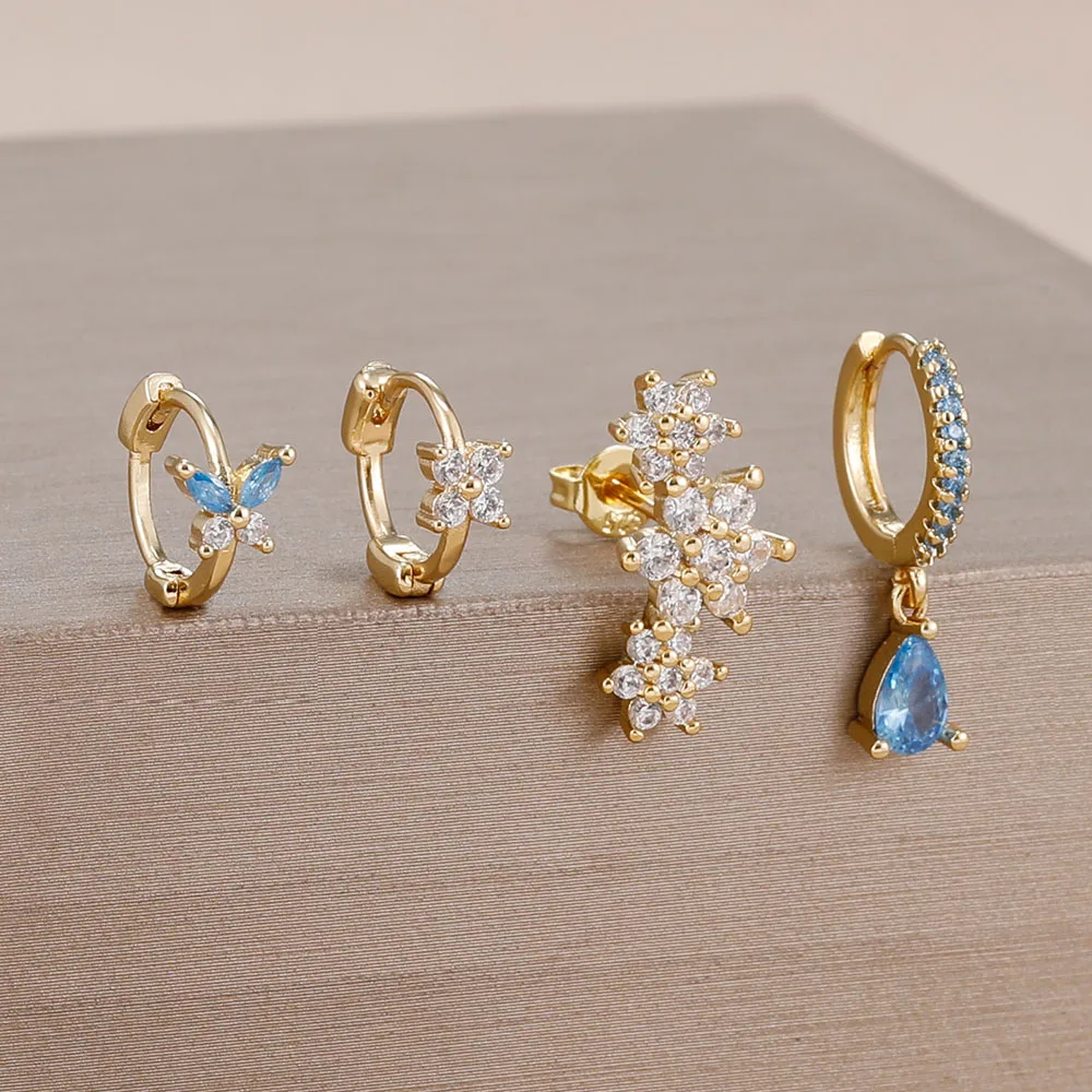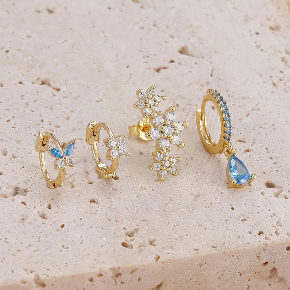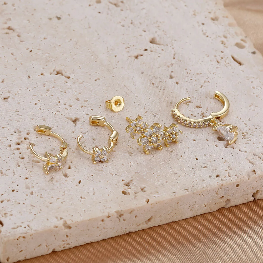 4 Pieces New 14K Gold Plated Piercing Ear Hoop Earrings Set for Women Little Shining Zircon Butterfly Earring Daily Wear Jewelry