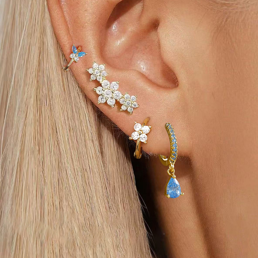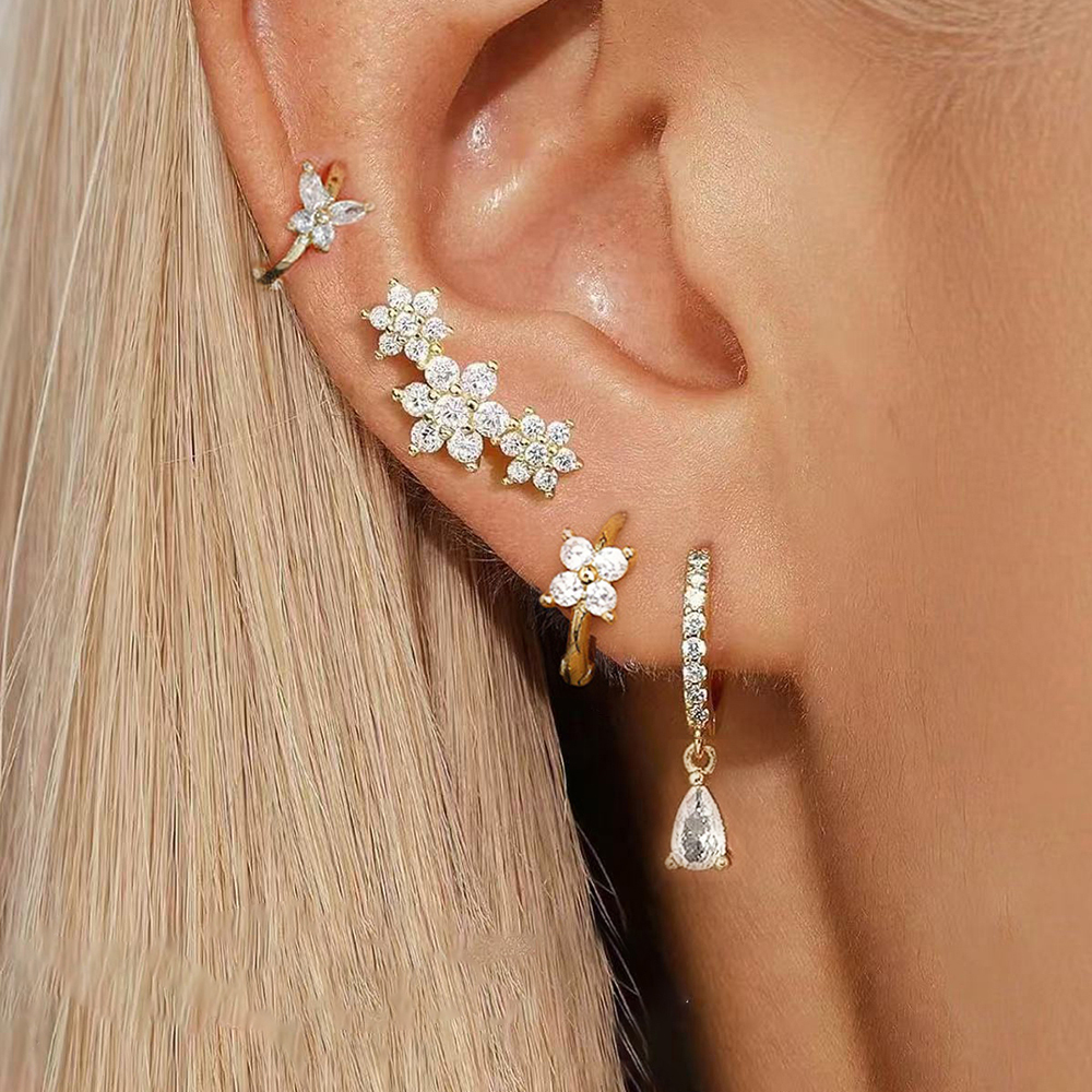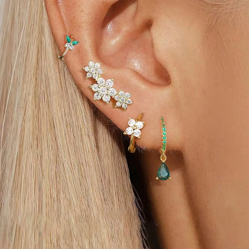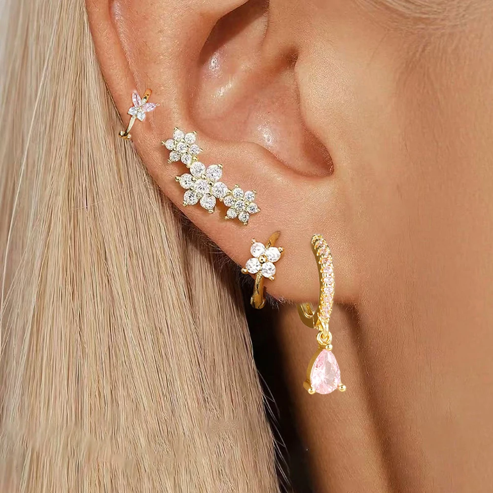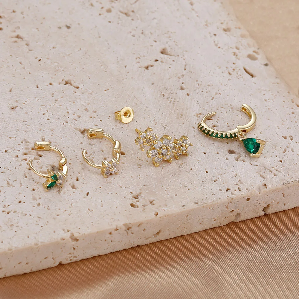 4 Pieces New 14K Gold Plated Piercing Ear Hoop Earrings Set for Women Little Shining Zircon Butterfly Earring Daily Wear Jewelry