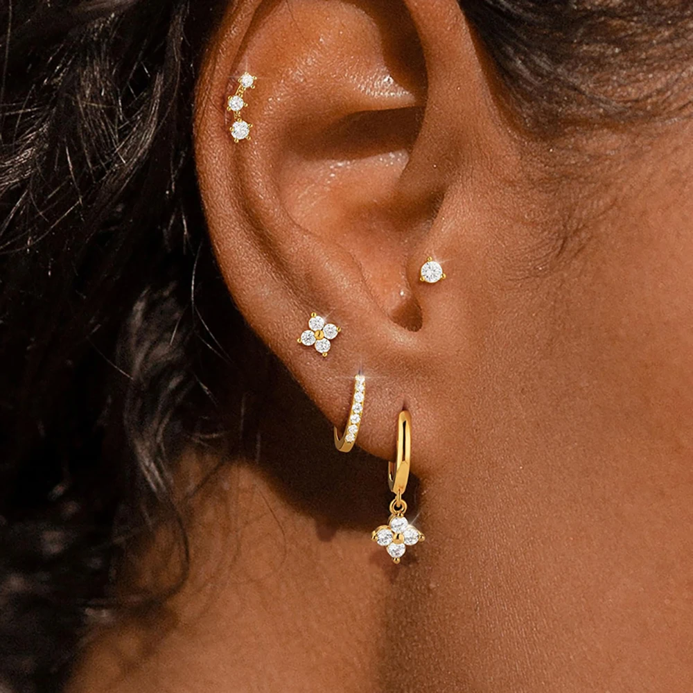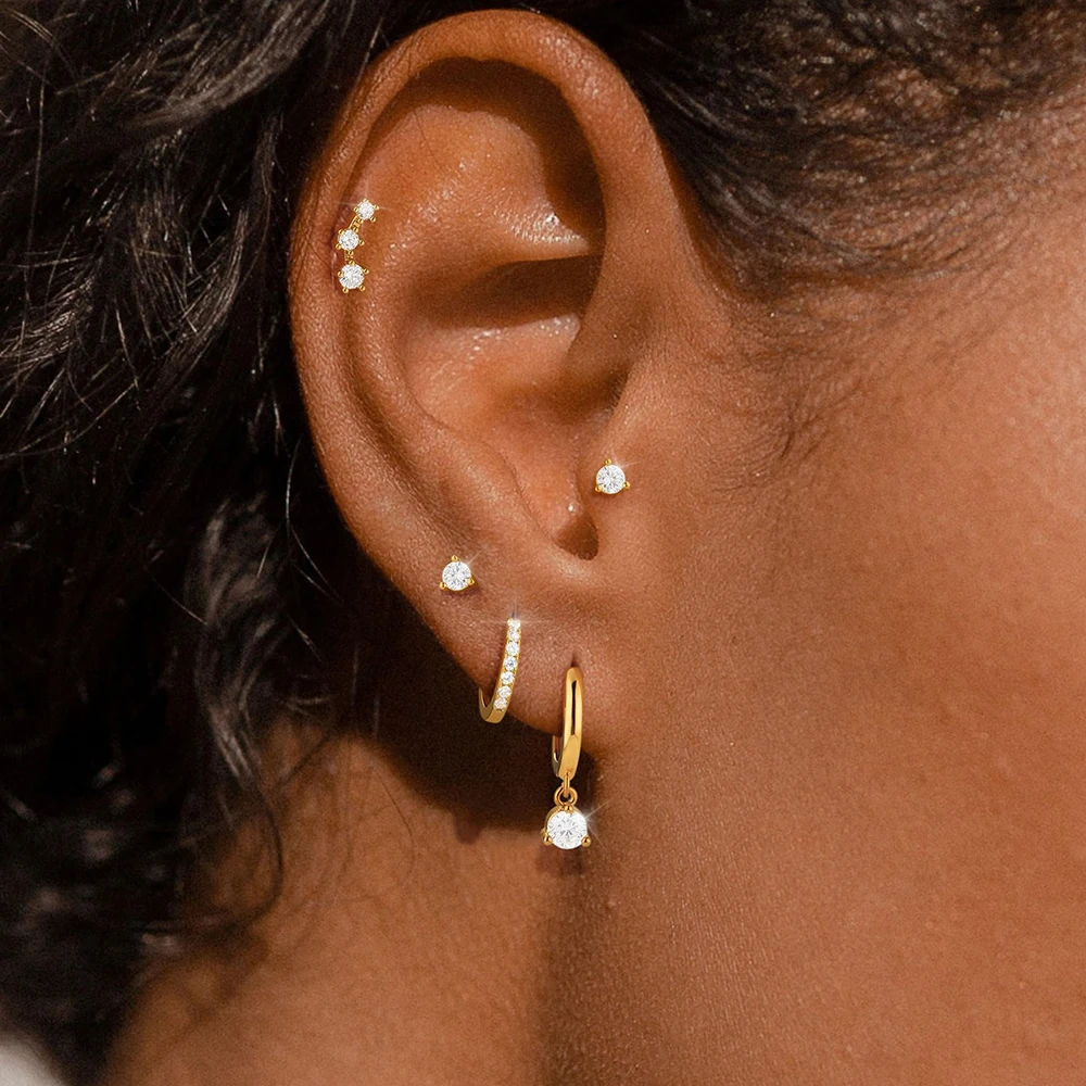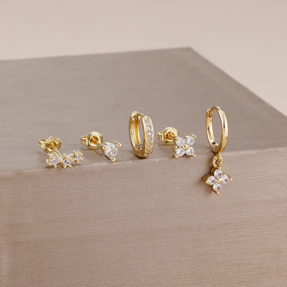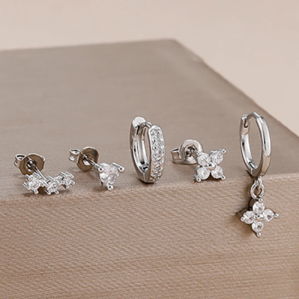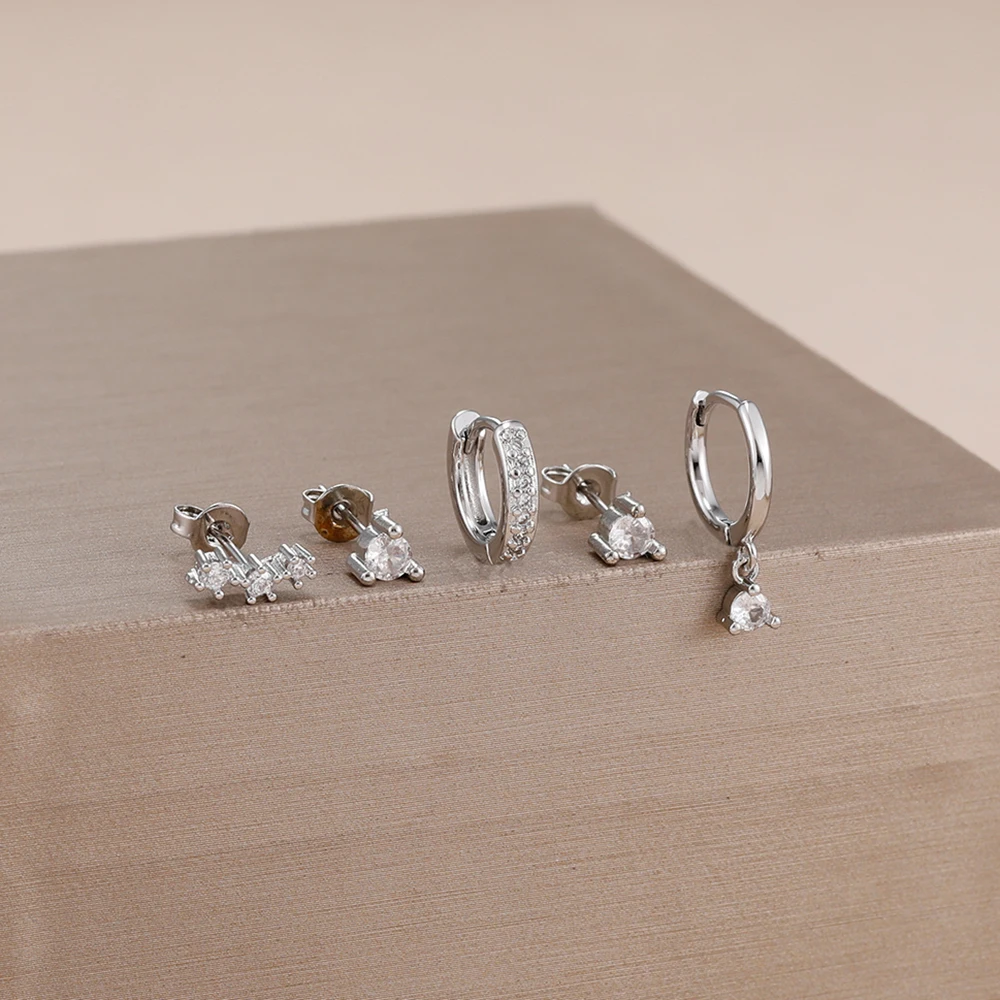 4 Style Stainless Steel Little Huggies Hoop Earrings Set For Women Tiny Crystal Zirconia Pendant Earrings Piercing Jewelry