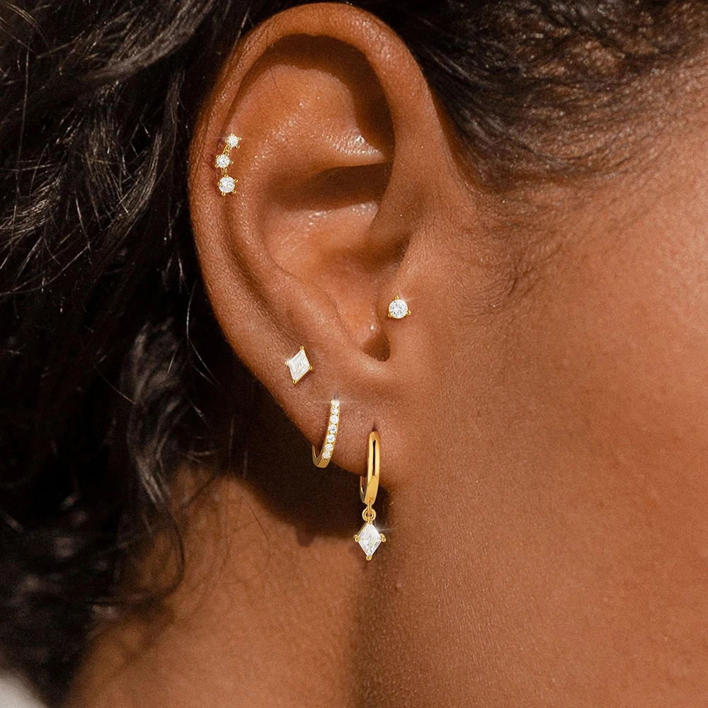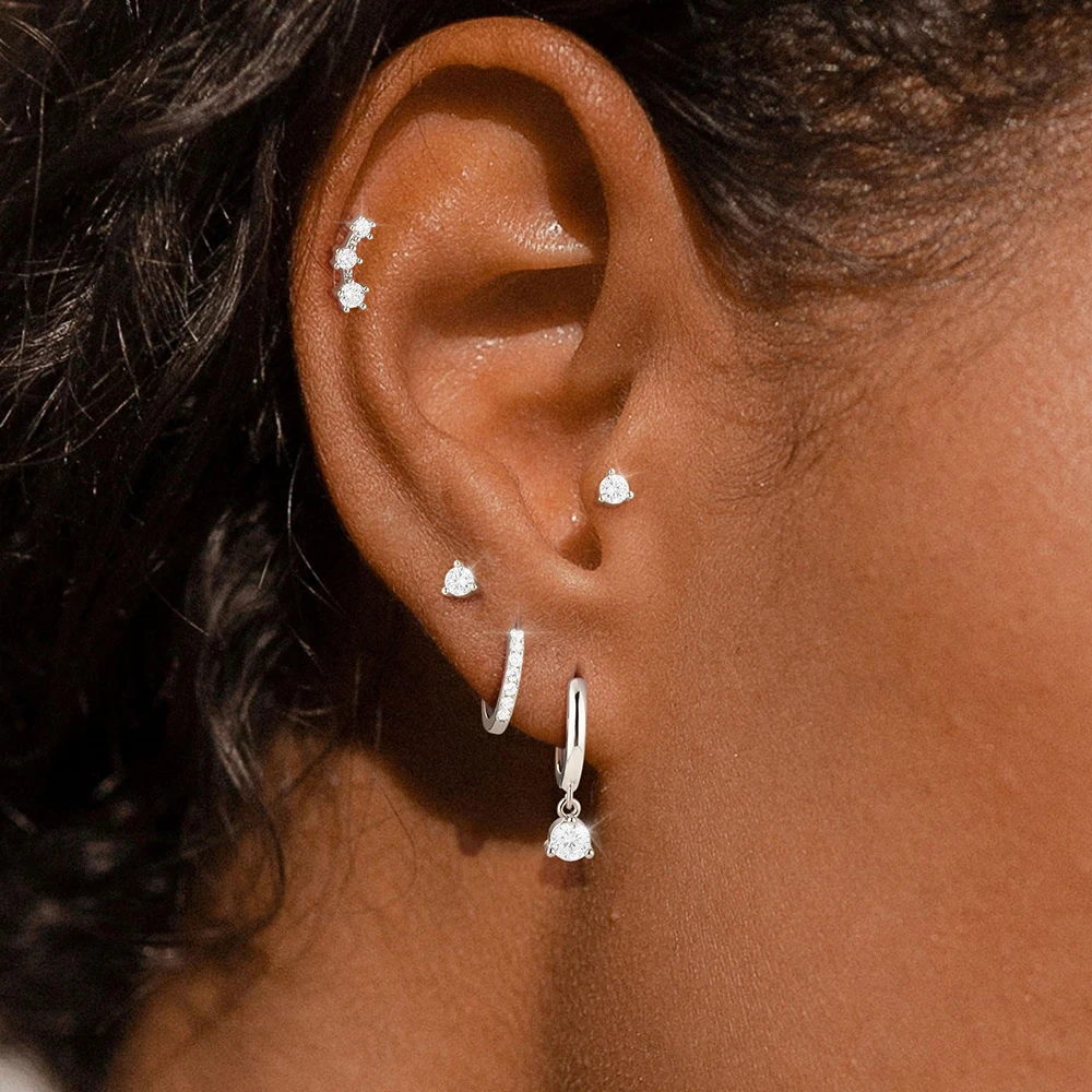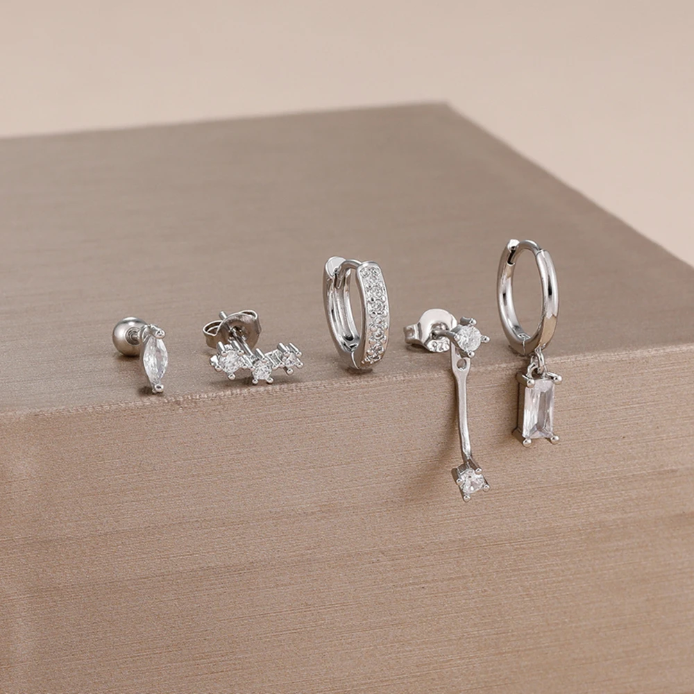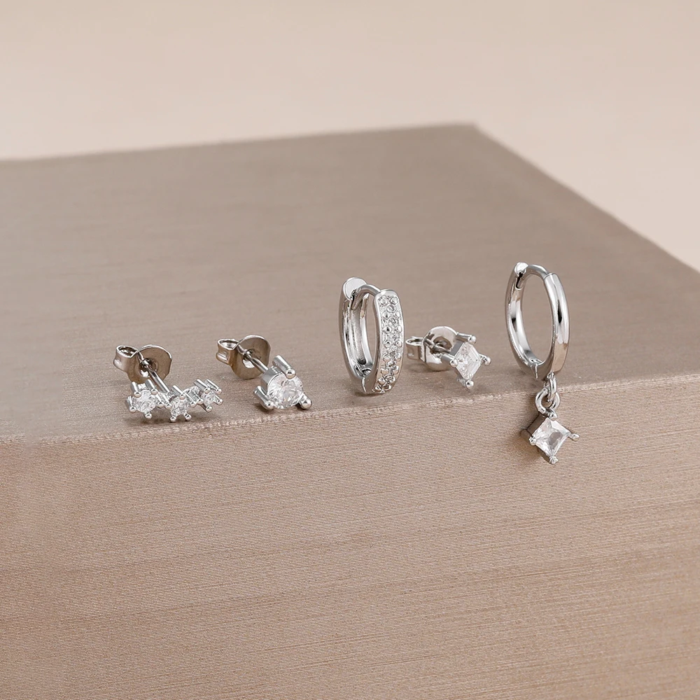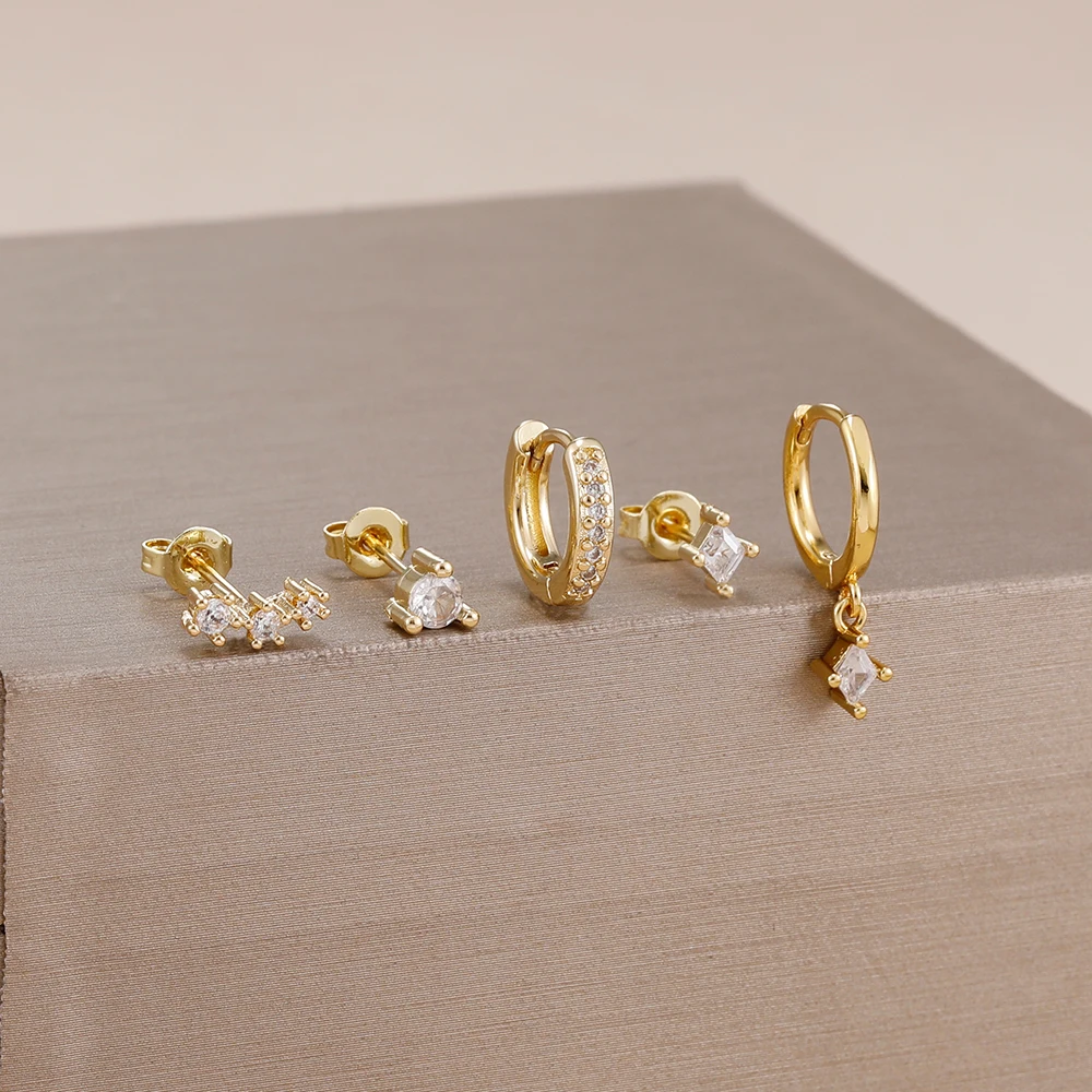 4 Style Stainless Steel Little Huggies Hoop Earrings Set For Women Tiny Crystal Zirconia Pendant Earrings Piercing Jewelry