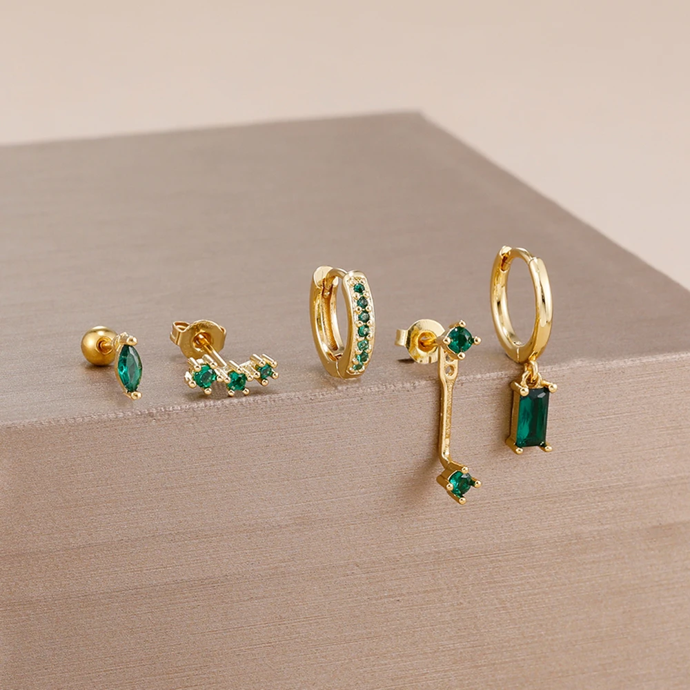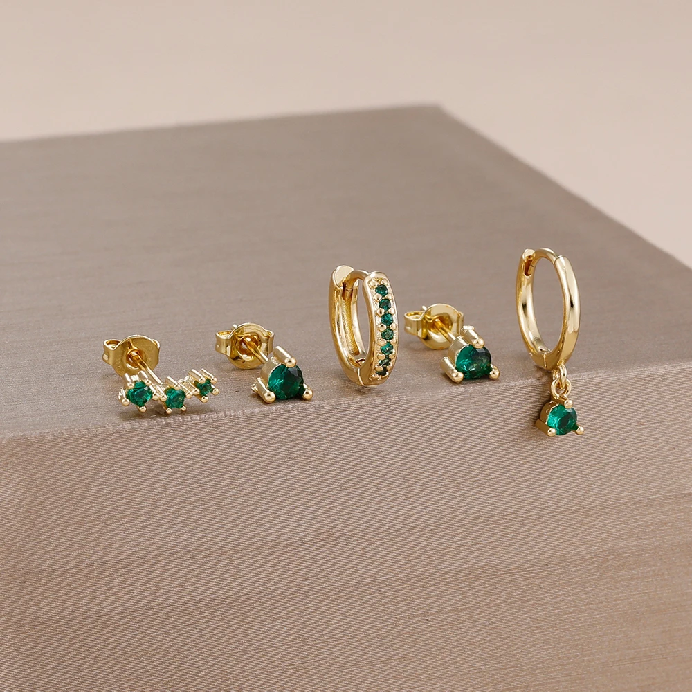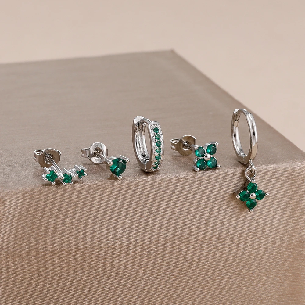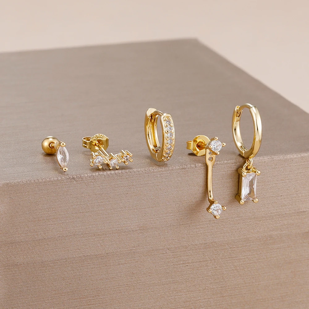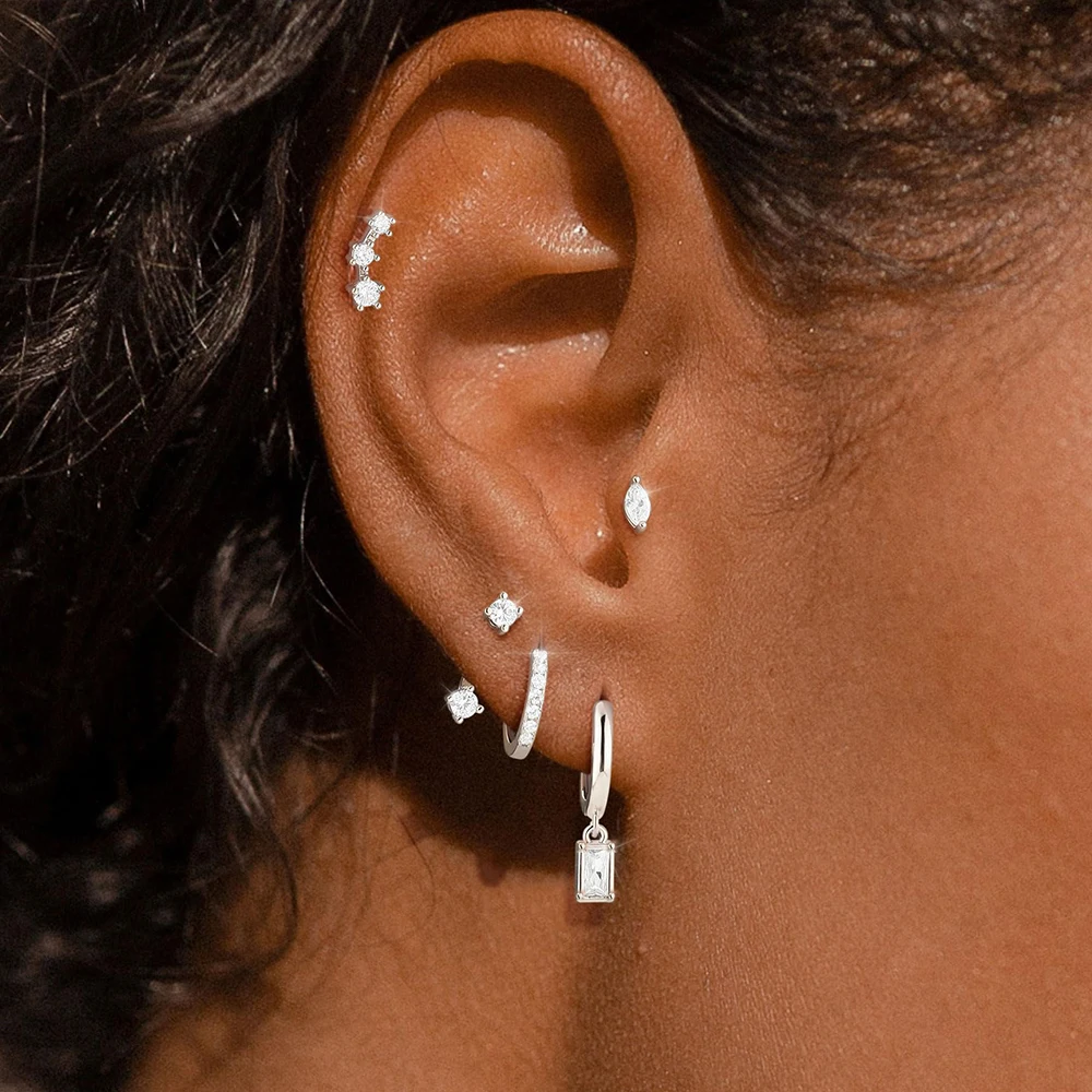 4 Style Stainless Steel Little Huggies Hoop Earrings Set For Women Tiny Crystal Zirconia Pendant Earrings Piercing Jewelry