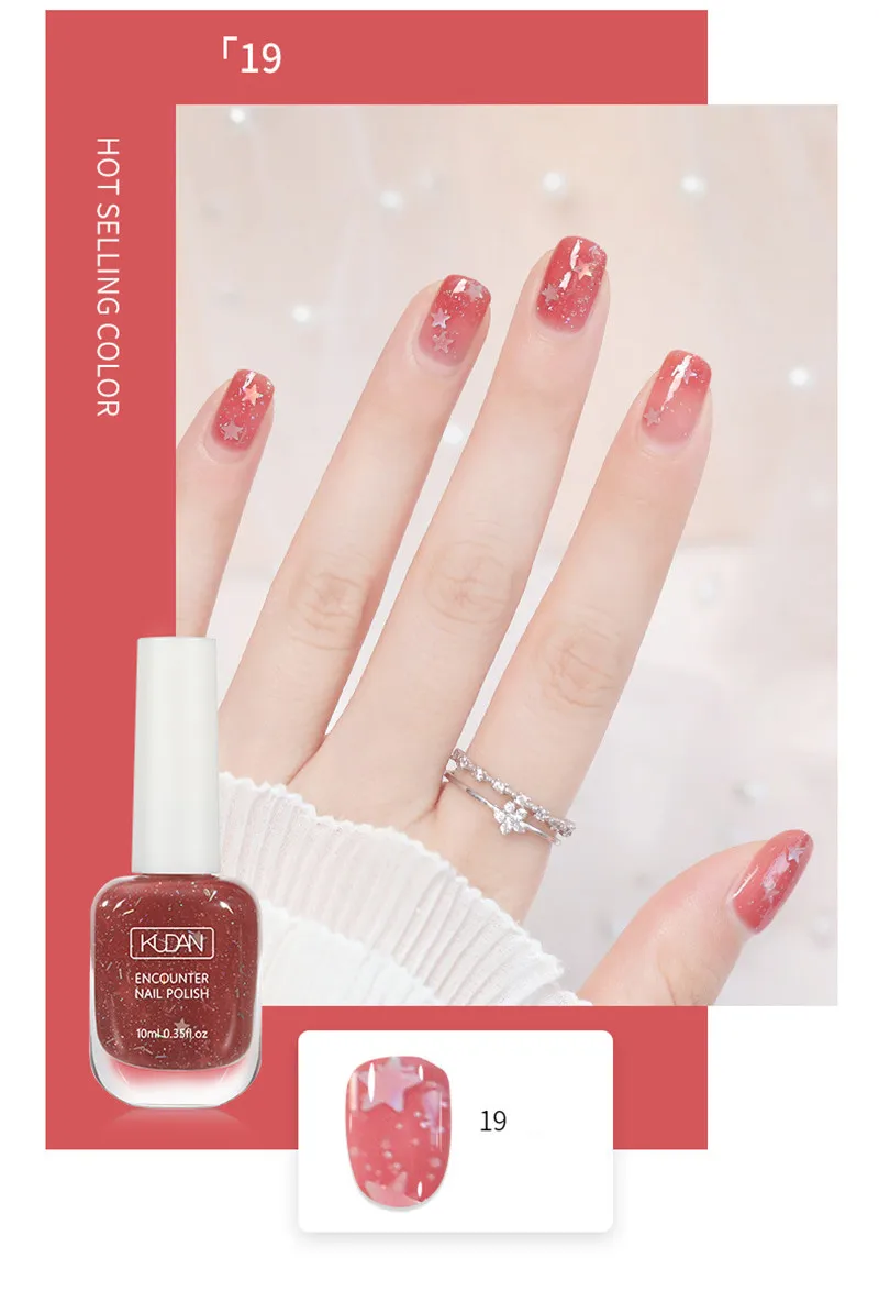 good varnish on a water base, removed with a film, just fit your nails, you can remove it with alcohol. It doesn't hold for long, it dries out very quickly. Color 14 type kakao, brown-silve, I like it