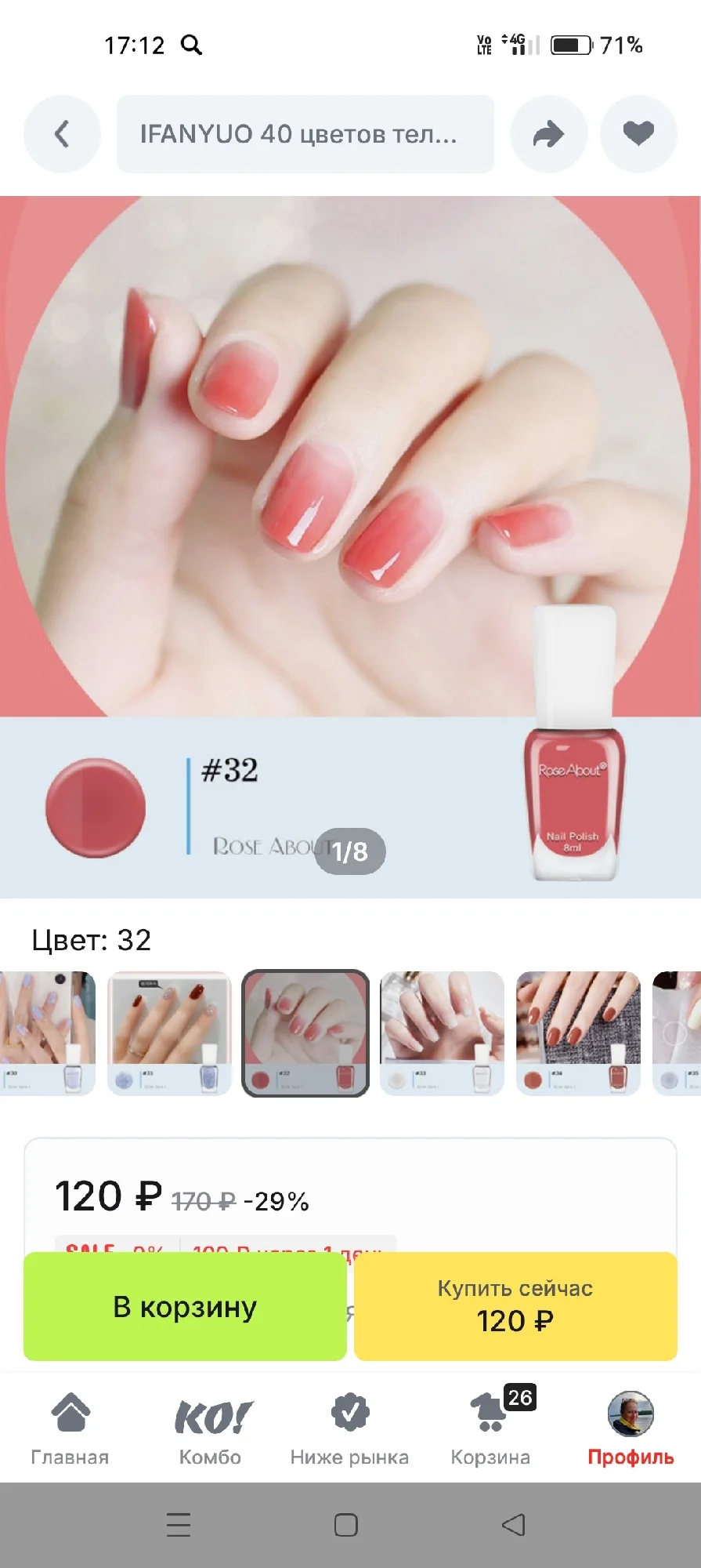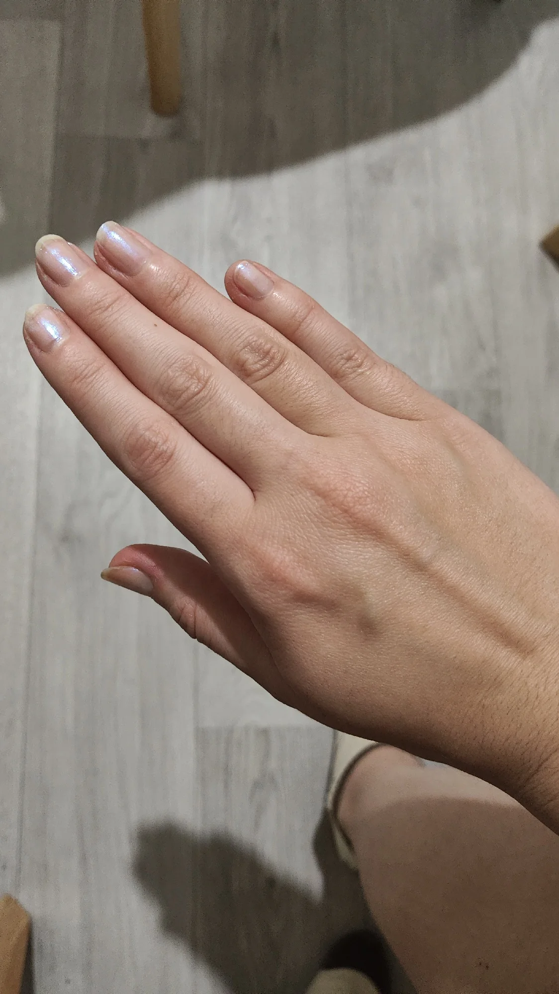 I really liked the polish. The smell is pleasant, there is no chemical smell at all, like regular nail polish. What I was looking for. I have allergies and only use water-based ones. The texture is a bit thick, but for milk-based ones, it's always like that. I took another color, it's liquid. The color is exactly the same as in the card. ❤️ the price is good 💅🏻 thanks to the seller 🎉 Many similar polishes go out of stock or sell fakes, so this company helped out. I will take more 🥰