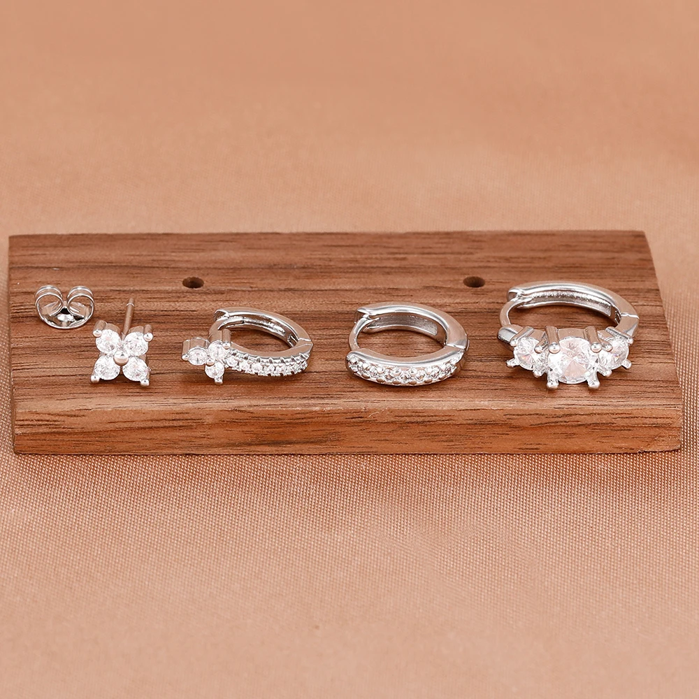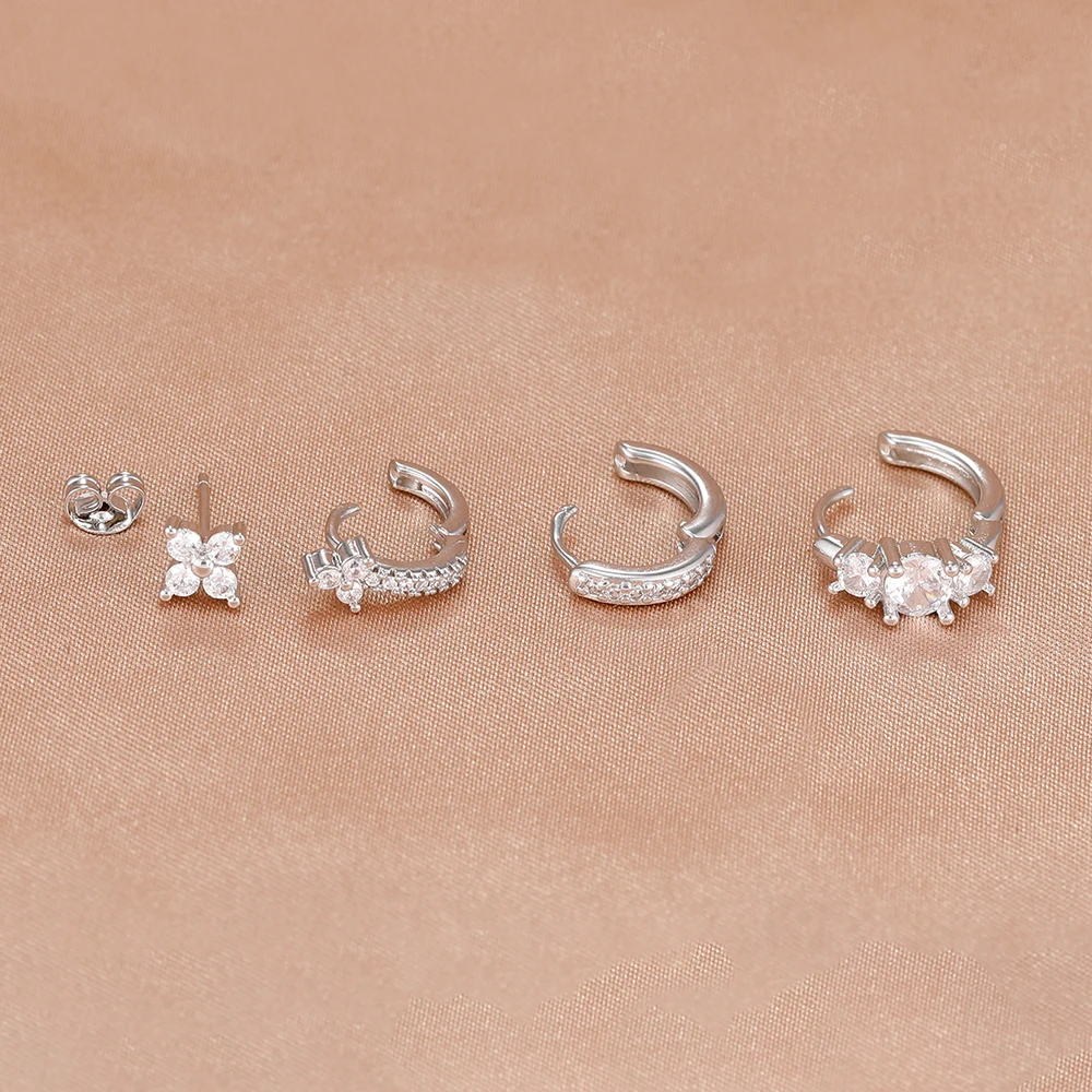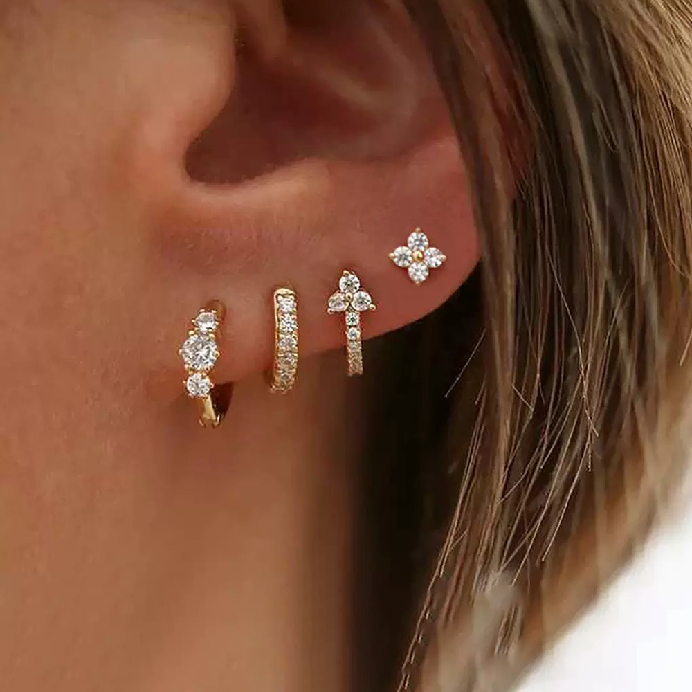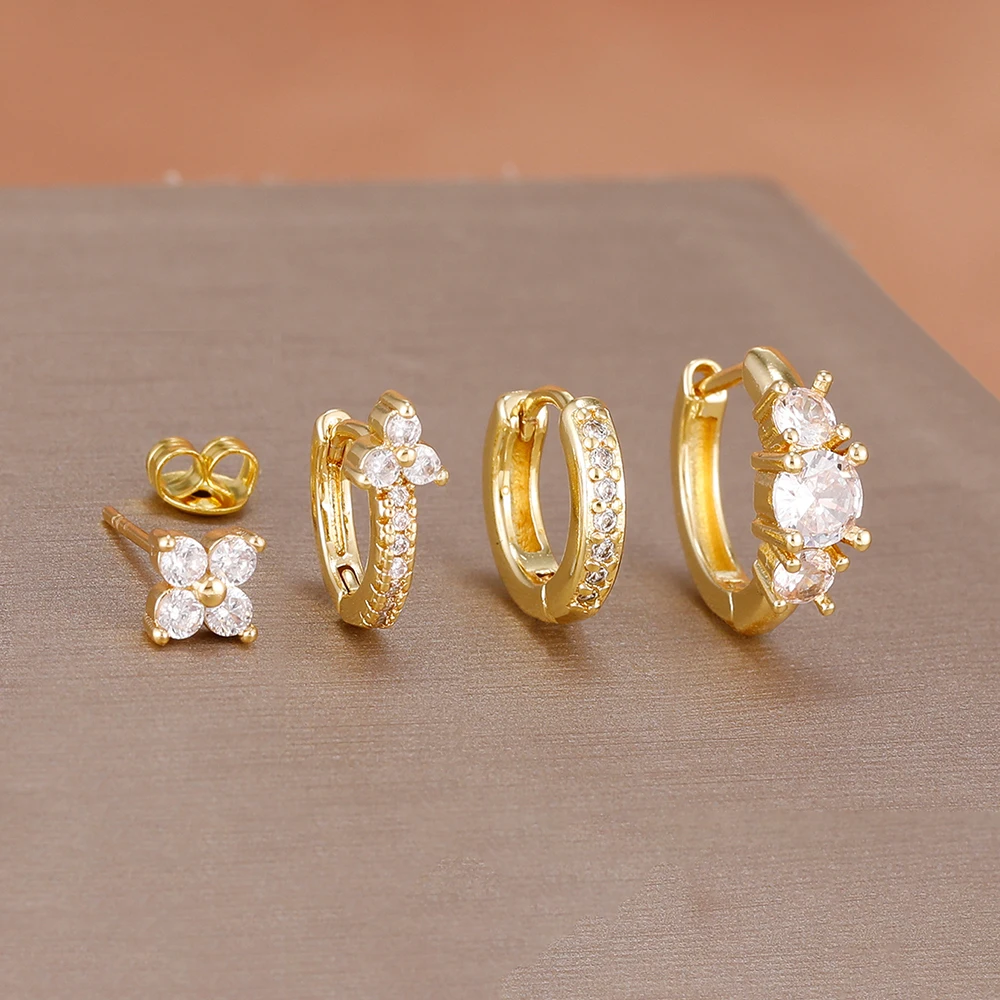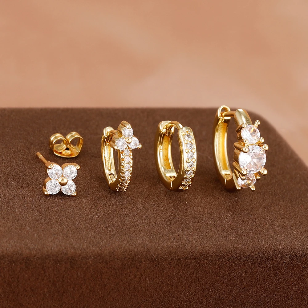 4PCS Fashion Small Crystal Flower Hoop Earrings Set for Women 18K Gold Plated Cartilage Piercing Earrings Girls Jewelry Gift