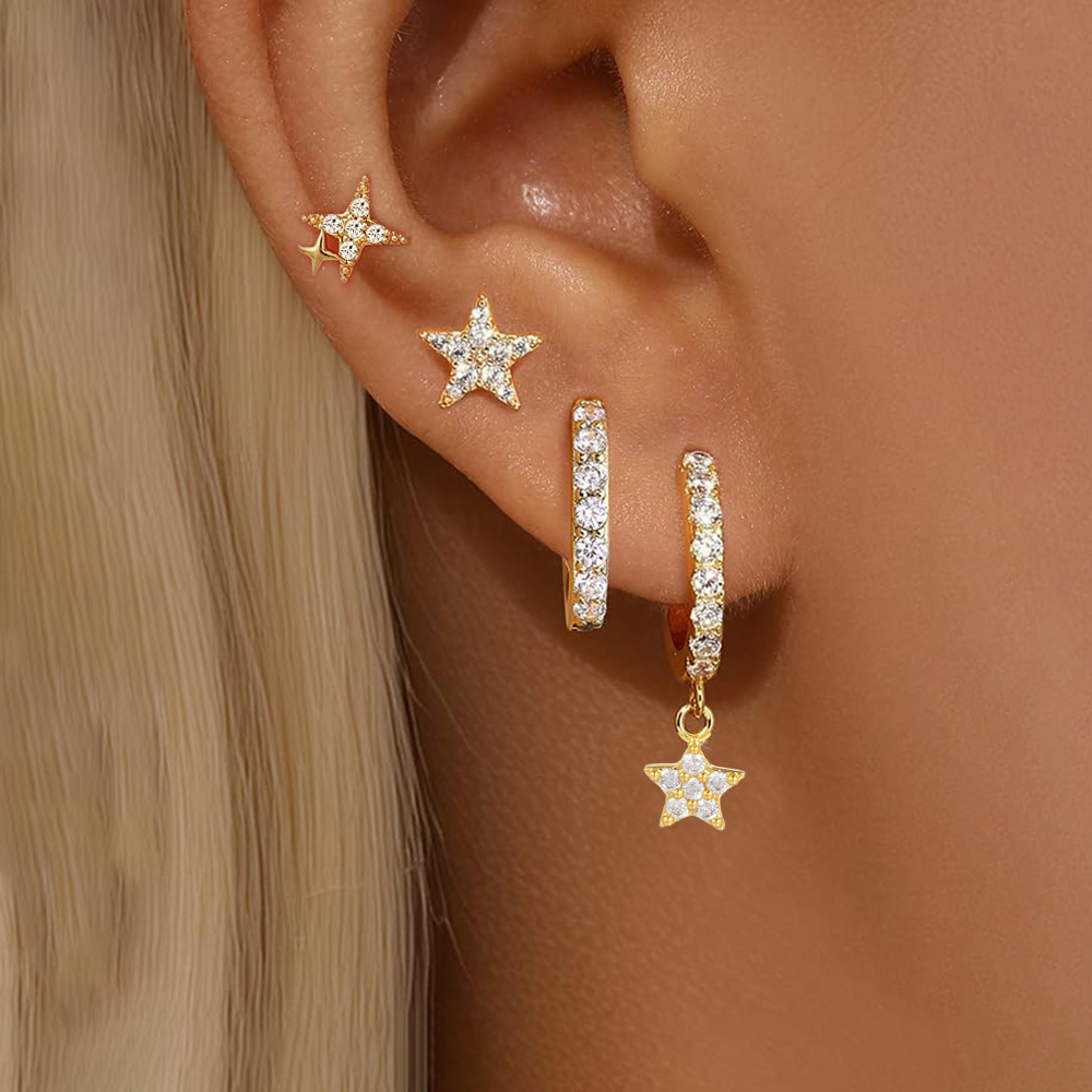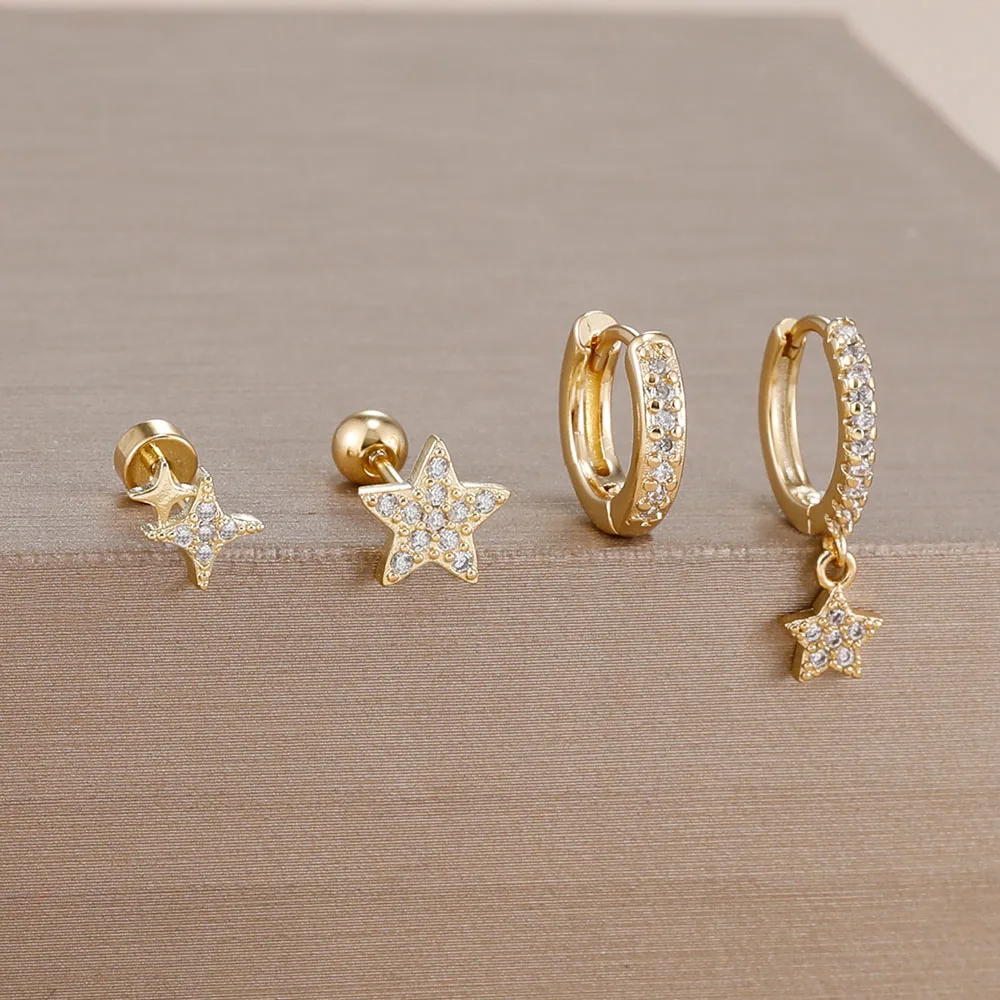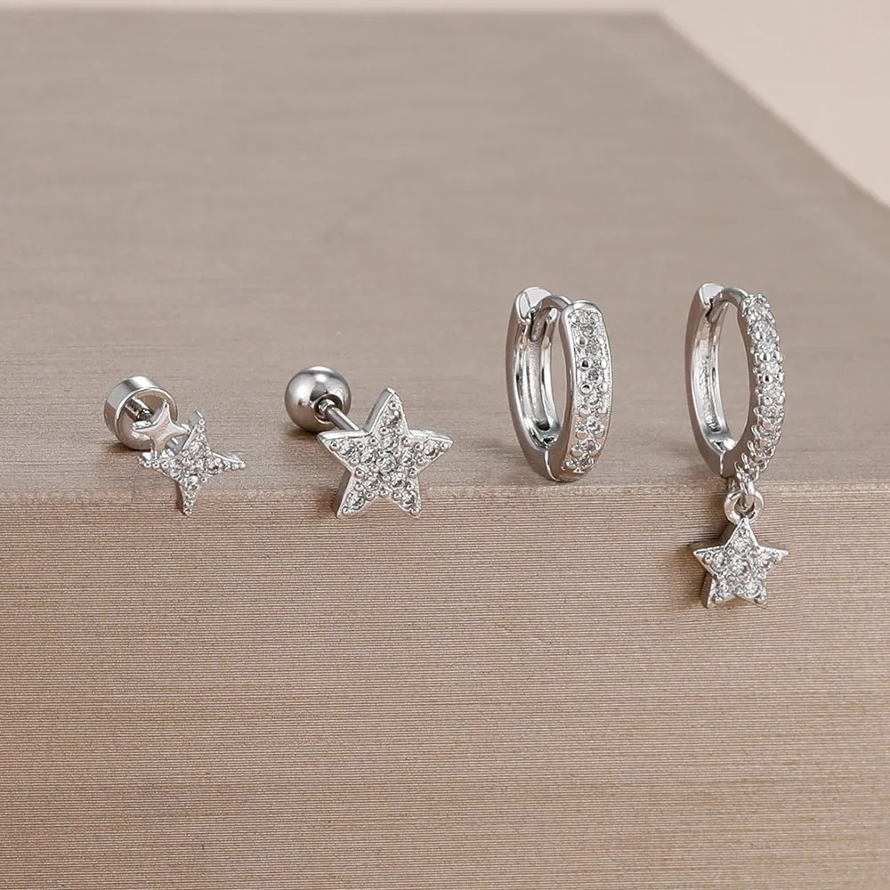 4PCS Stainless Steel Hoop Earrings Set For Women Little Crystal Star Ear Stud Earrings Girls Cartilage Piercing Jewelry Gifts