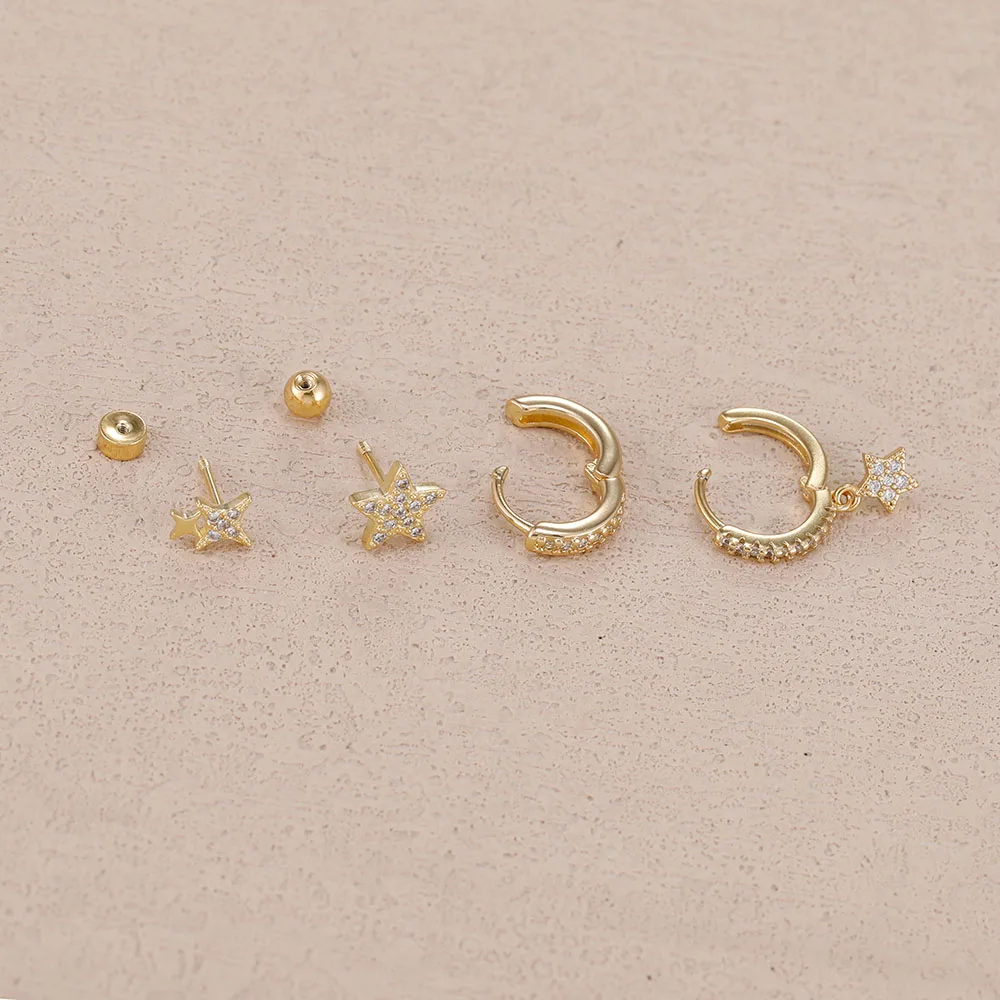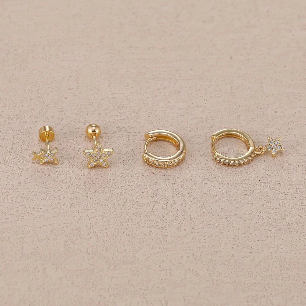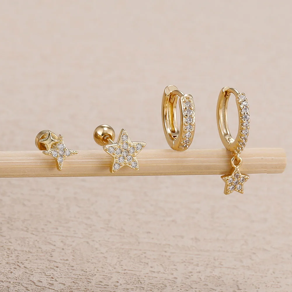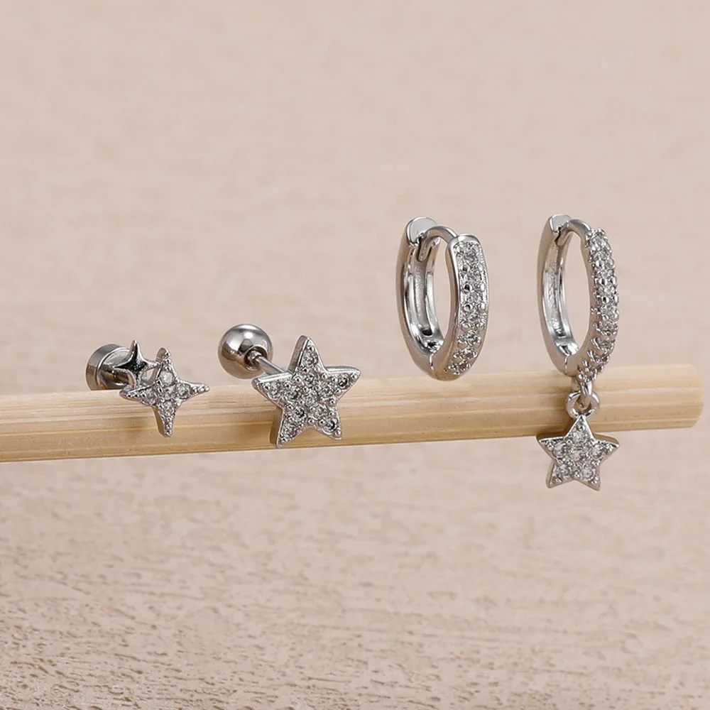 4PCS Stainless Steel Hoop Earrings Set For Women Little Crystal Star Ear Stud Earrings Girls Cartilage Piercing Jewelry Gifts