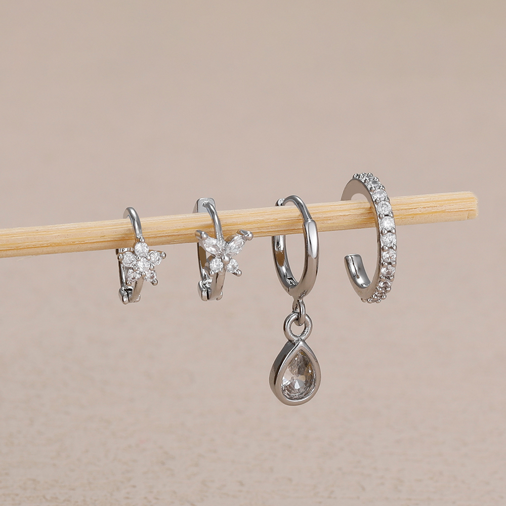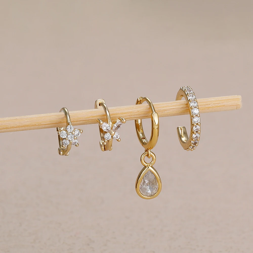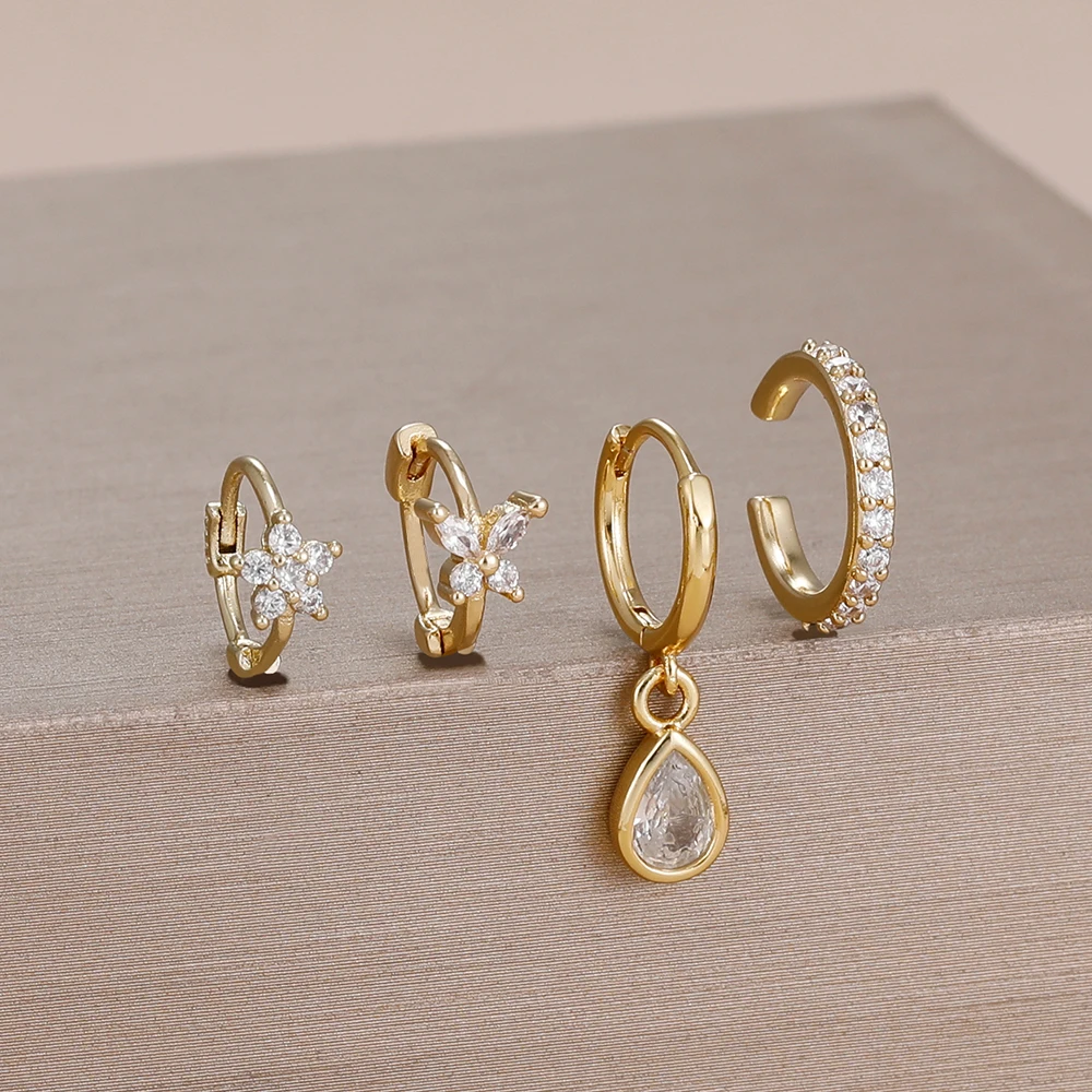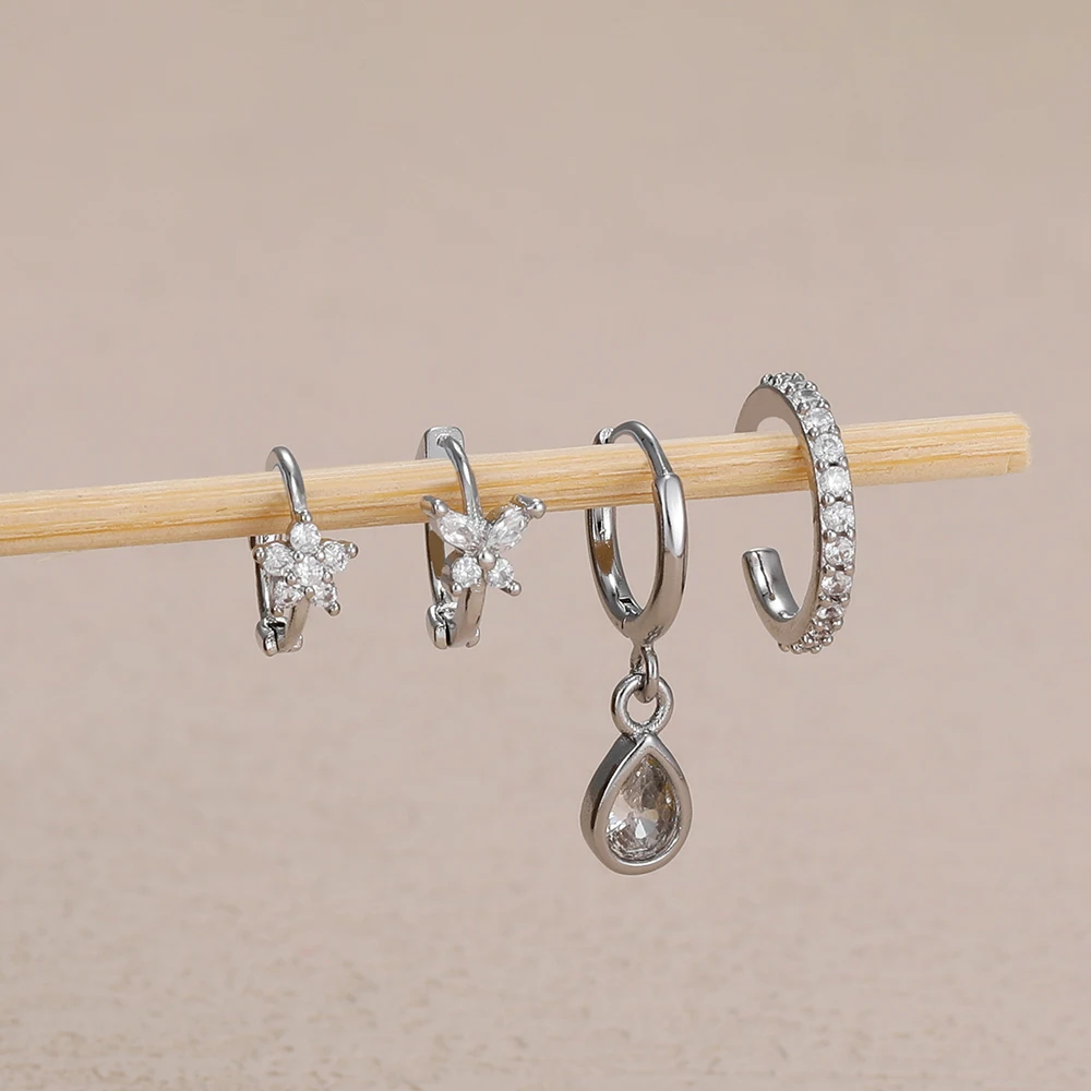 4PCS Stainless Steel Zircon Flower Butterfly Hoop Earrings Set For Women Fashion Geometric Earrings Ear Clip Jewelry Wholesale