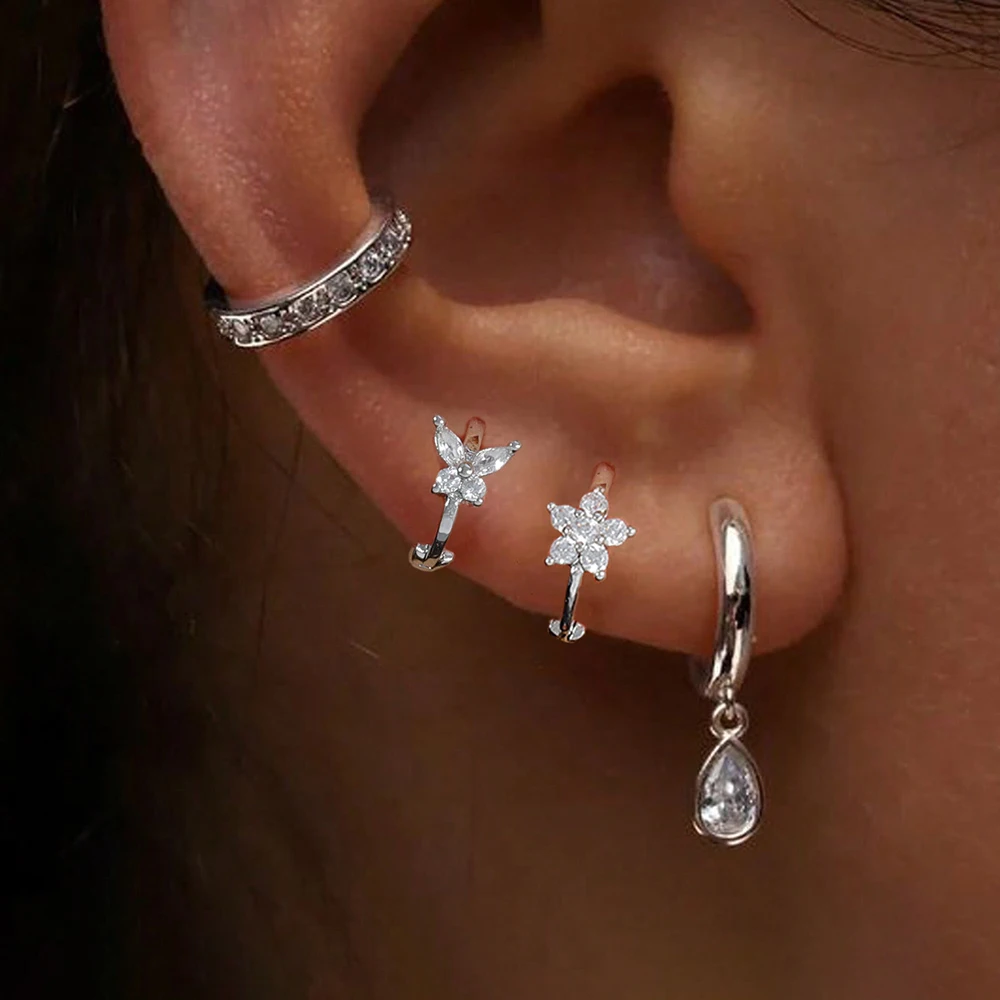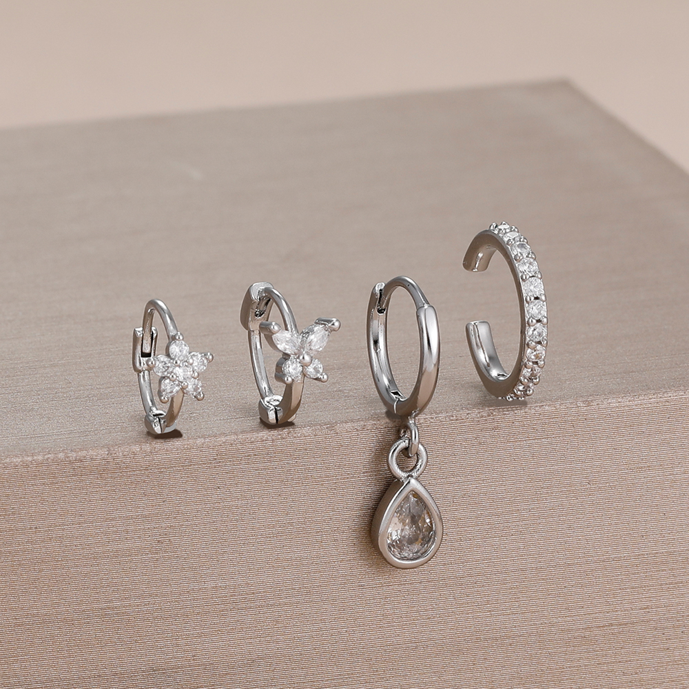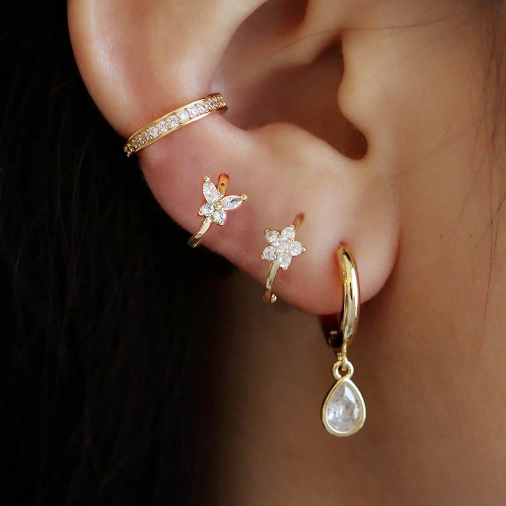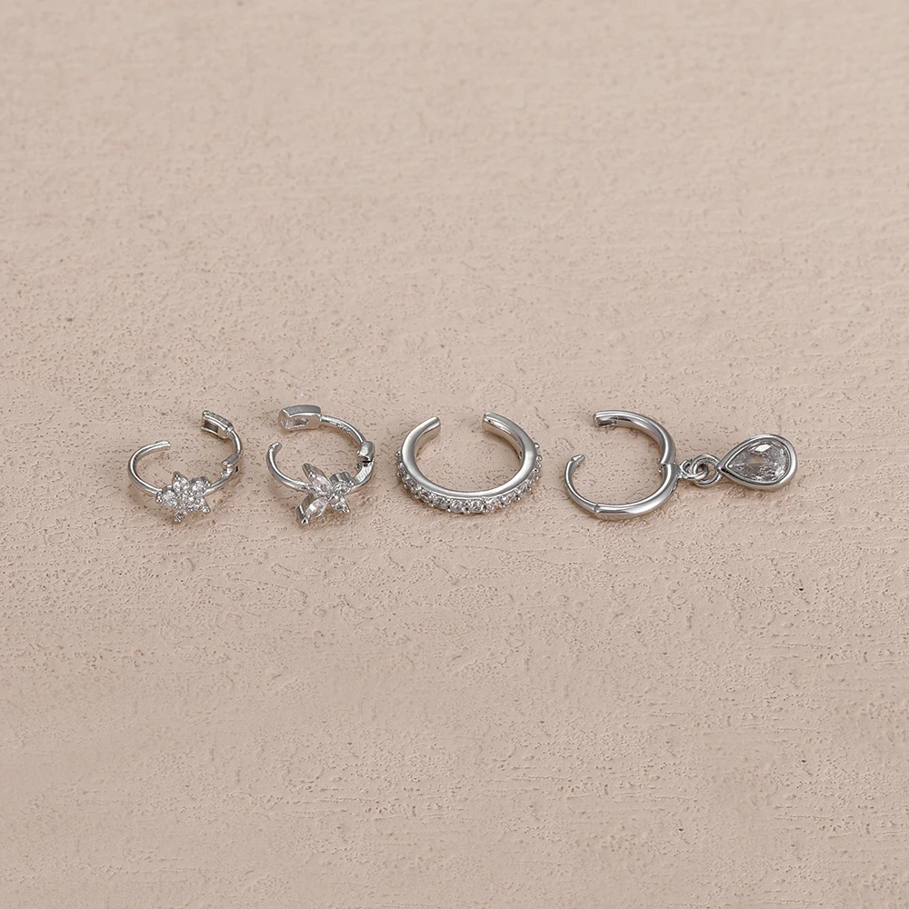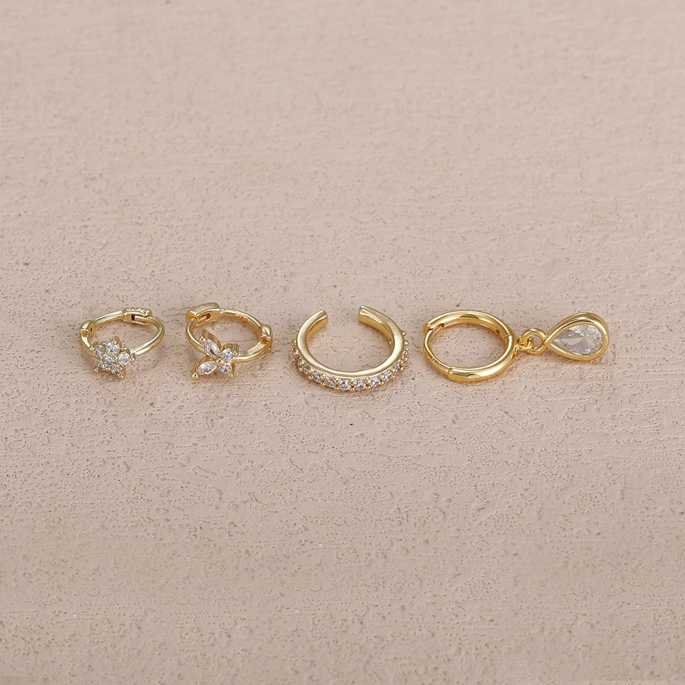 4PCS Stainless Steel Zircon Flower Butterfly Hoop Earrings Set For Women Fashion Geometric Earrings Ear Clip Jewelry Wholesale