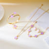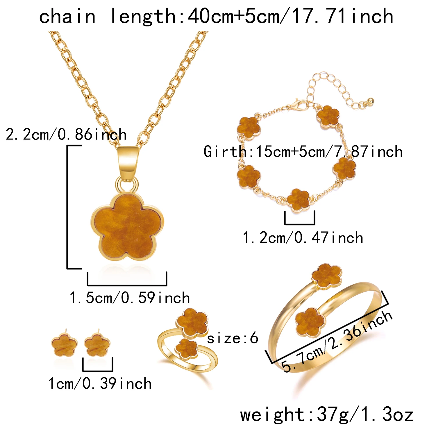 5 Pcs/Set Sweet Flower Pendant Necklace Earrings for Women Enamel Plum Blossom Open Cuff Bangle Bracelet Ring Jewelry Set Gift