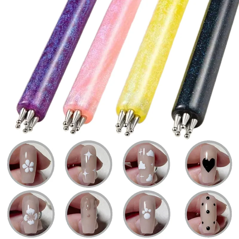 5 Point Nail Art Dotting Pen Flower Petal Dotting Tool Acrylic Handle DIY Nail Design Drawing Painting Rhinestones Manicure Tool