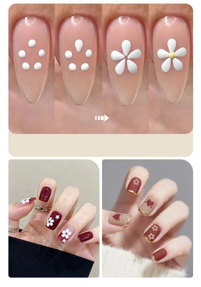 The specially angled and shaped tips are engineered to hold the perfect amount of gel polish or acrylic paint. When pressed and lifted on the nail, they leave behind a beautiful, symmetrical petal shape in a single motion, enabling you to build flowers like roses, daisies, and blossoms quickly and consistently.